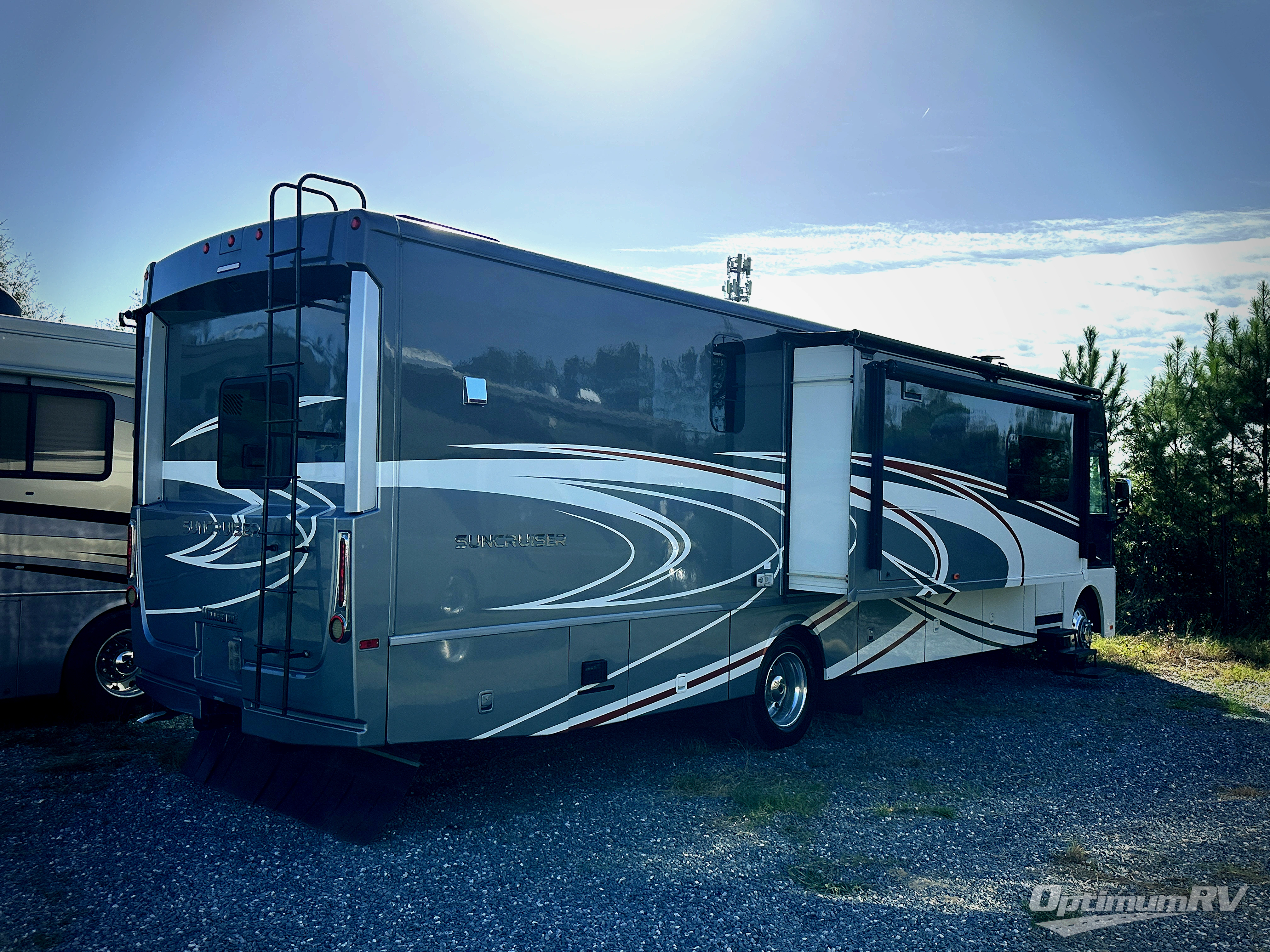Hit the road in this Suncruiser class A gas coach by Itasca. Model 38Q features triple slide outs for added interior space, a fireplace, a split bath, and recline/incline king size bed!
