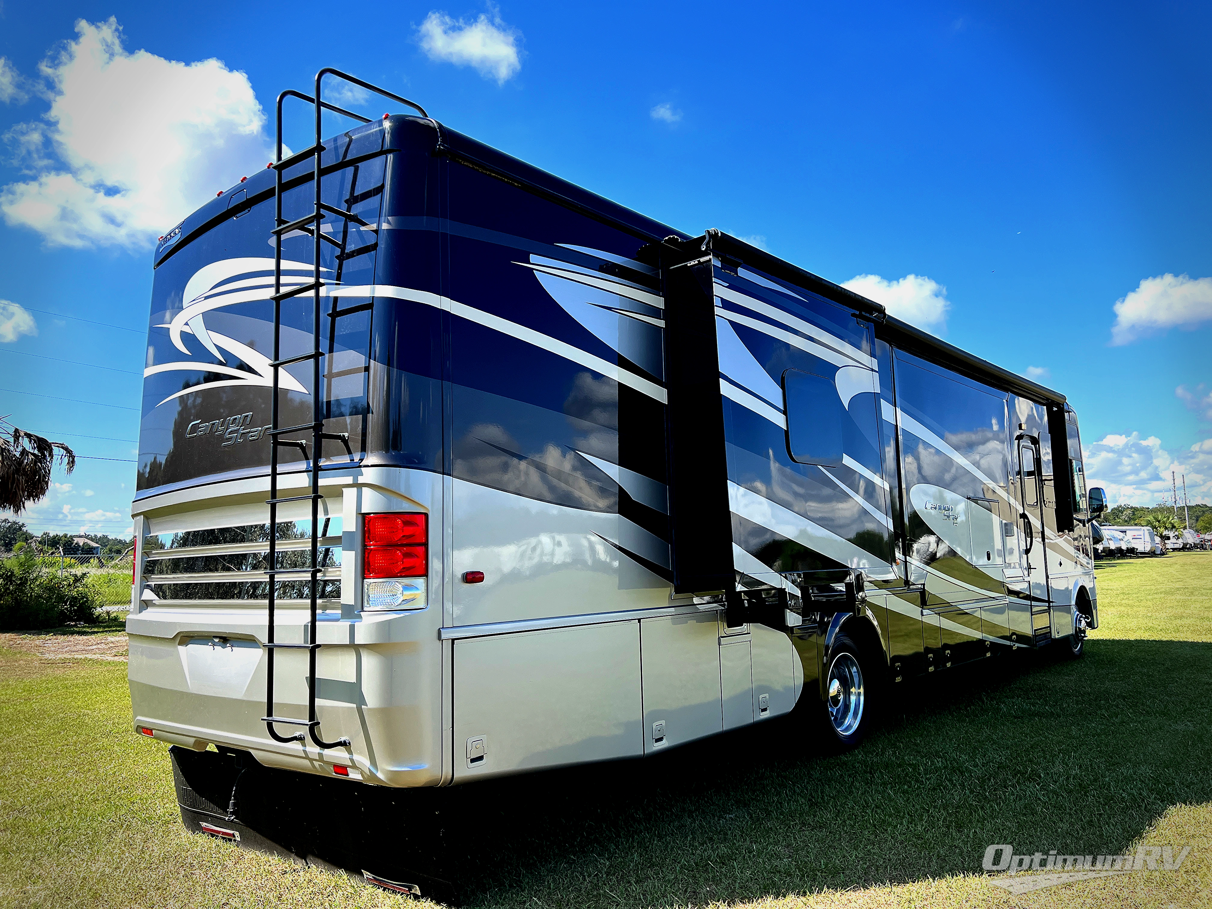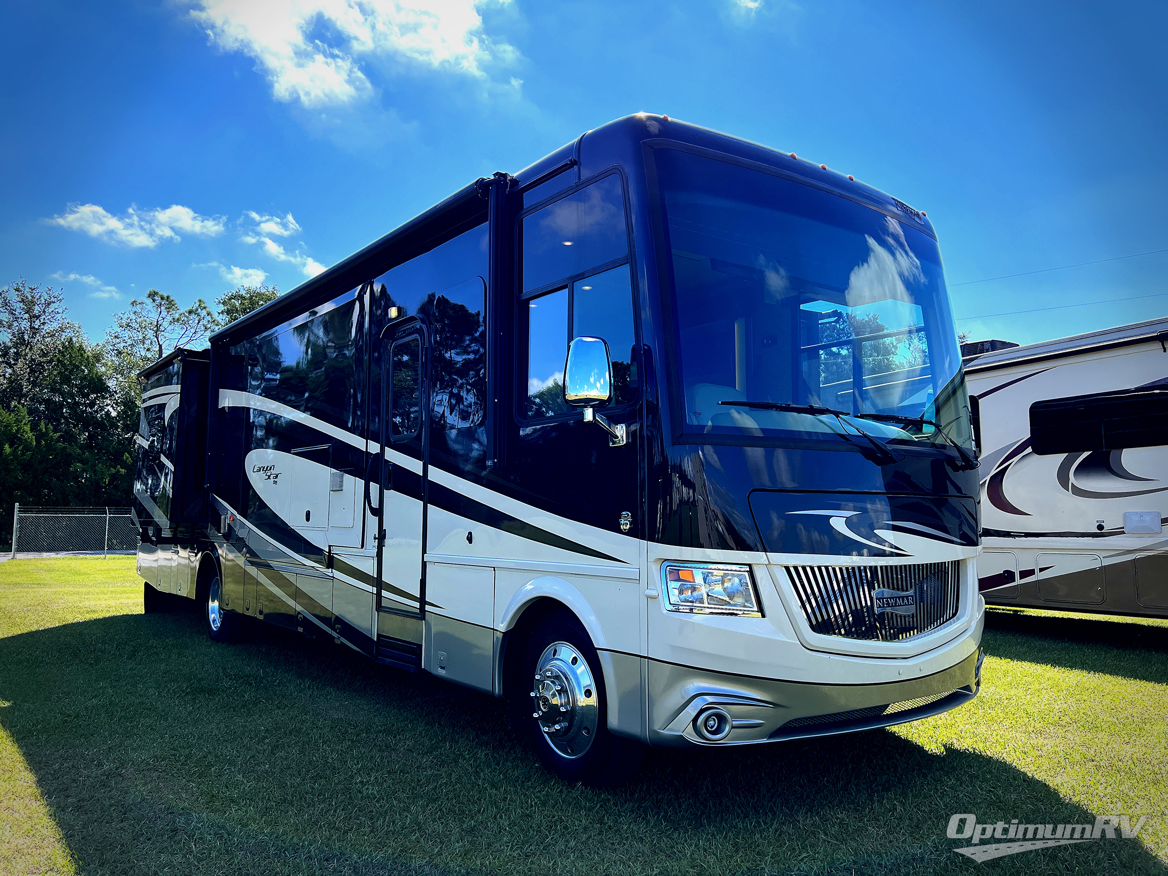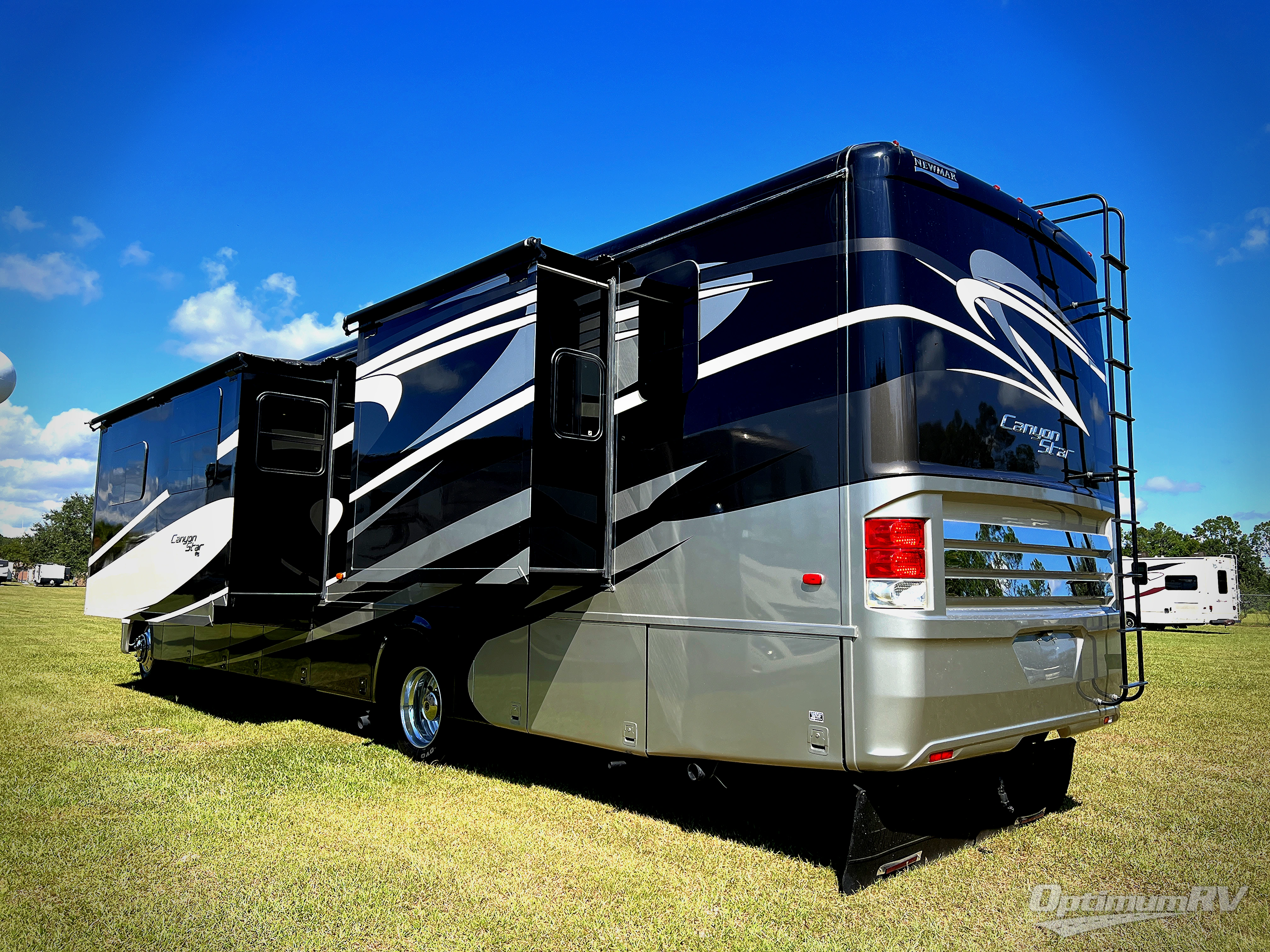 The Canyon Star 3953 class A gas motor coach by Newmar offers quad slides, rear master bath, and a half bath.