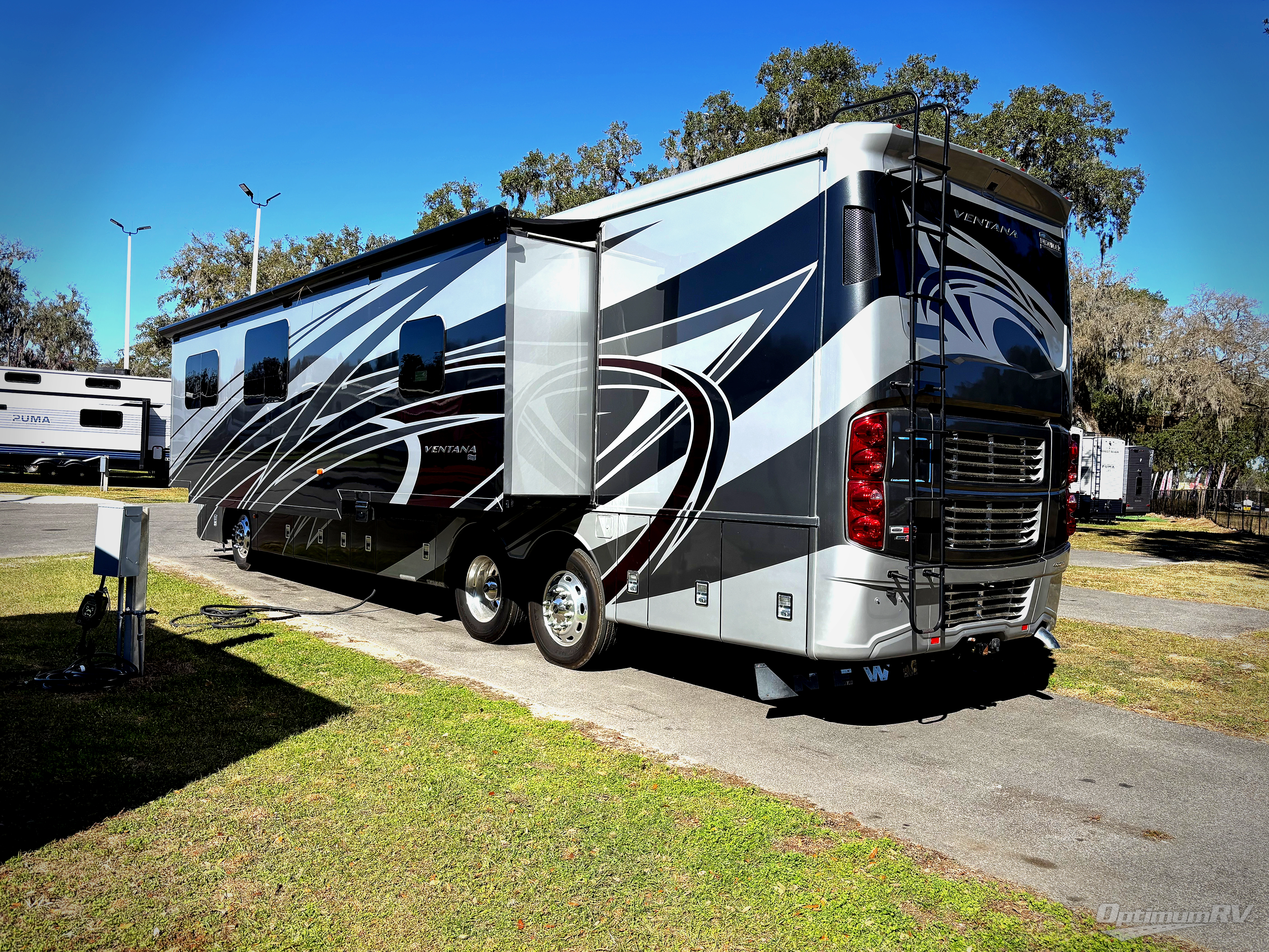 The Ventana 4037 class A diesel motor coach by Newmar offers triple slides, a rear master bath, and a half bath.