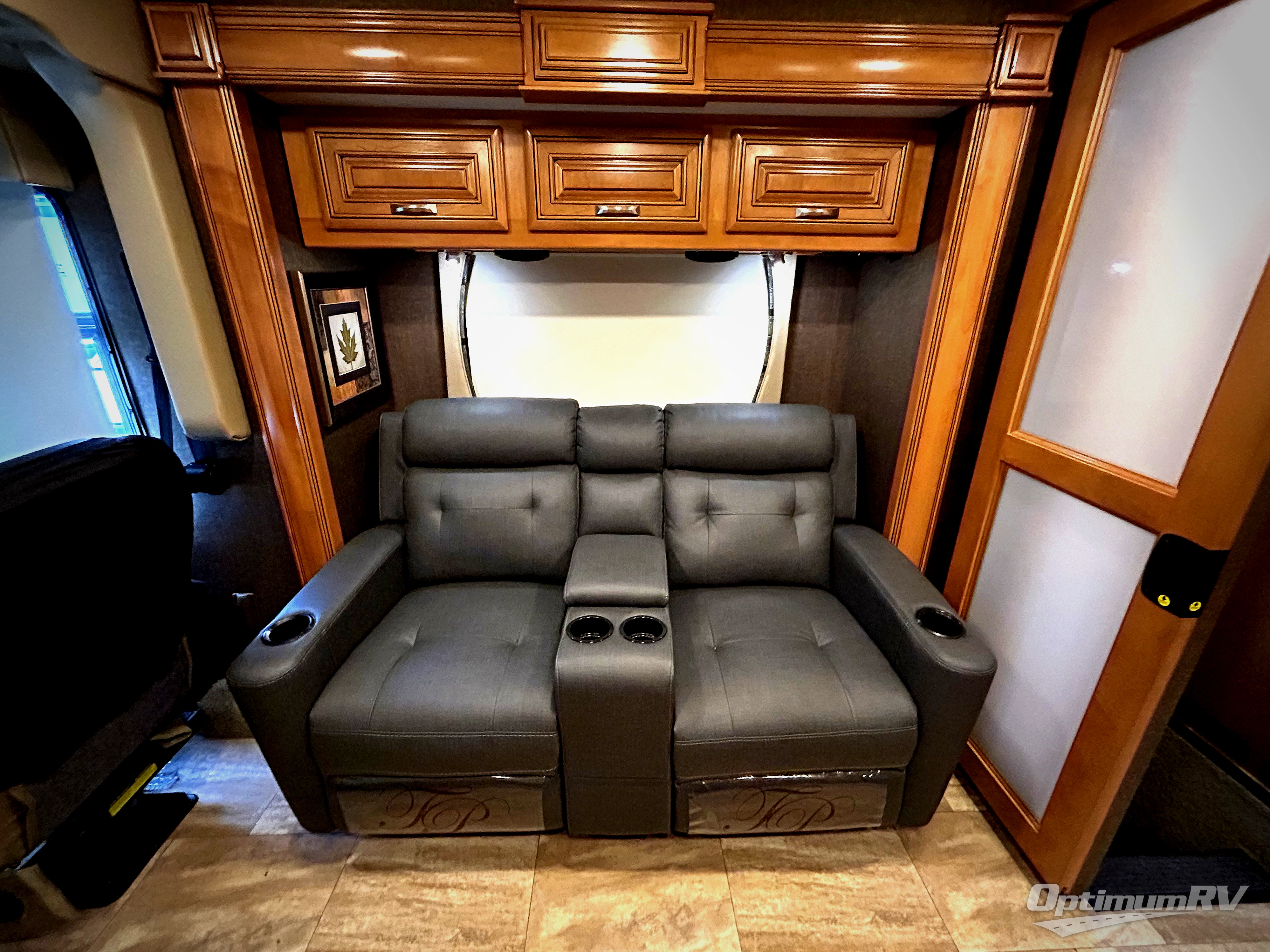 Step inside and find a front living room beyond the cab area featuring dual opposing slides. The door side slide features a sofa with 59" x 75" sleeping area as well as overhead storage. You can choose optional theater seating in place of the sofa. The opposite side features a slide with an electric fireplace with a remote and a 40" LED TV just above. Pocket doors separate the living space from the kitchen for added convenience when using the room for sleeping space. There is also an drop-down overhead bunk above the cab area for even more sleeping space for guests.