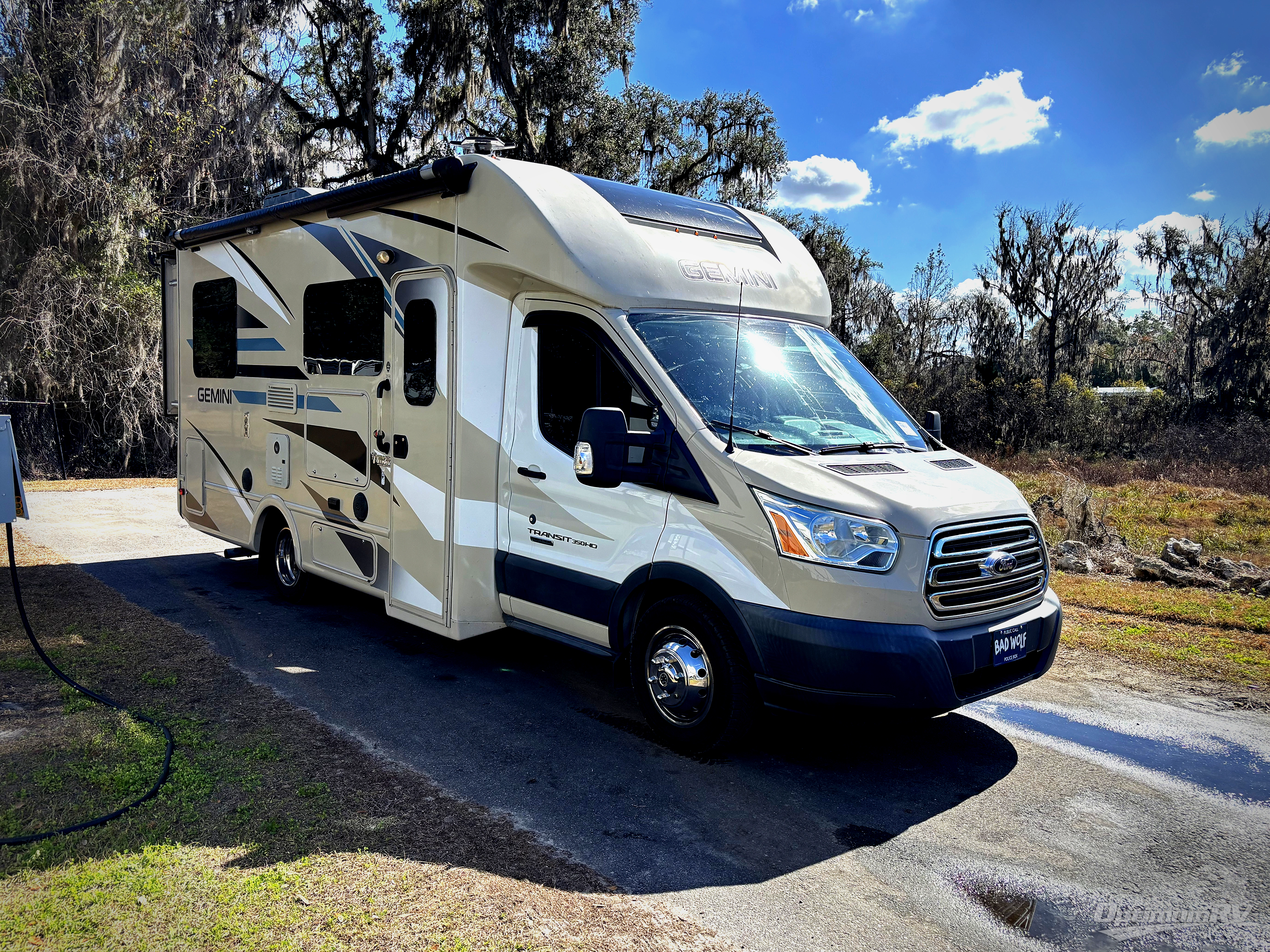 Travel comfortable in this Gemini class C diesel motorhome by Thor Motor Coach. Model 23TR features all the amenities needed to enjoy traveling with sleeping and dining accommodations for three or four, plus a complete bath, and more!