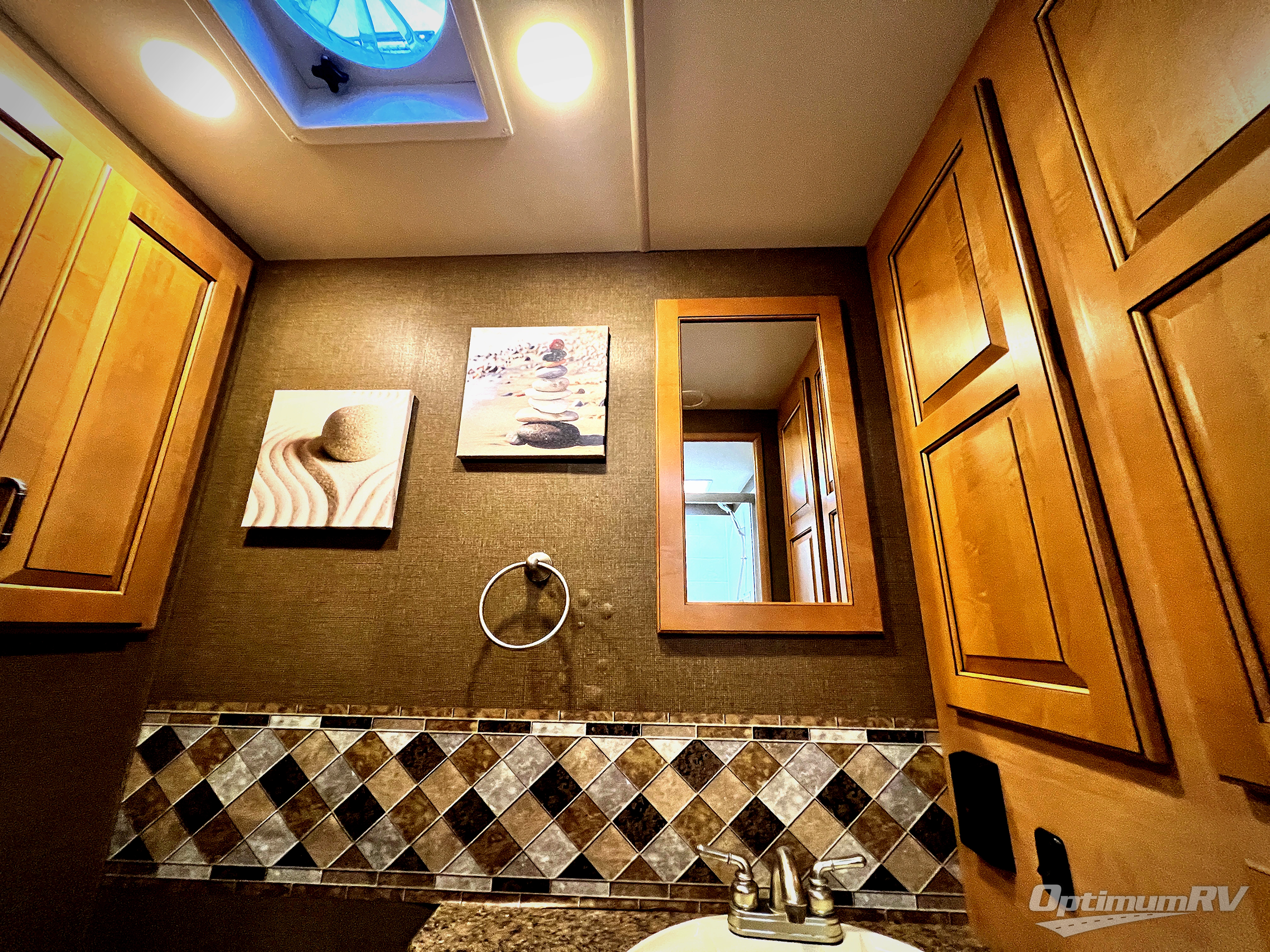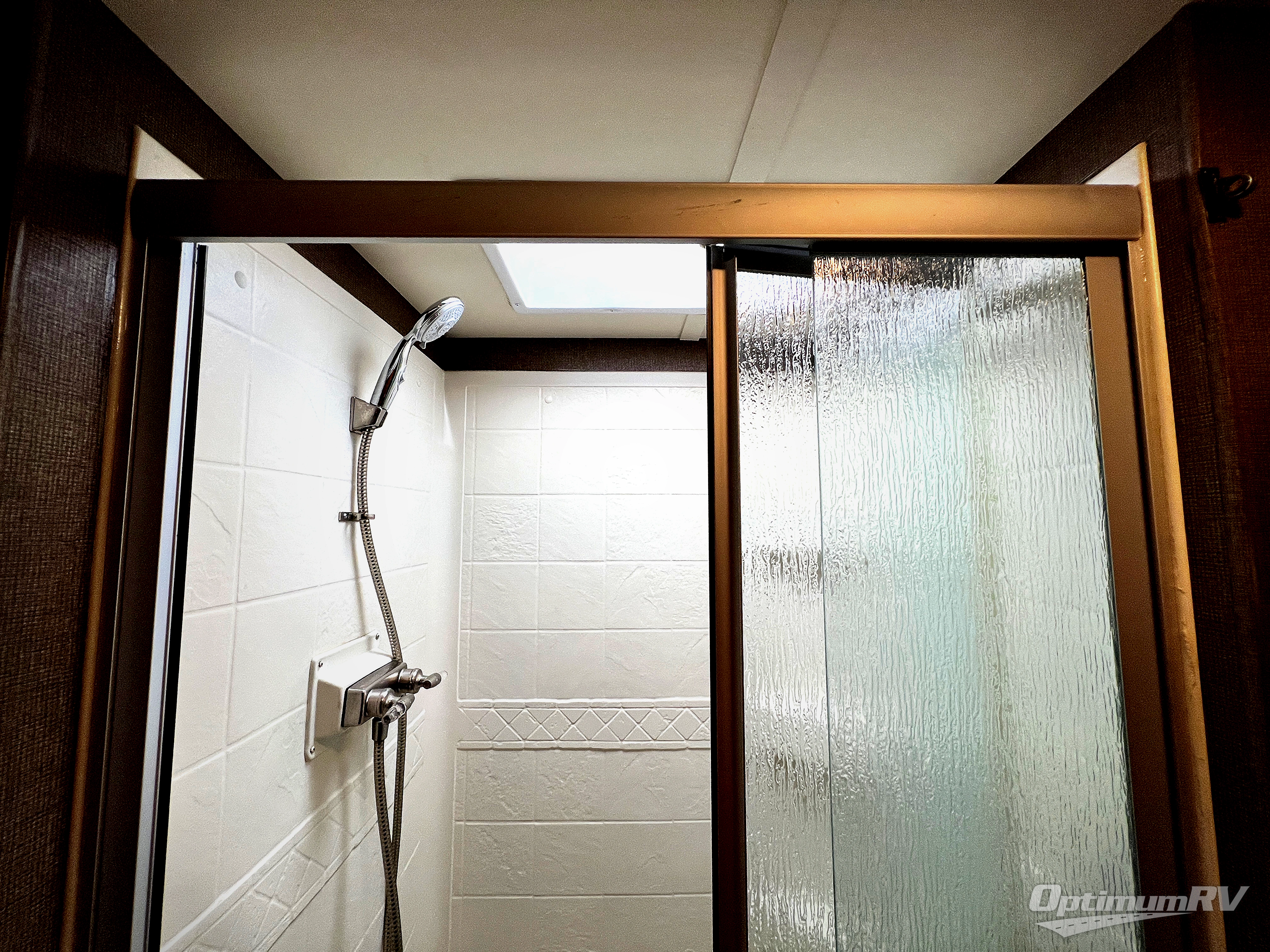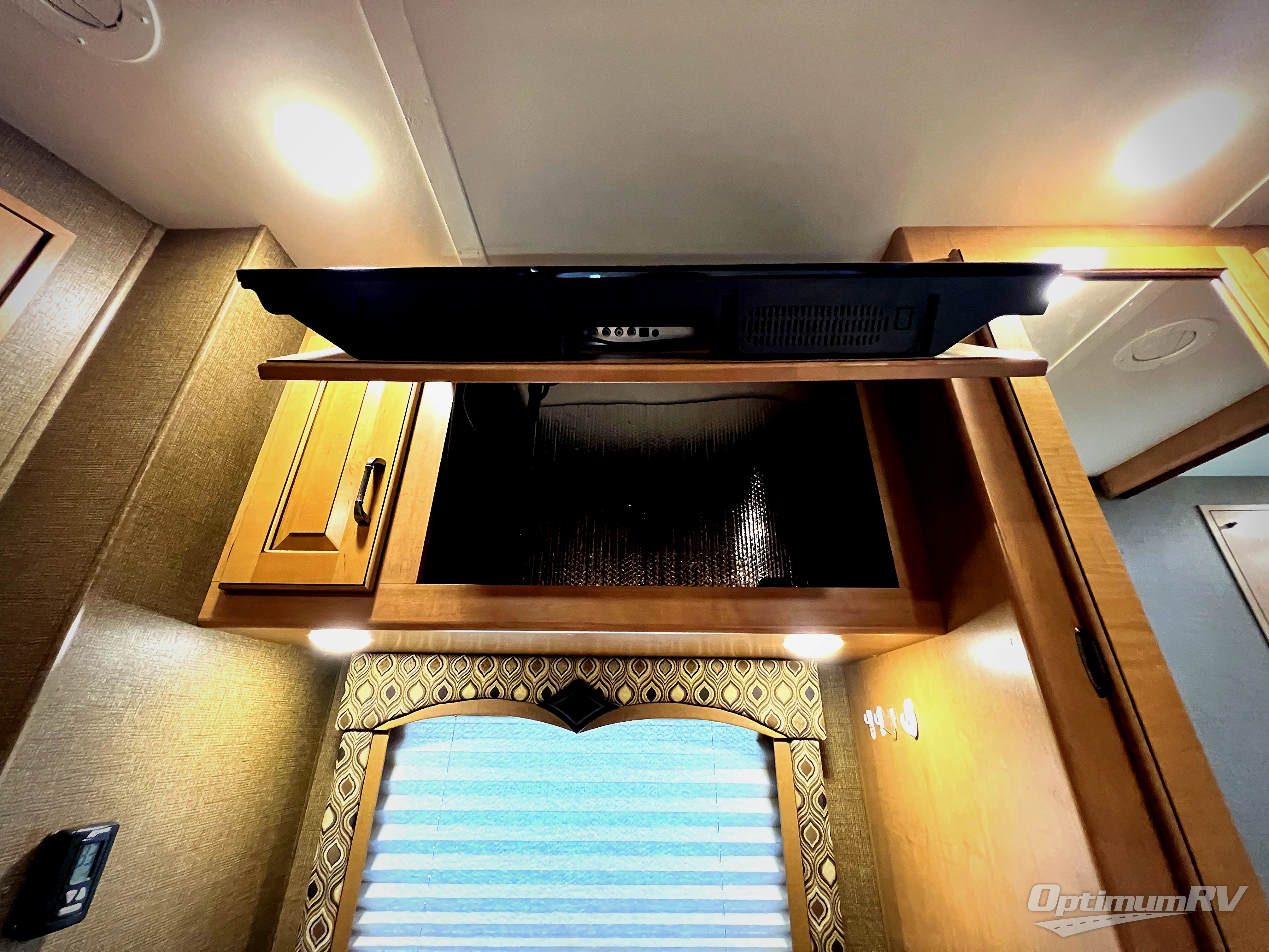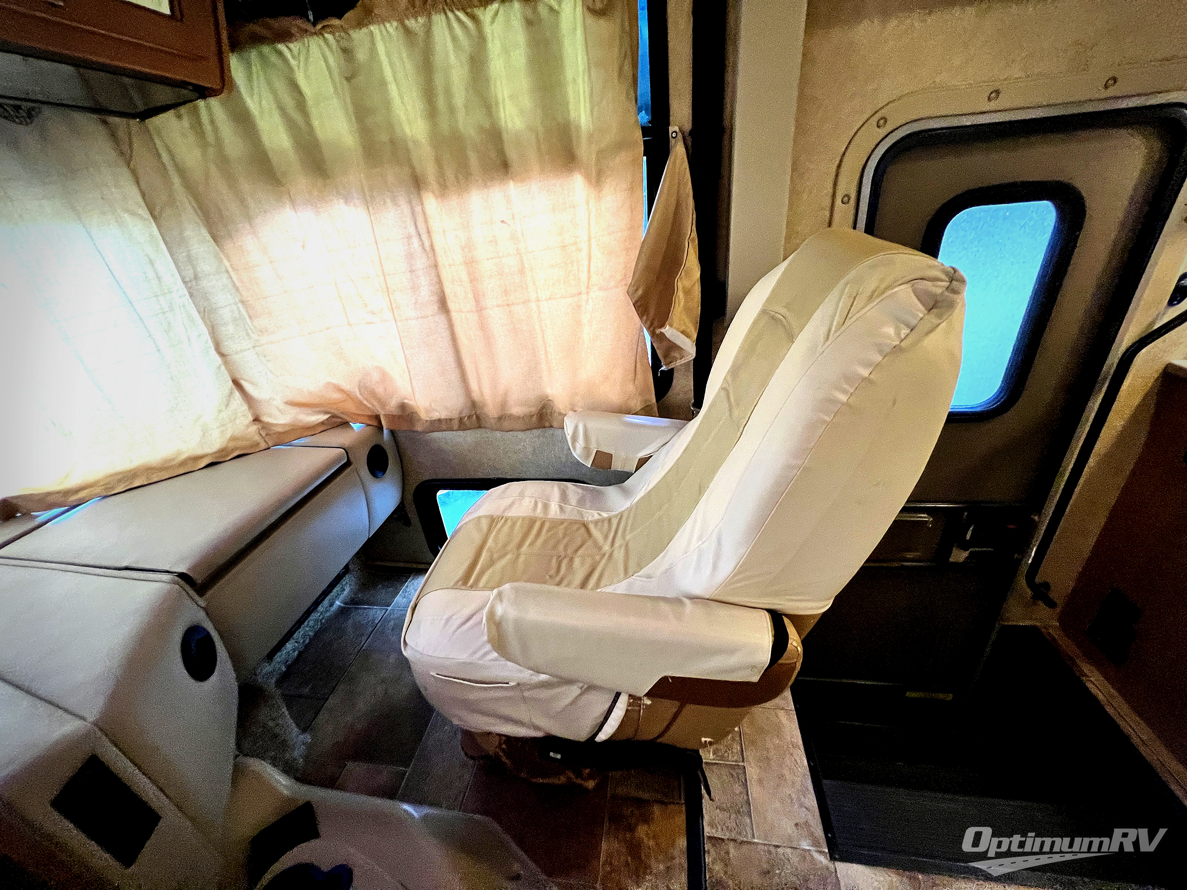 Step inside model 35C and see just how convenient your next road trip can be. There is a slide out dream dinette and theater seating for two opposite the entry door. With overhead storage above the theater seating, and two sets of seat belts, all of your guests and cabinet items will be secure while traveling. There is also a drop down overhead bunk above the cab area for added sleeping space if needed as well. The convenient coffee table between the captain's chairs allows for more table top space for just about anything. You can also choose a sofa with air bed in place of the theater seats if you like. Enjoy the 40" LED TV along the outer bathroom wall.