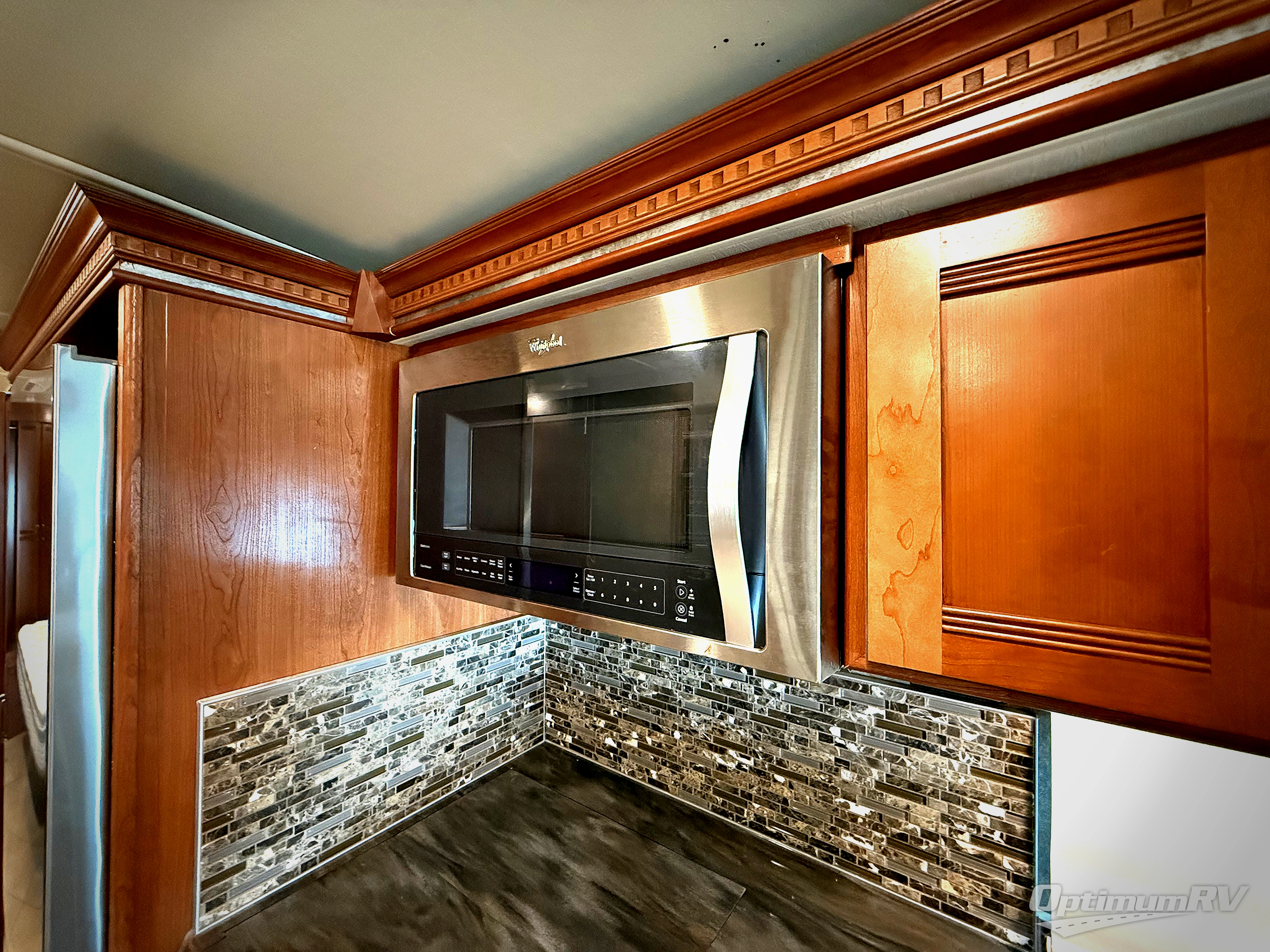 The rear master bedroom features a queen bed slide including nightstands and overhead storage. The chest of drawers opposite is part of the large slide on the road side that also features the kitchen appliances. Here you will enjoy storage drawers for your things, plus there is a 40" HDTV as well. Along the rear wall find even more storage with a wardrobe and storage cabinet. You can choose a king size bed if you wish for a bit more sleeping space, plus so much more!