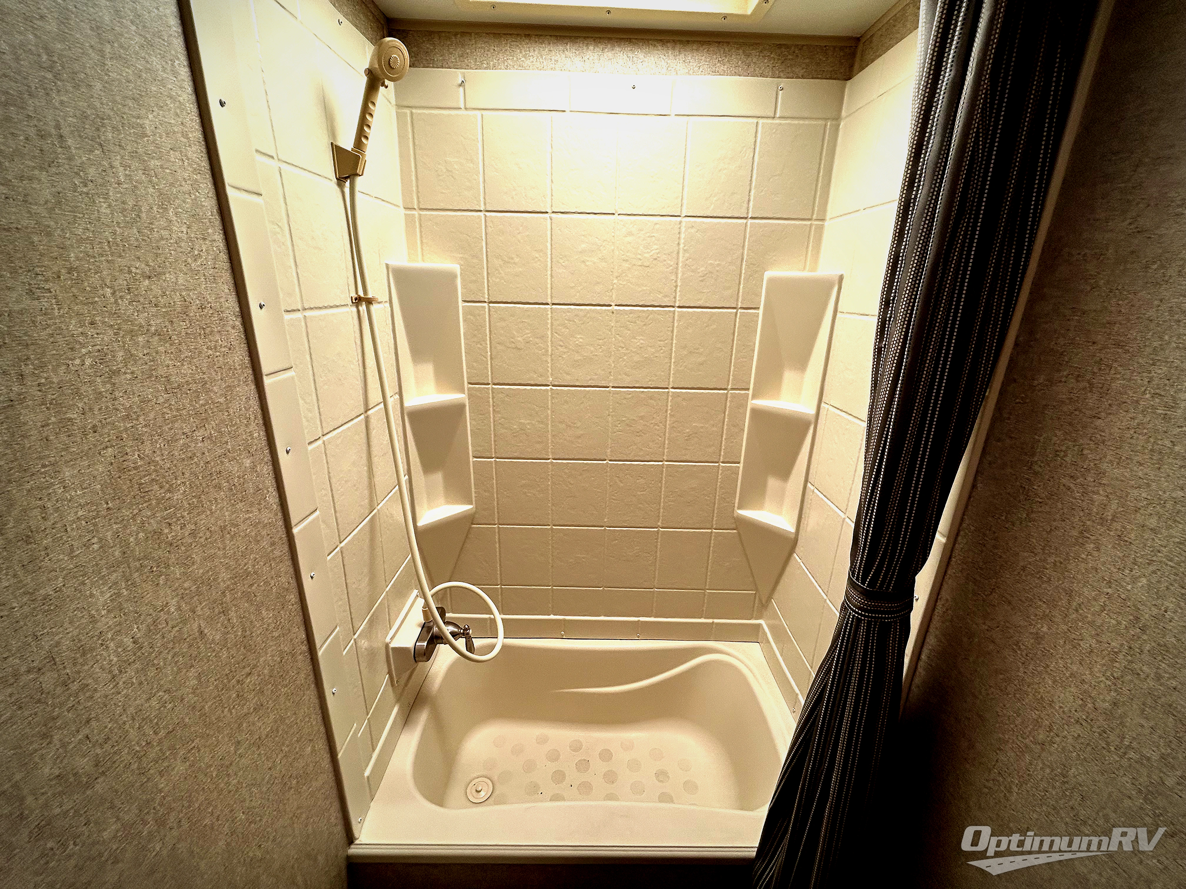 There is more sleeping space in the rear of this unit where you will find a set of double bed size bunks. The complete bath is next to the bunks making it extremely convenient, especially at night. The bathroom offers a full tub, toilet, and vanity sink.