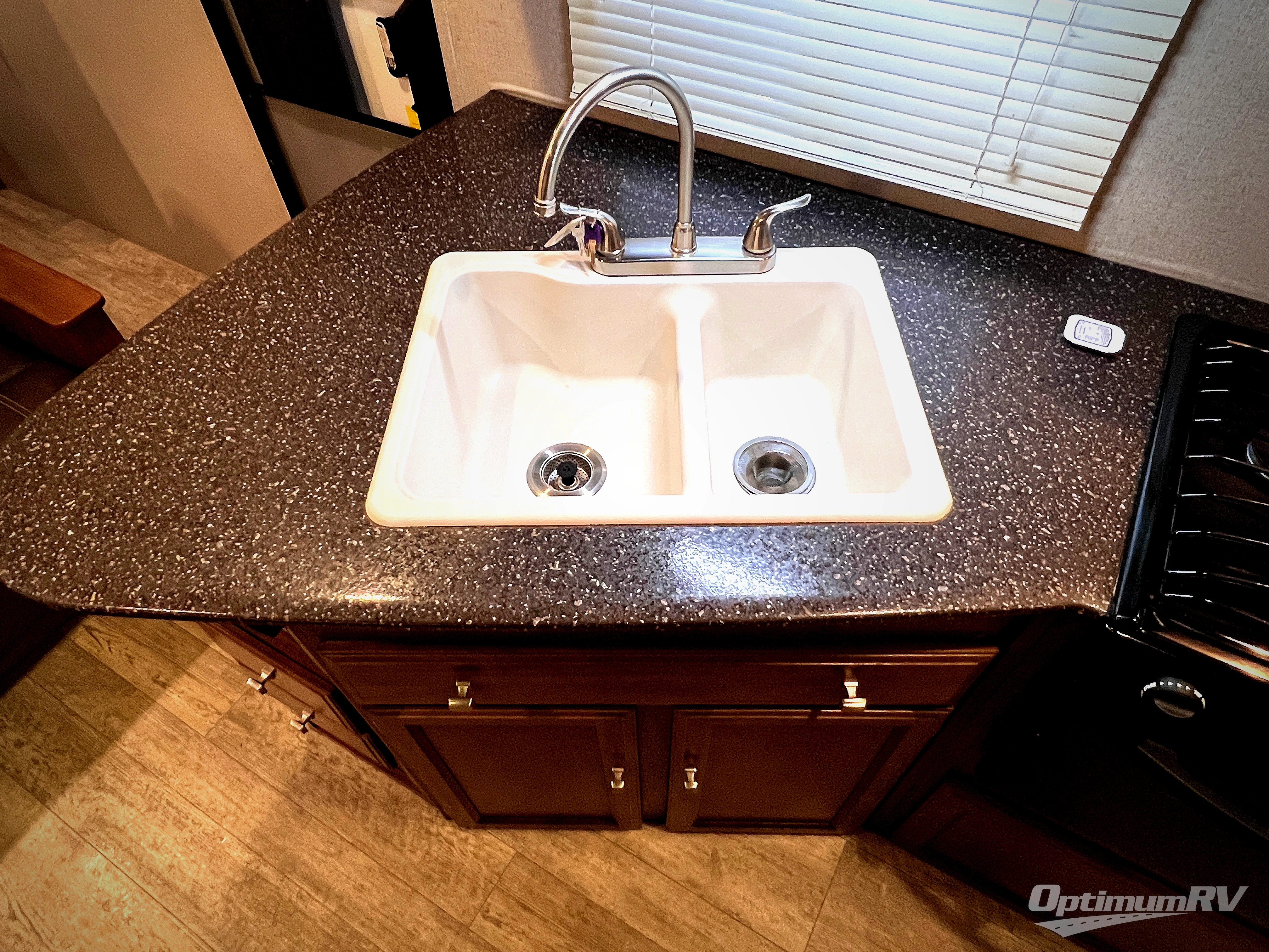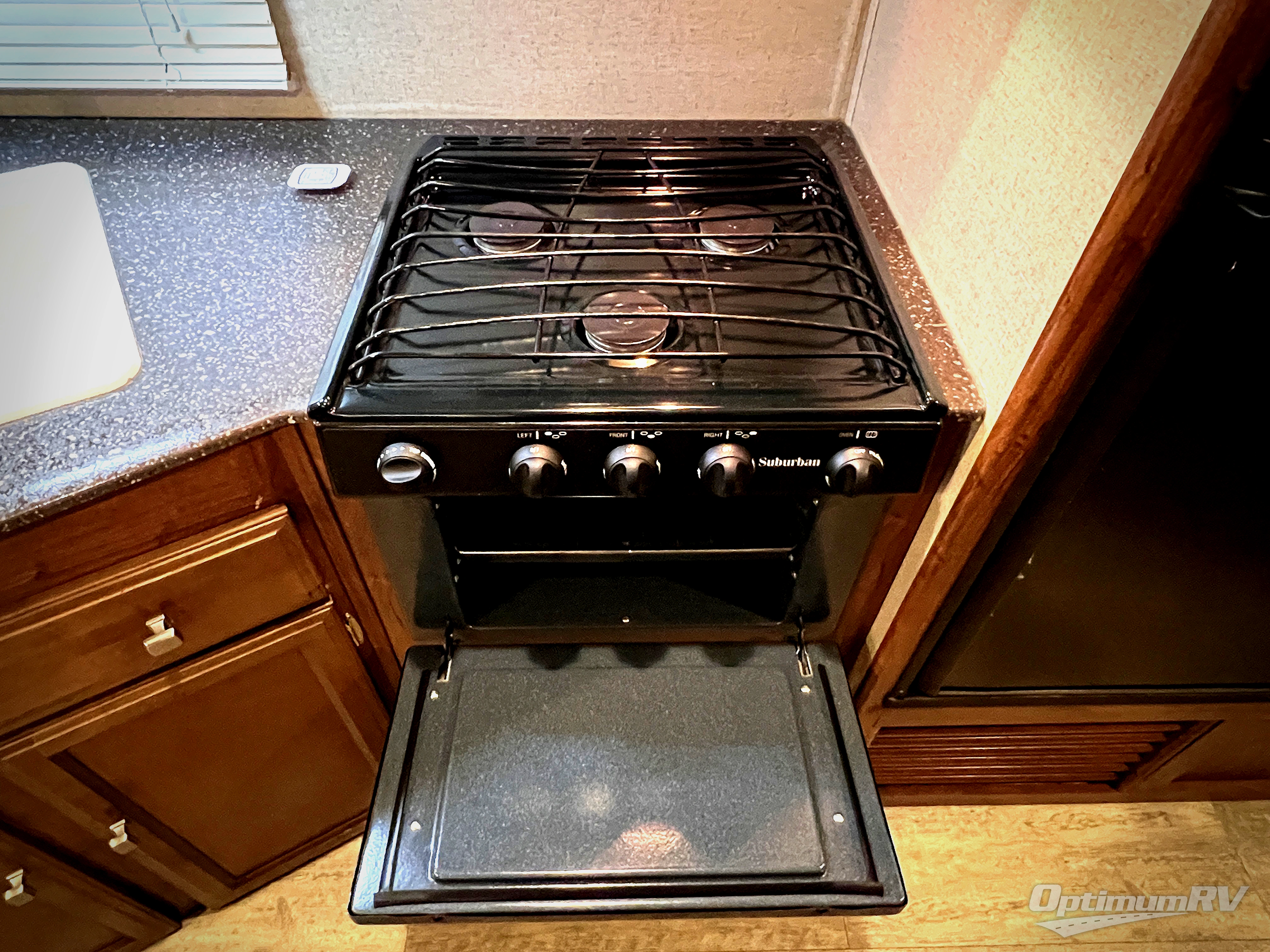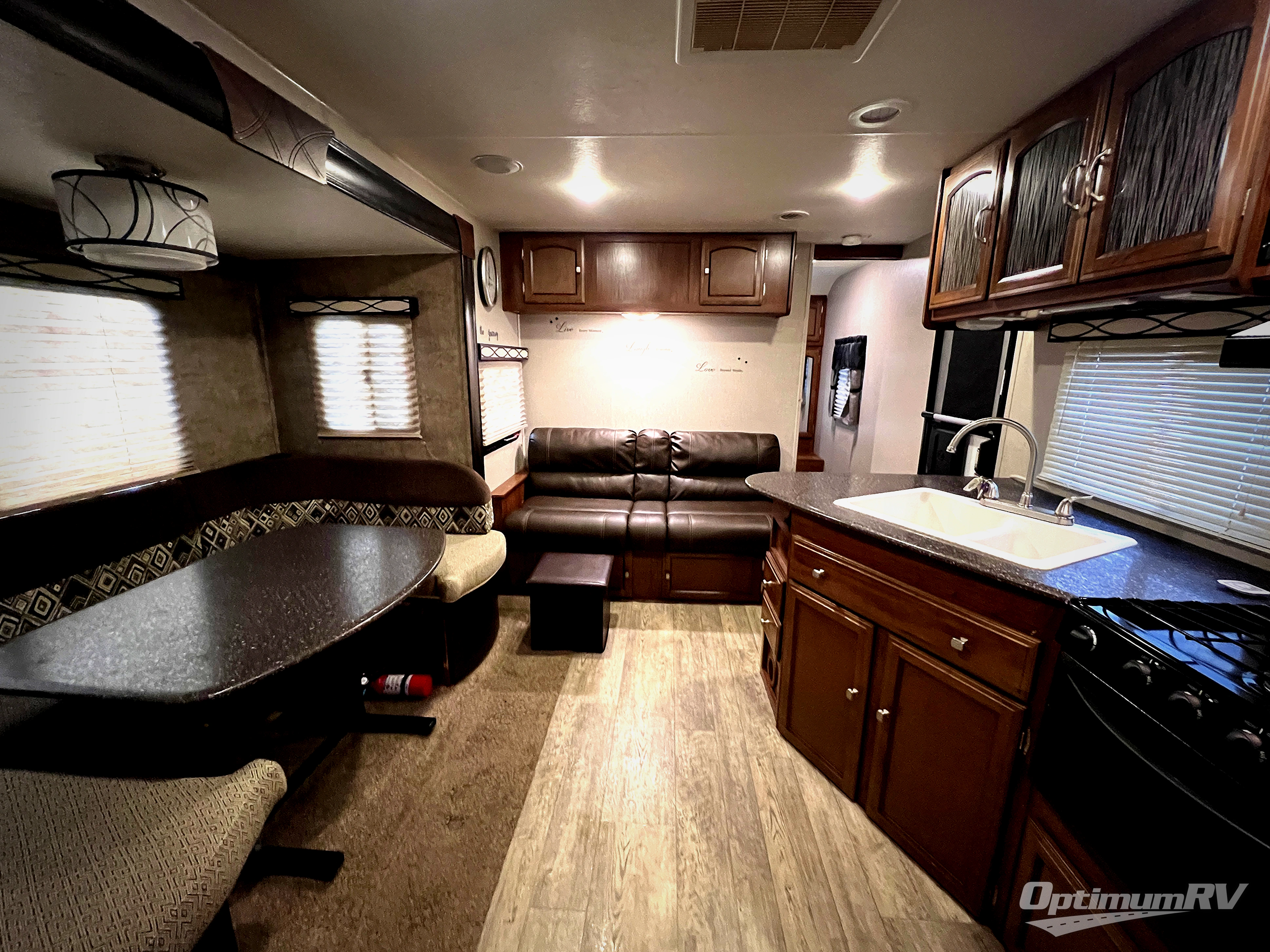 Straight in through the door you will find a sofa with storage overhead, and adjacent a slide out 88" wide u-shaped dinette. Both can also provide added sleeping space if needed at night. From either you can enjoy the entertainment center that is located just off the slide out dinette.