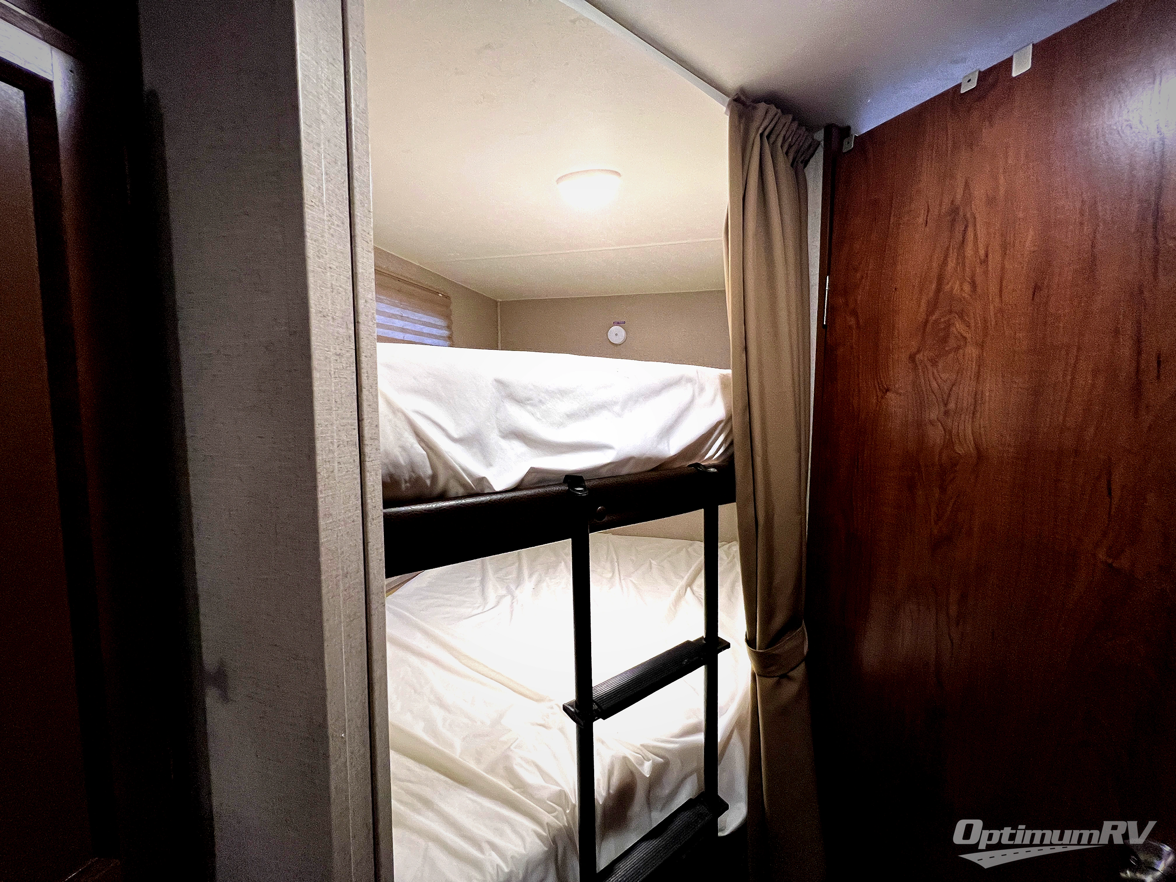 The rear left hand corner features a set of double bed bunks with an angled cut interior side bottom corner for added moving around space, plus so much more!