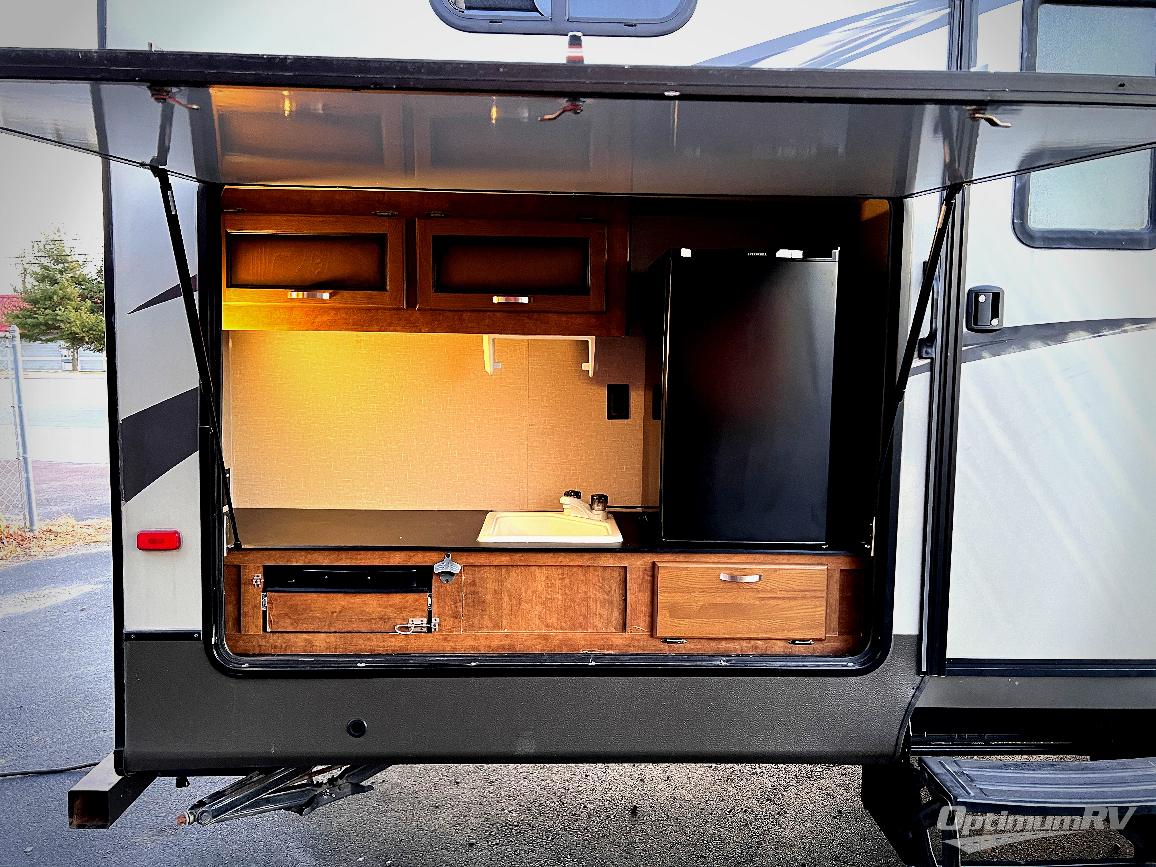 Outside there is an exterior kitchen with a refrigerator, and sink. You can even choose an optional bumper mount grill, plus more!