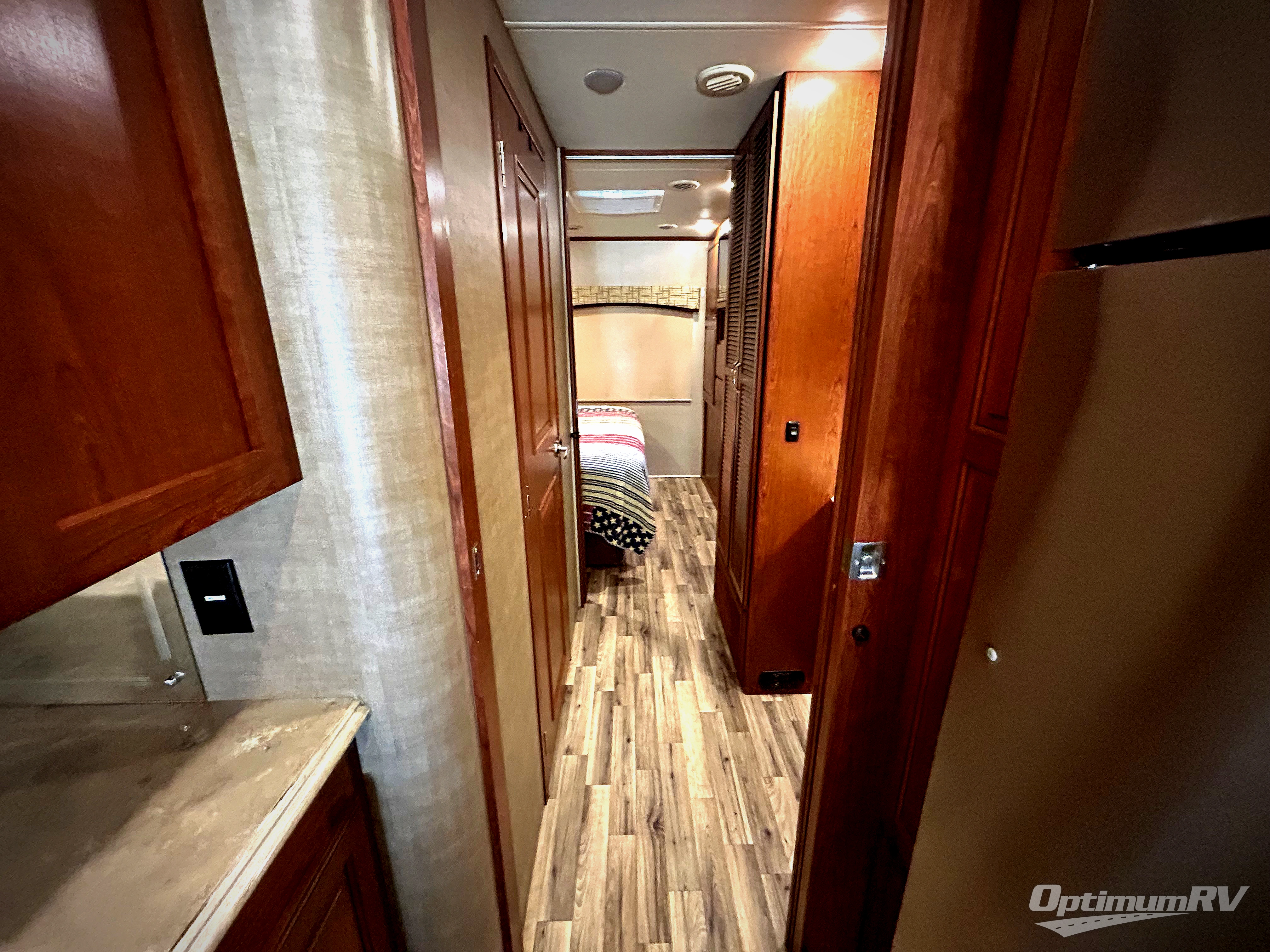 Just before you enter into the bedroom you will find a large closet or you can choose to have an optional washer/dryer. Inside the room along one side there is a closet, 32" TV, a set of drawers, and a wardrobe. On the opposite side you will find a slide with a king bed, or you can choose an optional queen, and more!