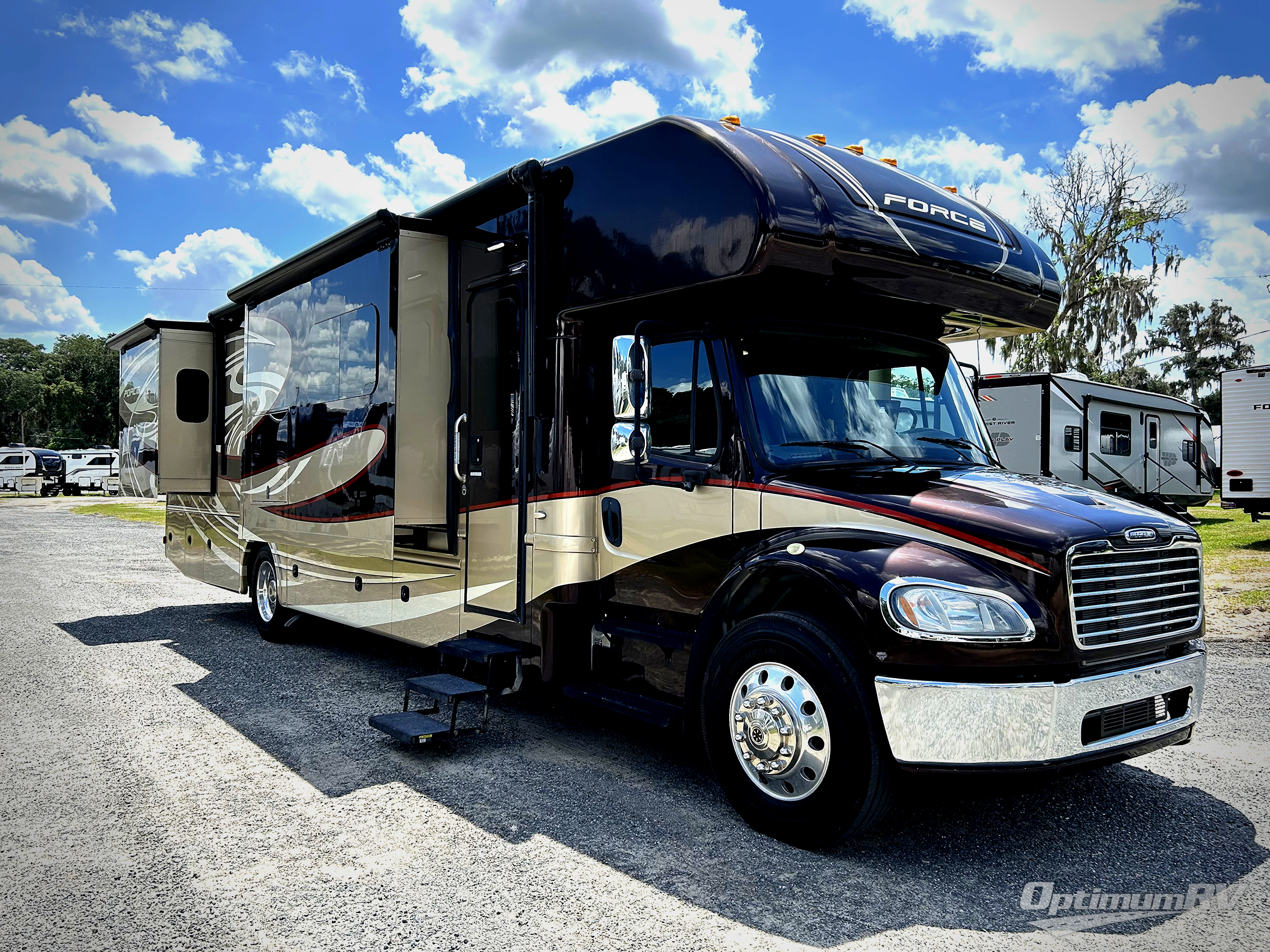Embark on your next road trip in this triple slide out, cab over bunk, 37TS HD FORCE motor home by Dynamax.