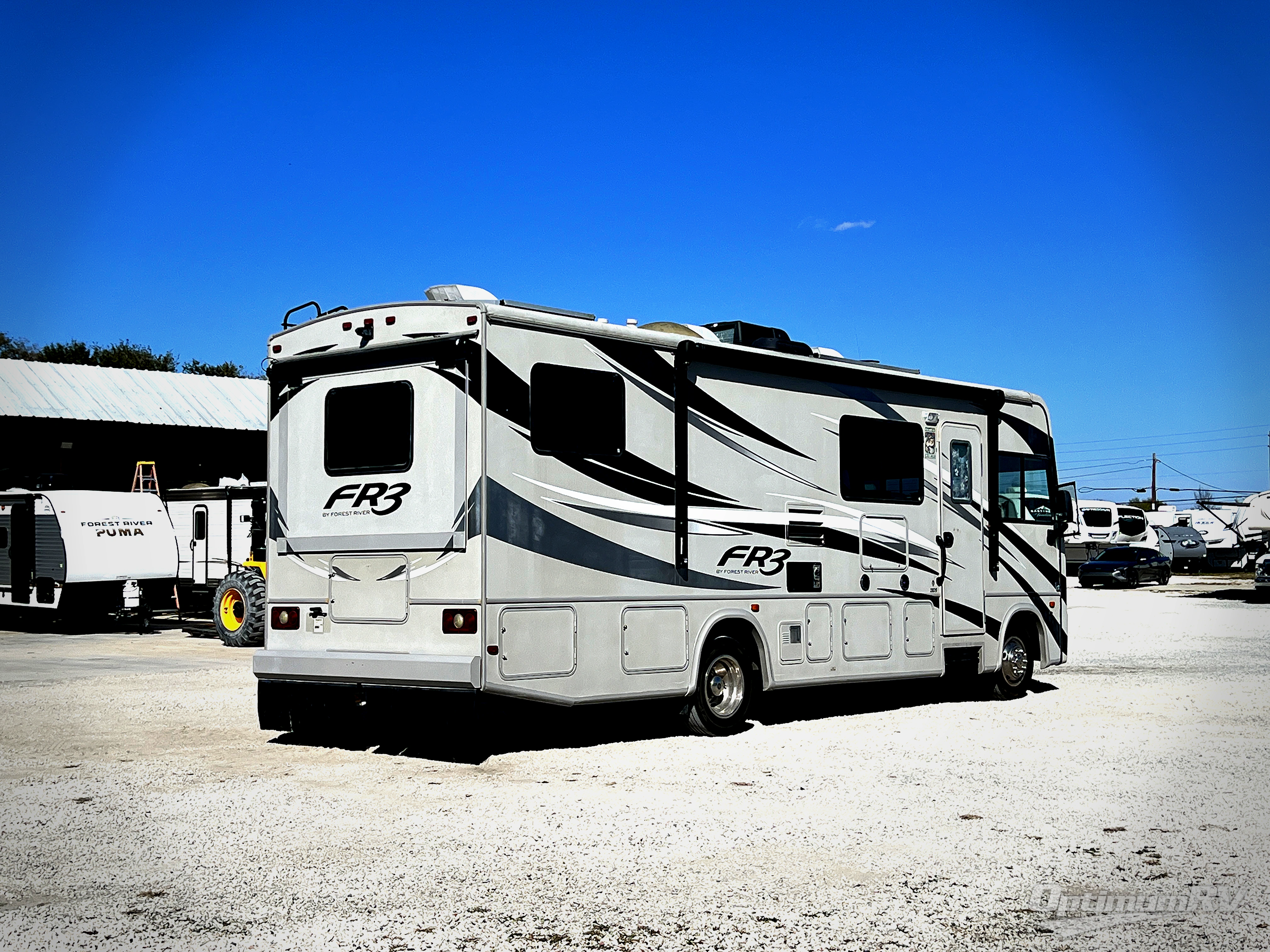 This FR3 28DS Class A gas motor home by Forest River has a cozy and comfortable living area with a slide out, a second rear slide king size bed in the bedroom, and a walk-thru bath for convenience, plus much more!