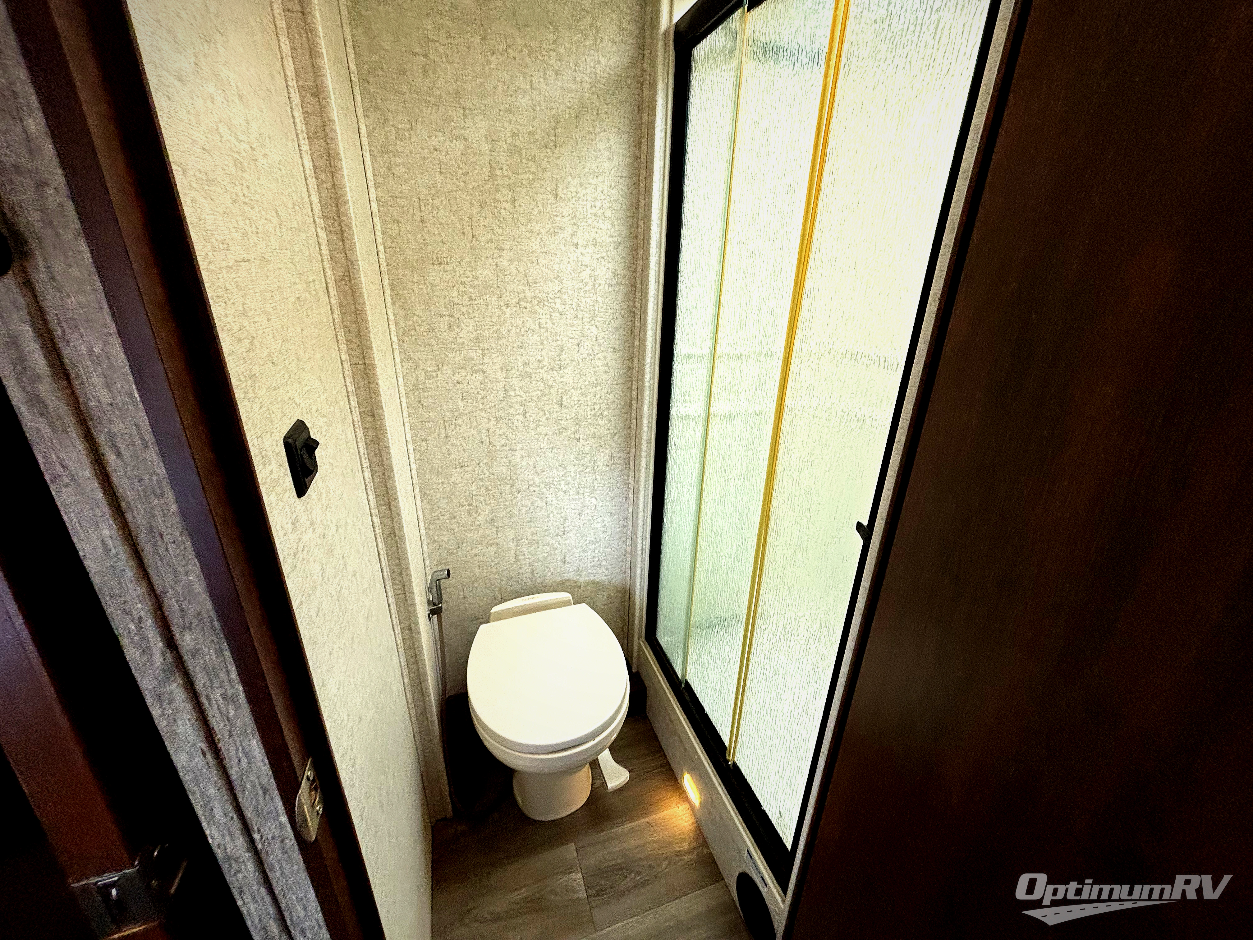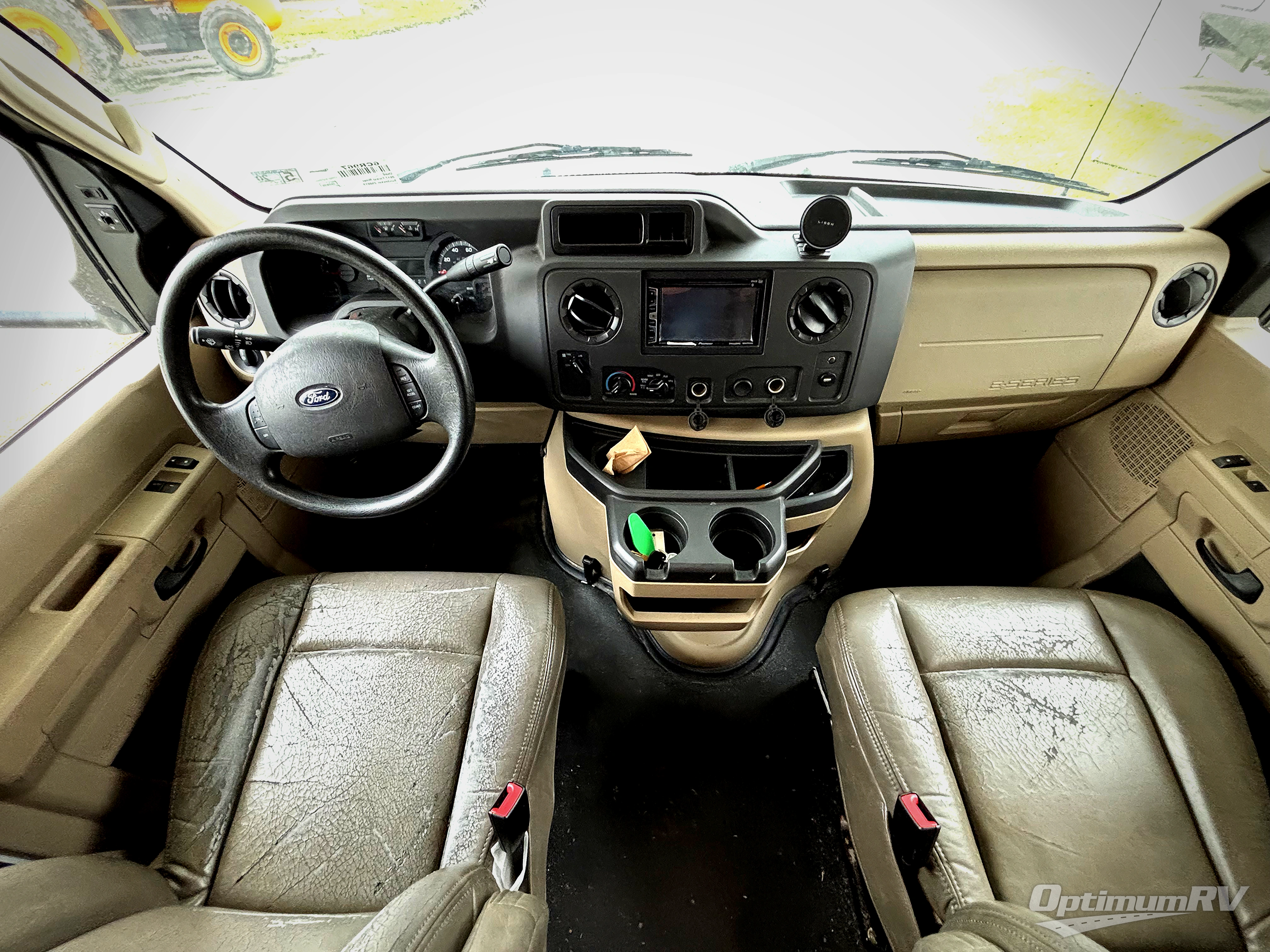 As you enter this class C motorhome, there is a 60" x 80" over the cab bunk, or you can choose optional cabinets with 42" TV or optional 32" TV with twin beds. Continuing along the driver's side, a u-shaped dinette is within a slide out. Or in place of the dinette you can choose an optional booth dinette, or a sofa with table. Next to the slide there is a pantry as well as a private toilet area with a shower. A vanity sink is located across the motorhome.
