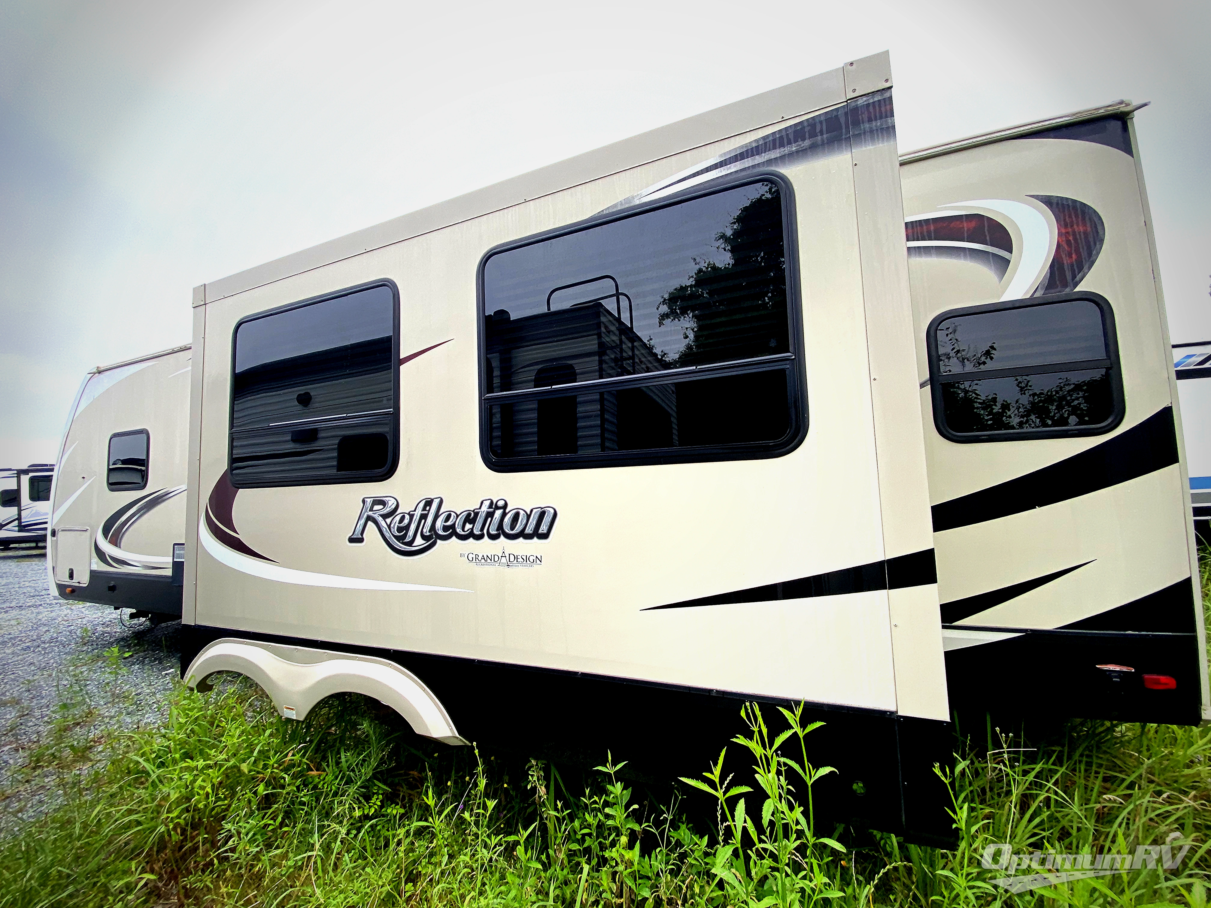 Enjoy every camping trip with this Grand Design Reflection travel trailer in tow. Model 297RSTS offers added space thanks to dual opposing slides. It also features a rear living layout, and a convenient kitchen island. There is an exterior kitchen that the camp chef will truly love, plus a warm cozy fireplace to really make things feel like home!