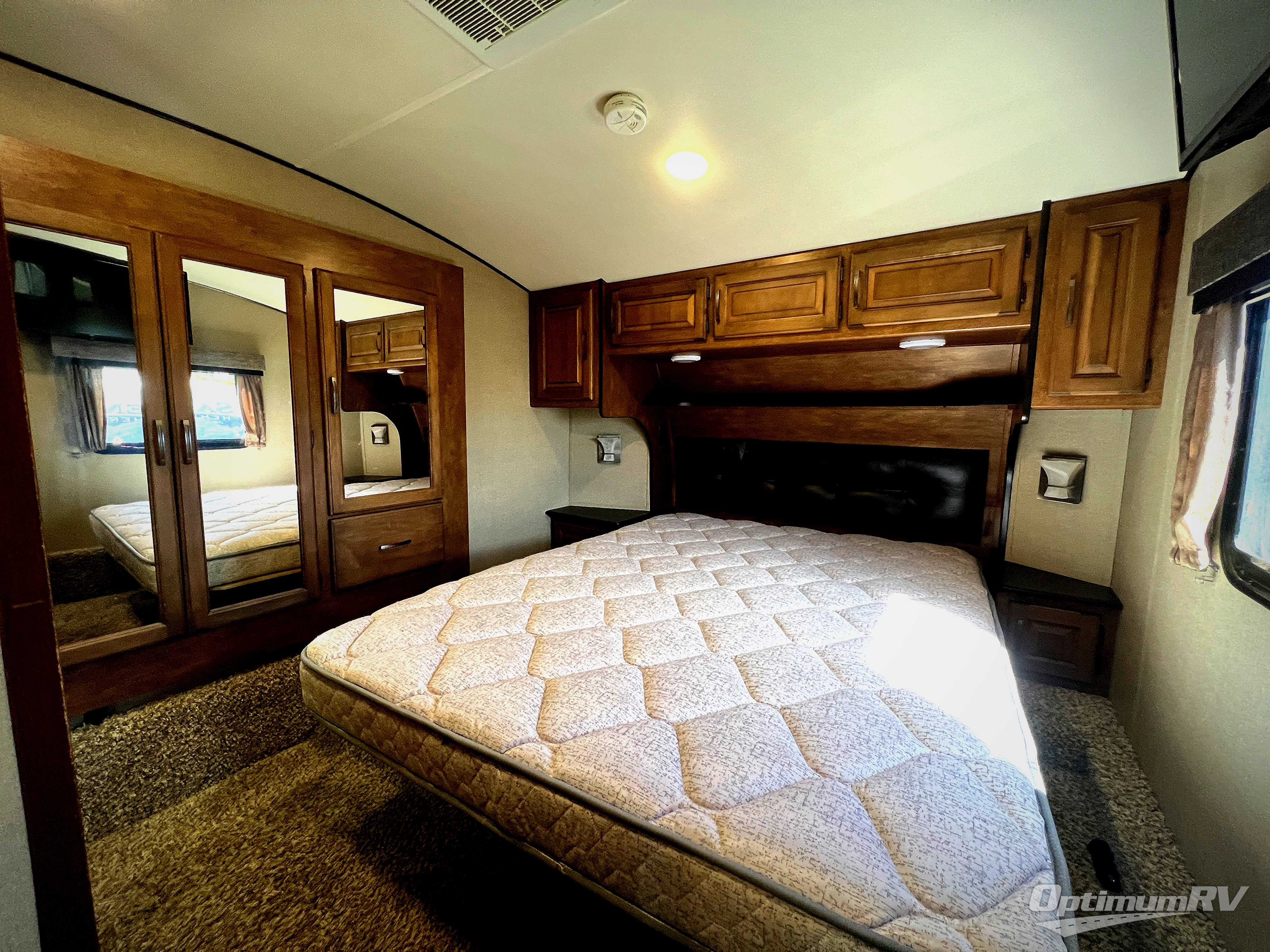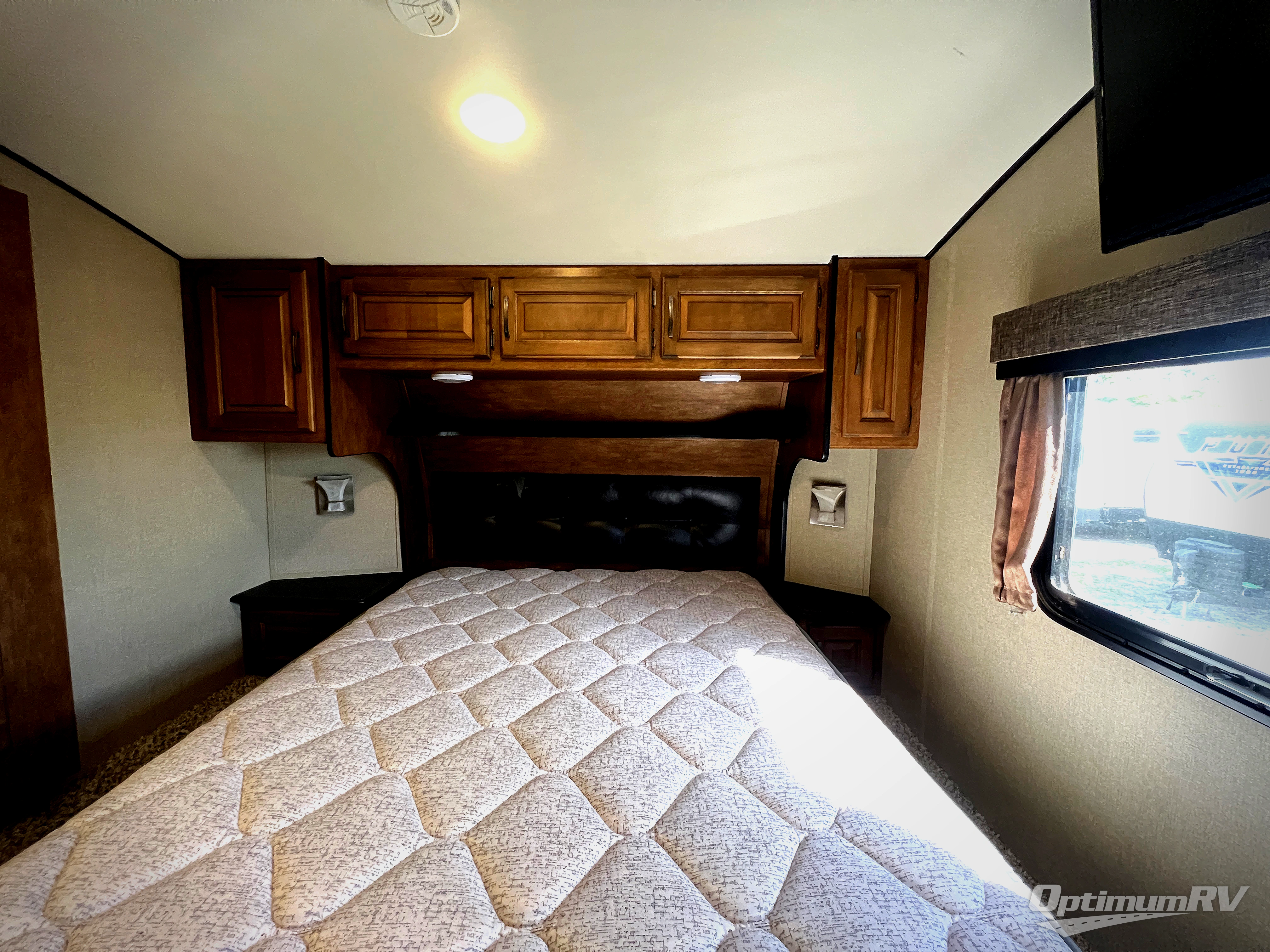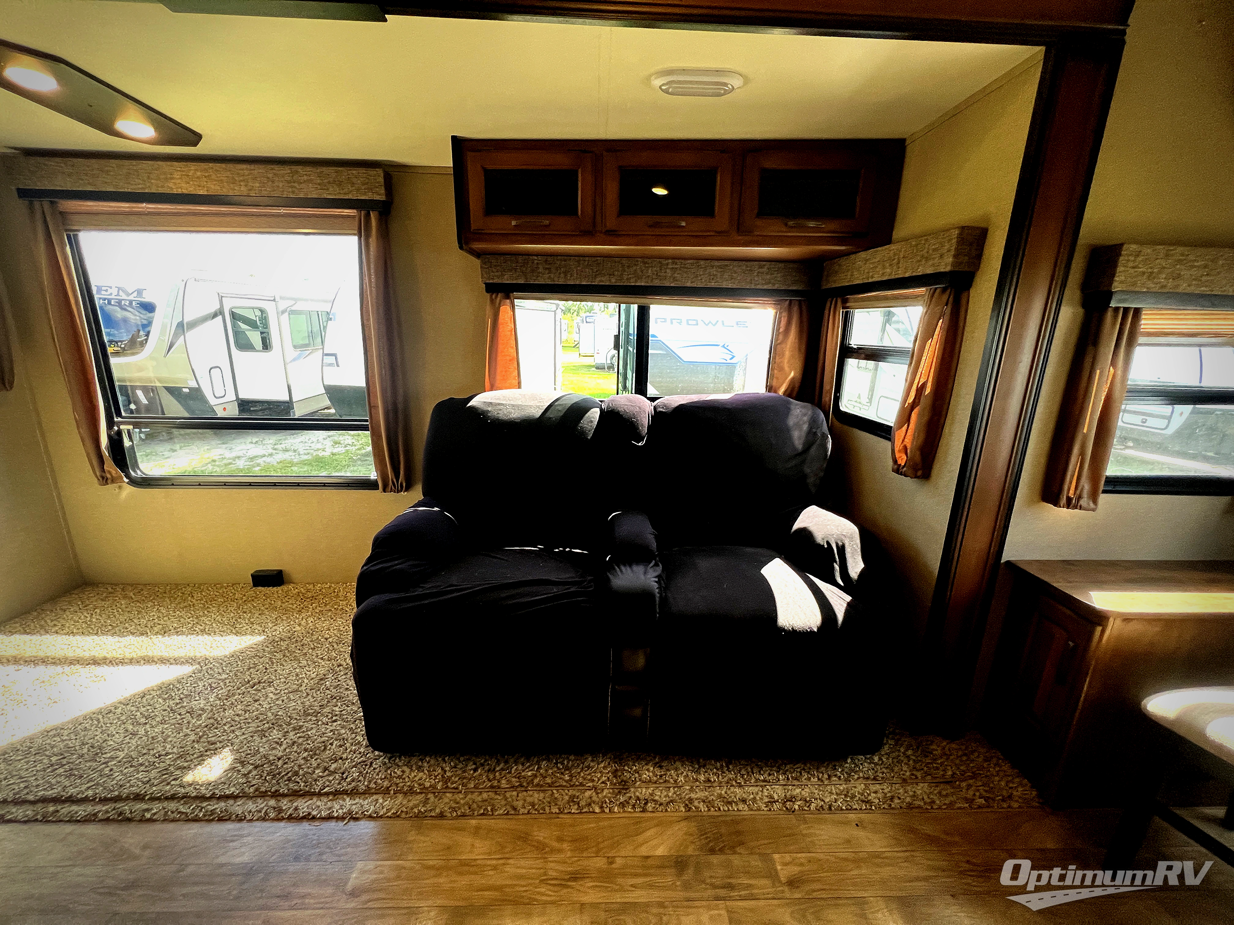 Tucked in the rear of the fifth wheel you will find a tri-fold sofa that is perfect for relaxing and also provides additional sleeping when needed (queen sized bed).
