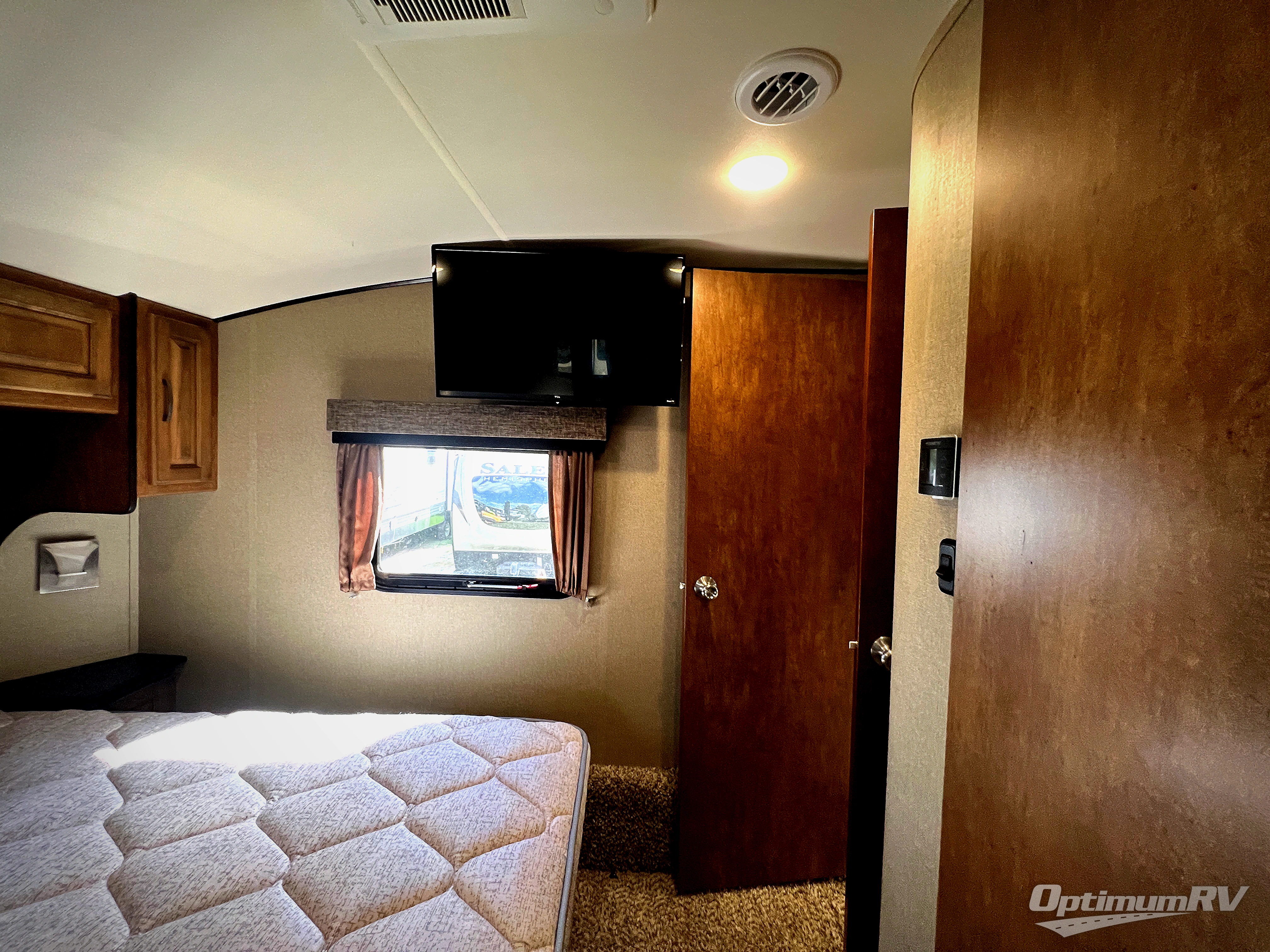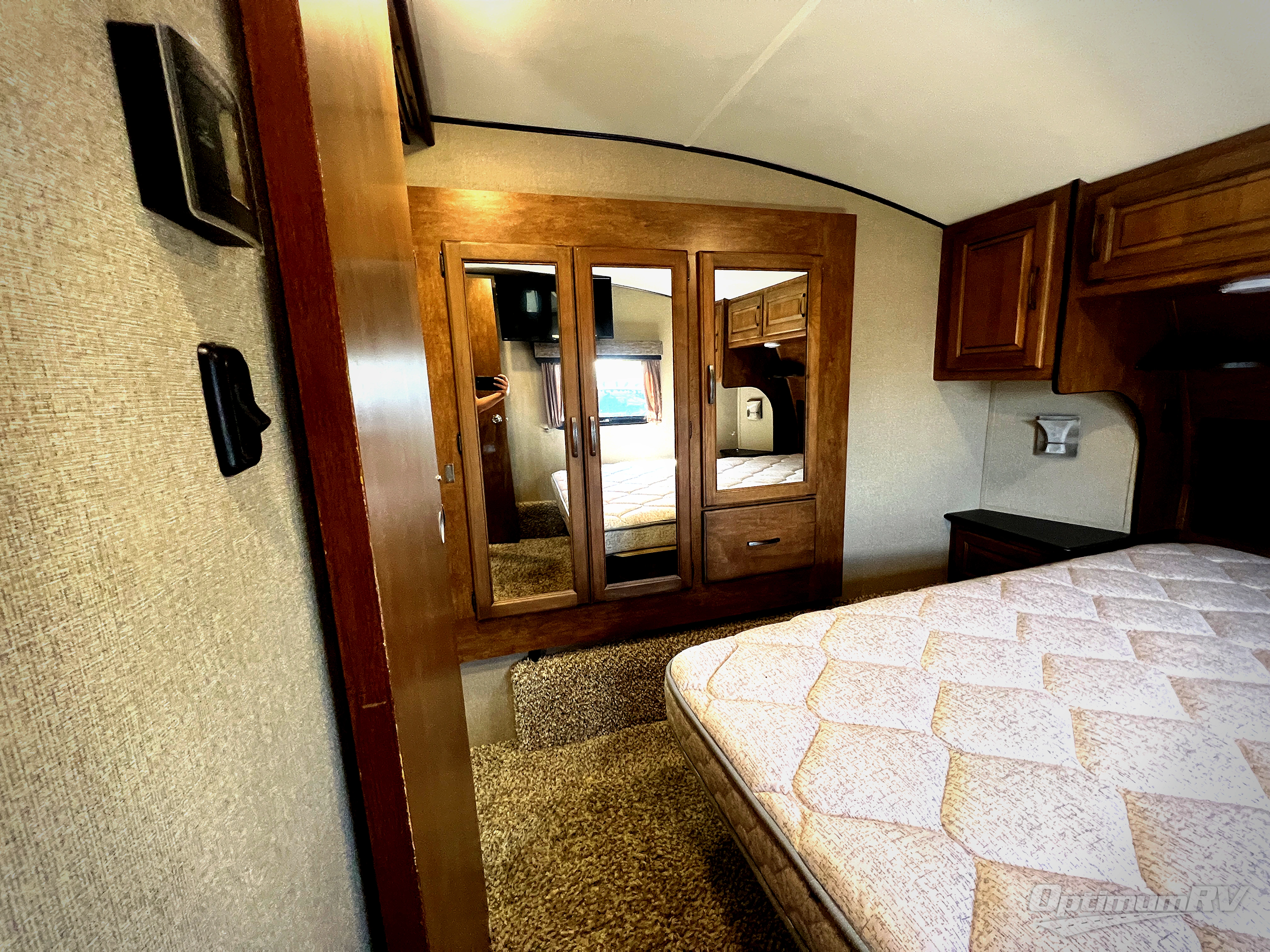 Back at the entry door you can step up to the right and find a front master suite with bathroom accessible from the hall door, or from within the bedroom. Enjoy a restful night's sleep in a comfortable queen bed including overhead storage cabinets and nightstands beside the bed. There is a slide out with wardrobes, and a linen cabinet that falls within the bath.
