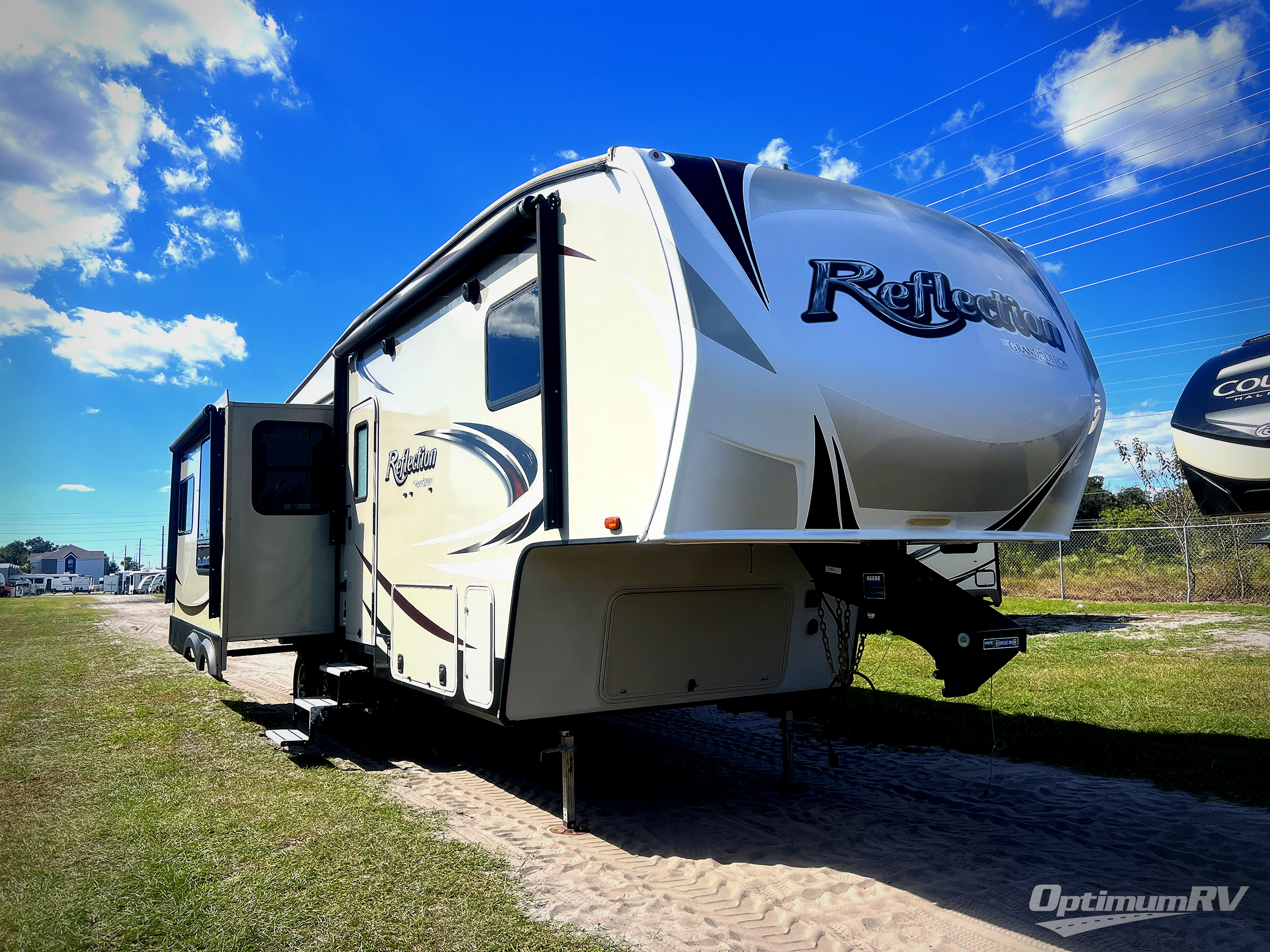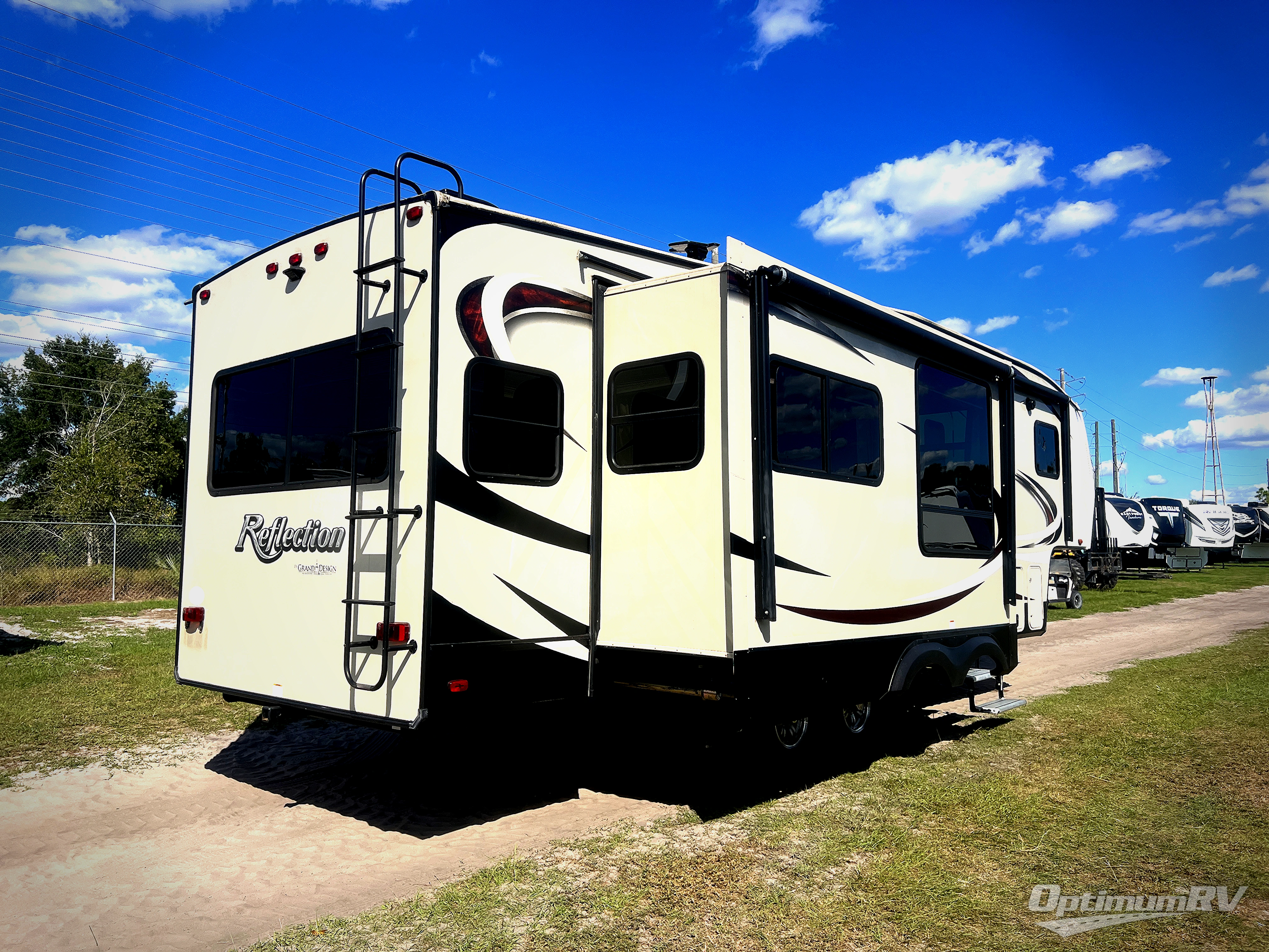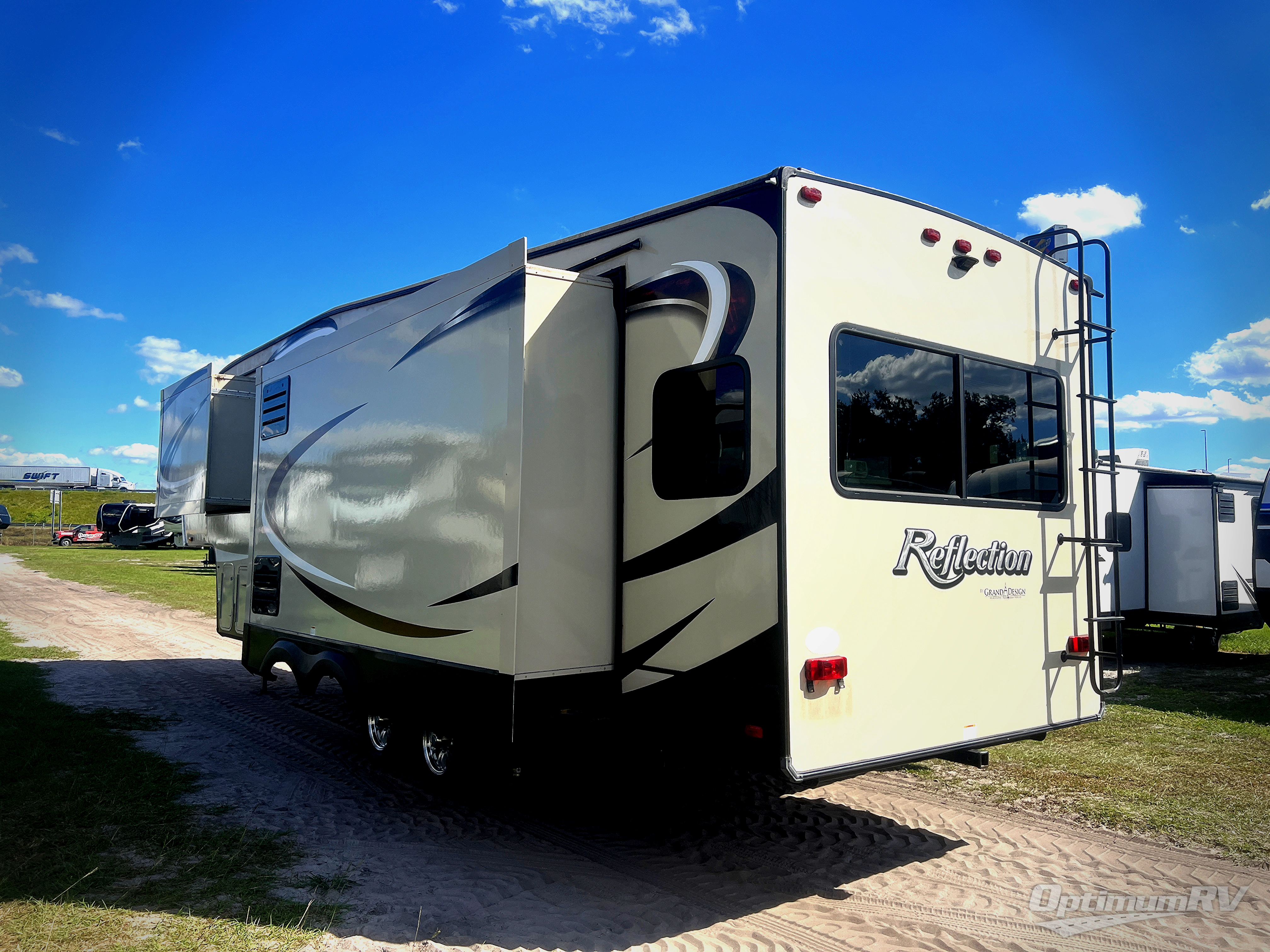 This Grand Design Reflection mid-sized fifth wheel 303RLS is the perfect RV featuring triple slide outs and a rear living area, plus a kitchen island.