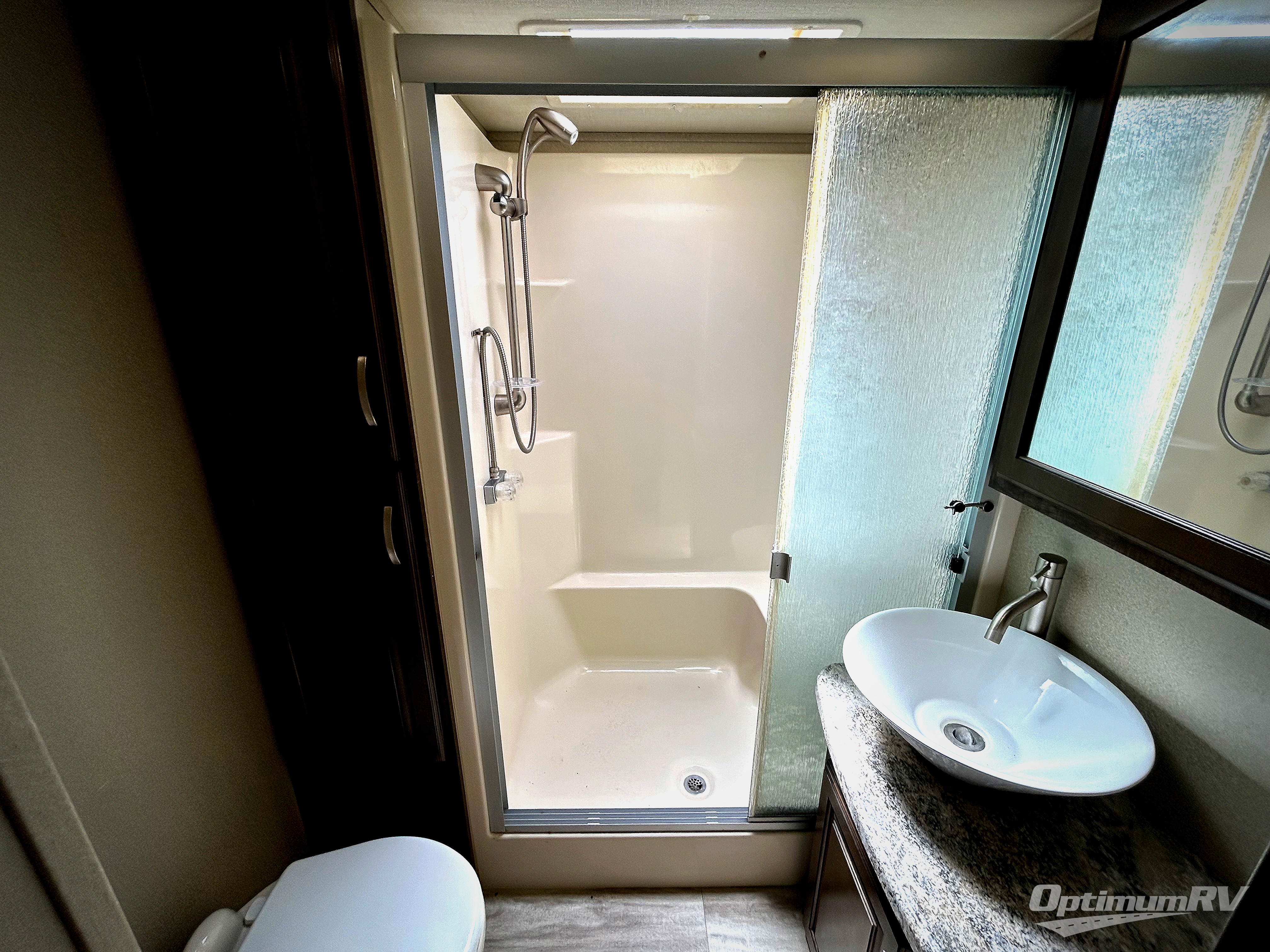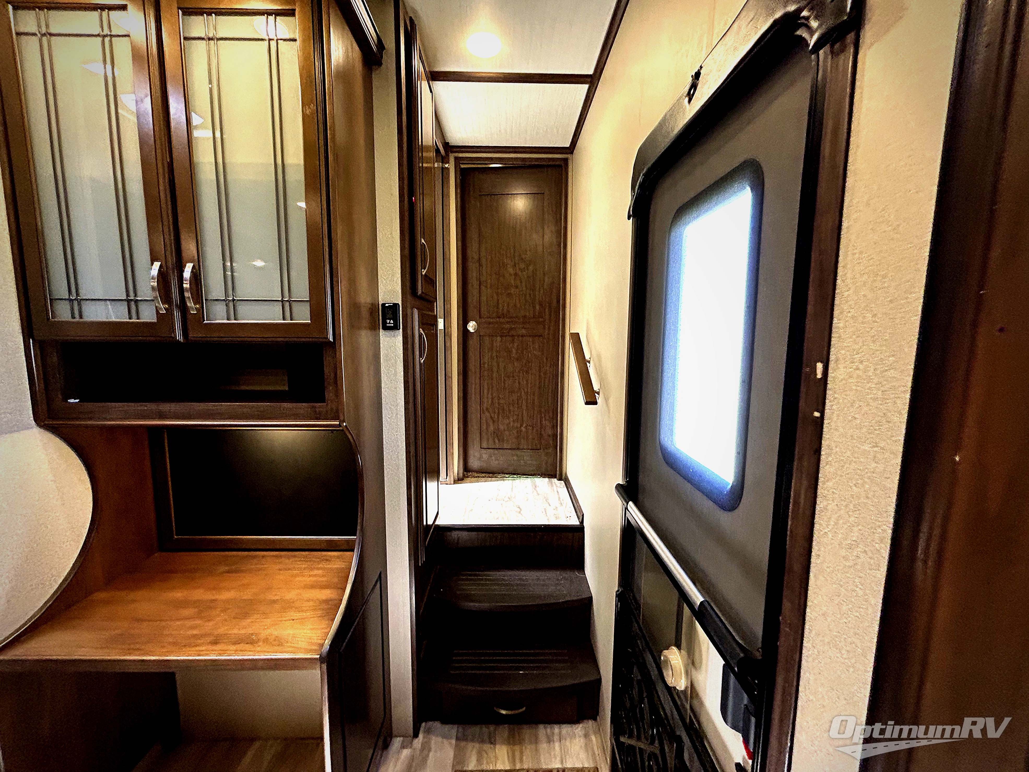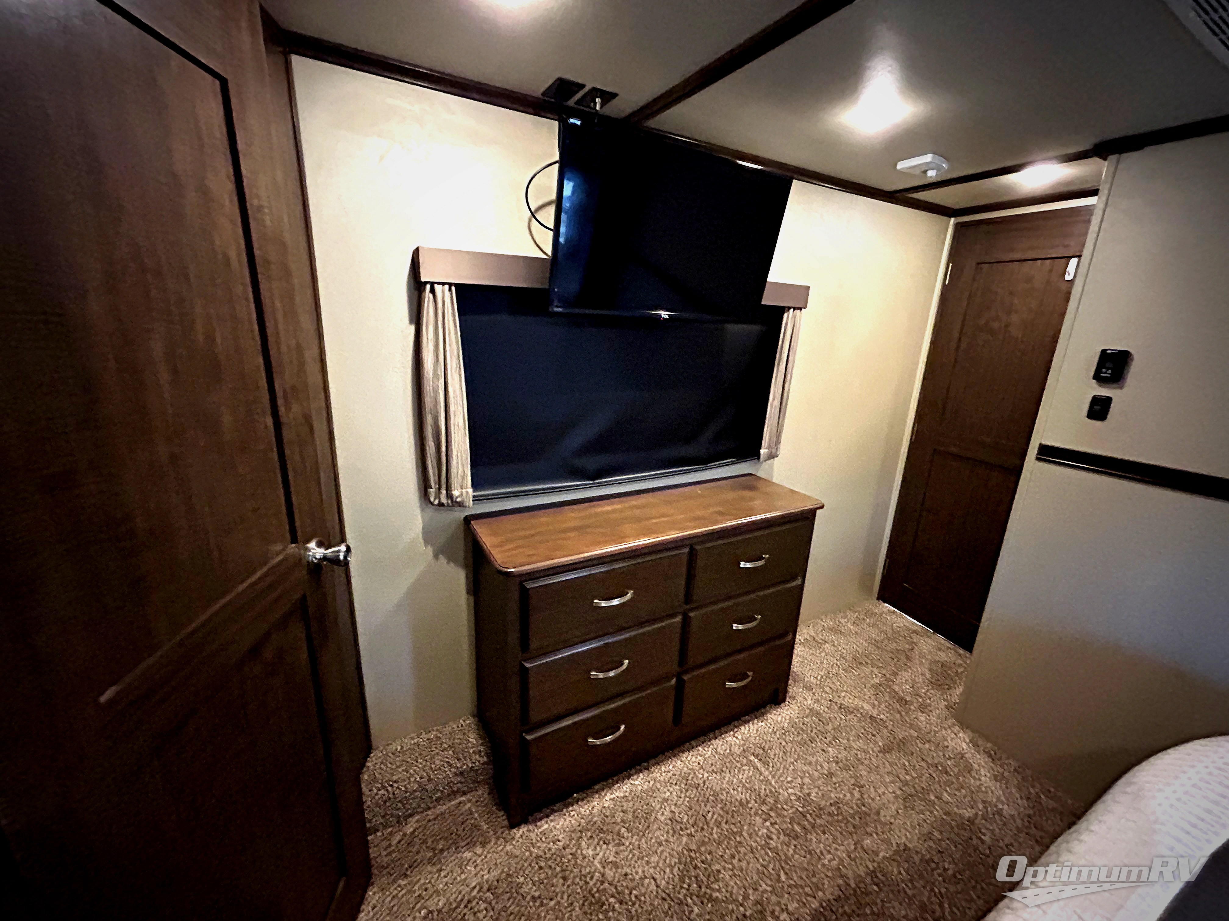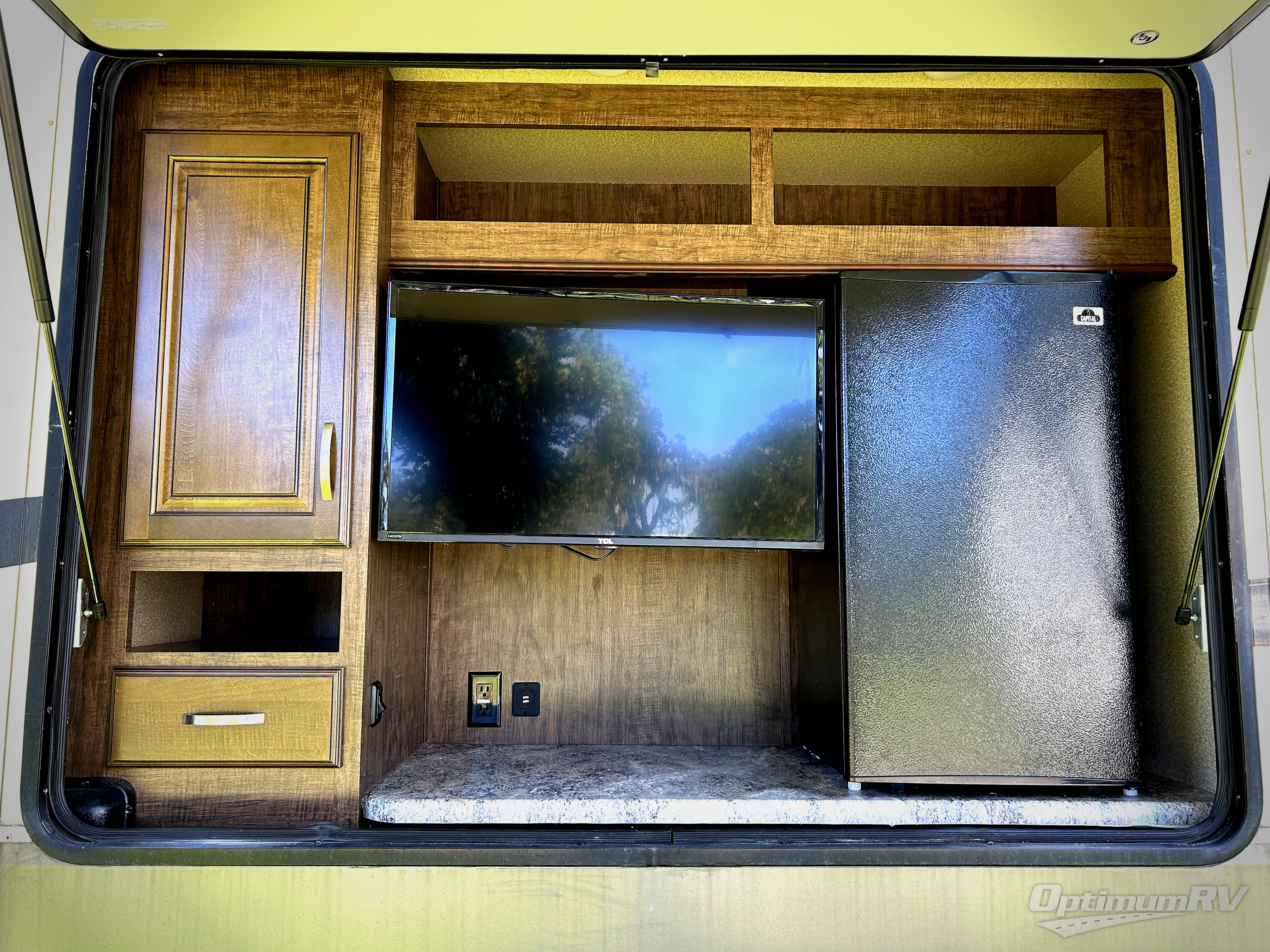 Outside enjoy an exterior LED TV and refrigerator to keep cold drinks handy. You will also love the unobstructed pass-through storage compartment for all of your outdoor camping items, plus universal docking station, and so much more!
