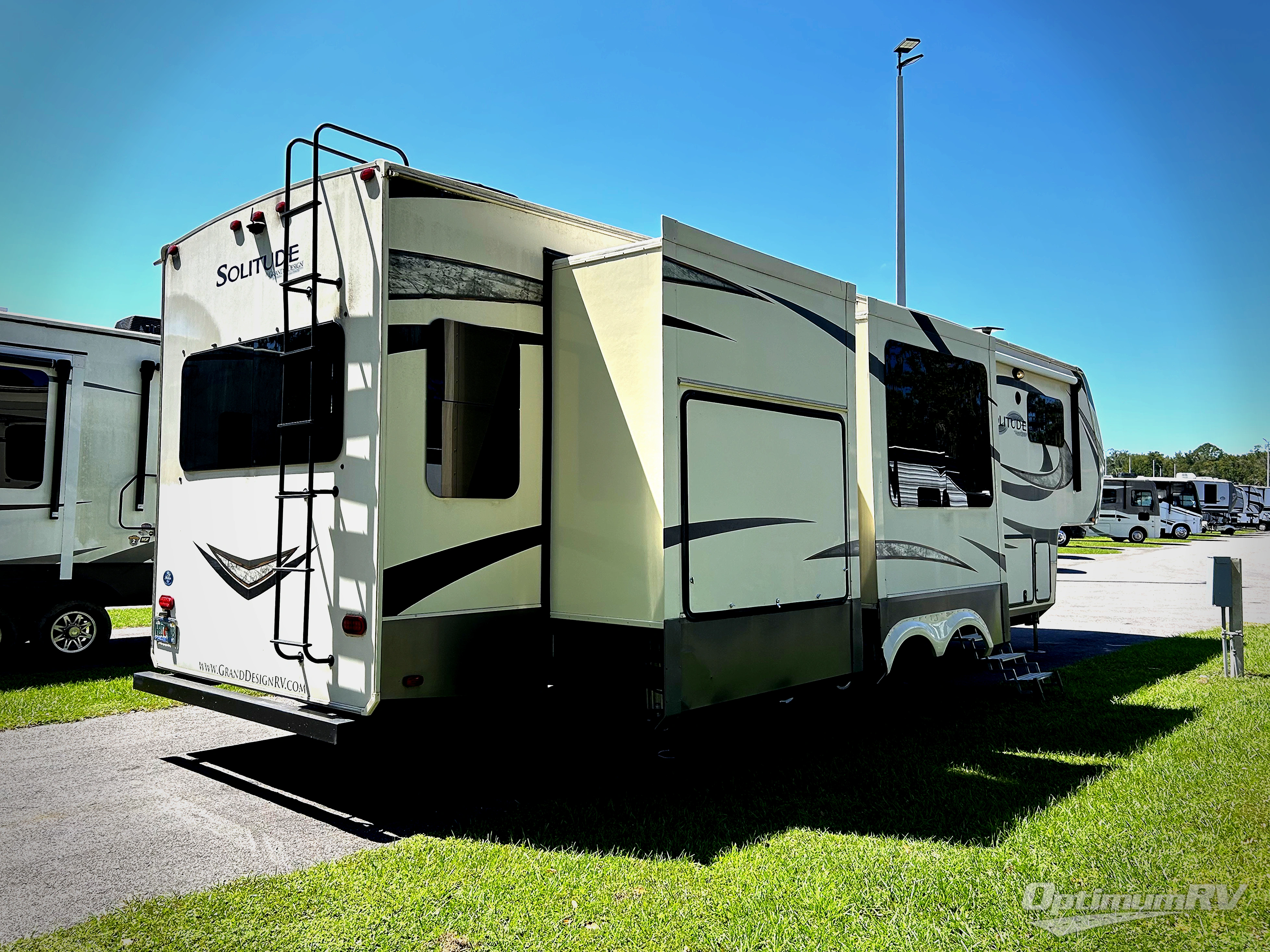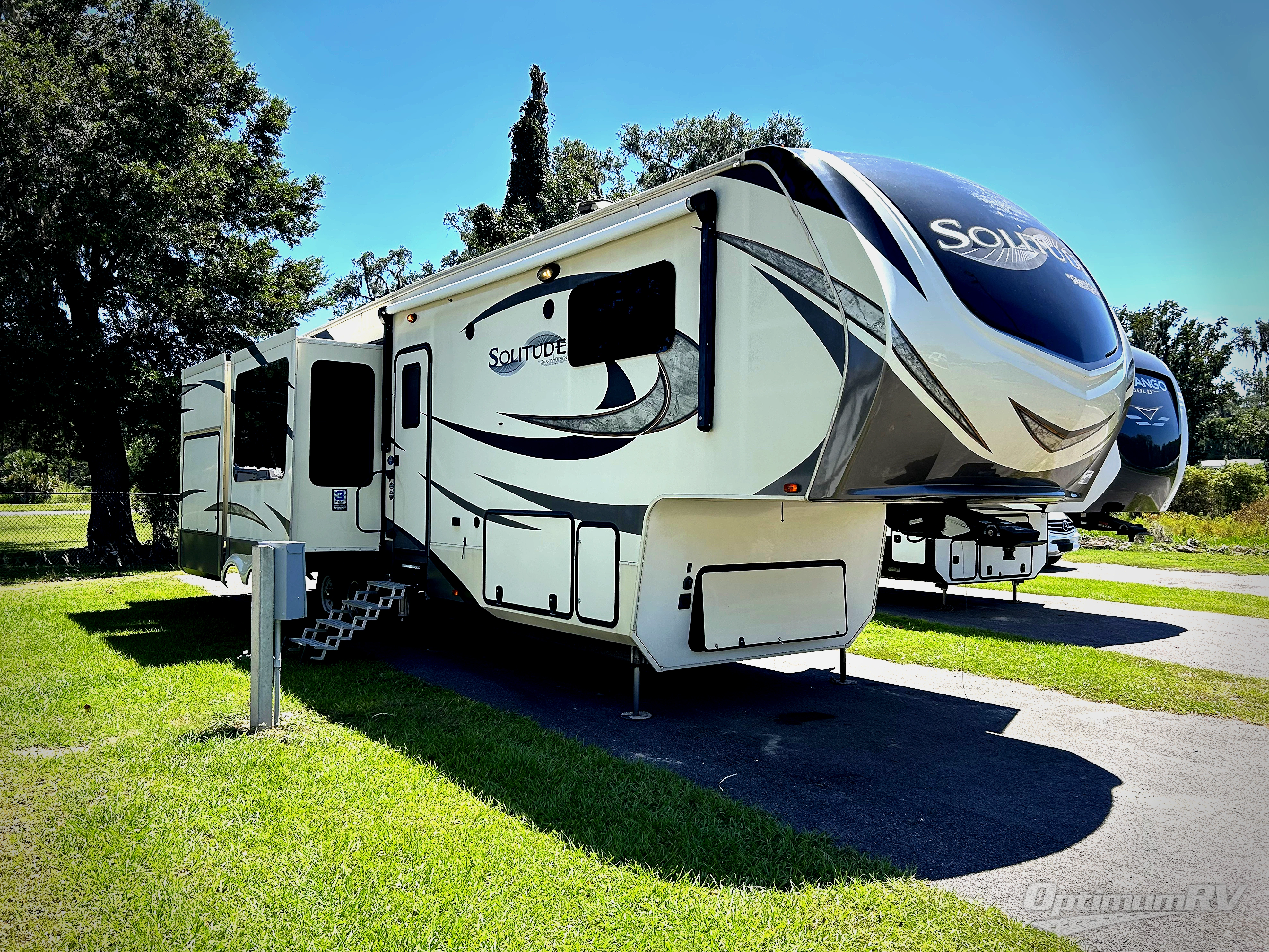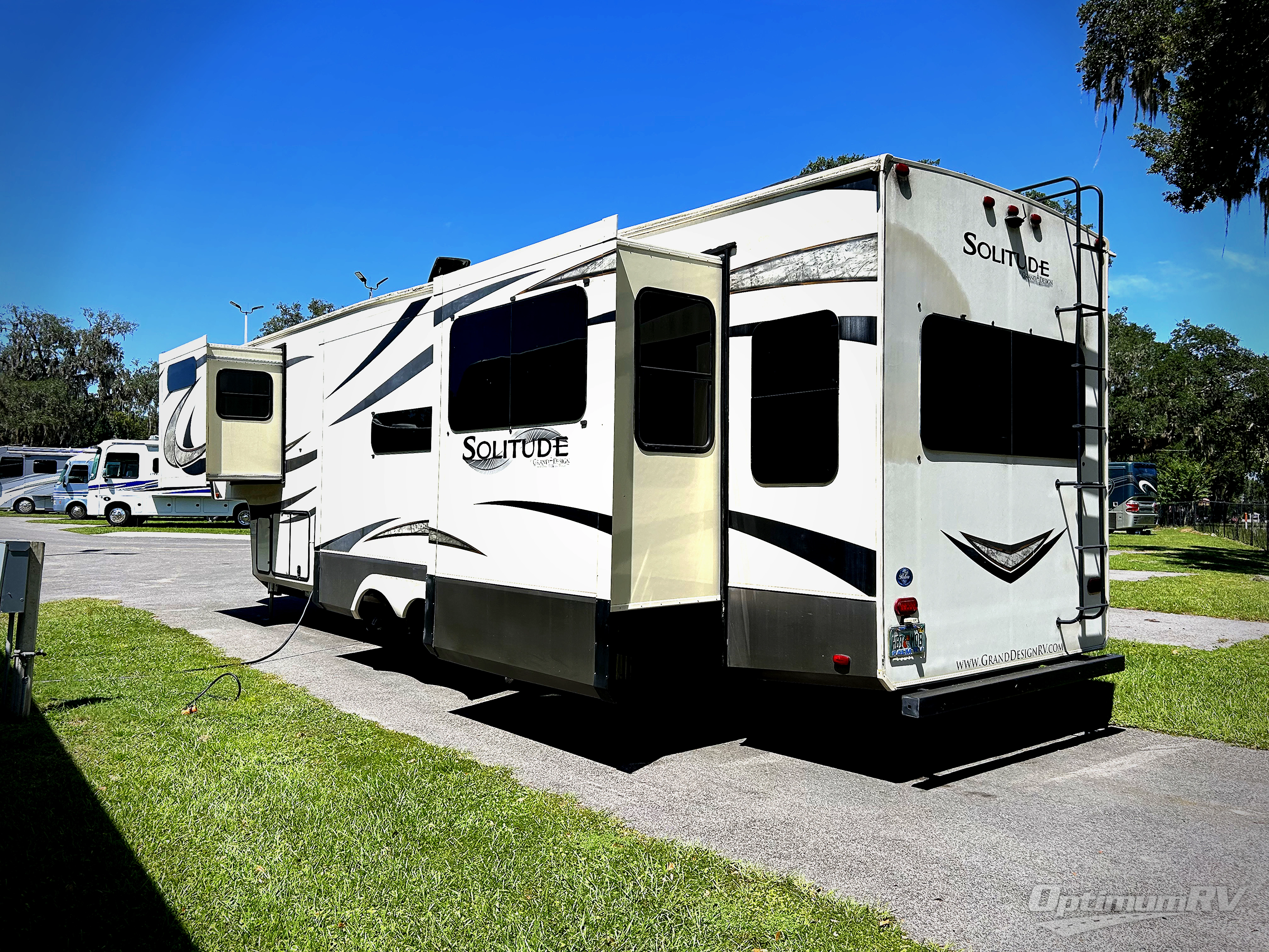 You will find it easy to extend your stay awhile in this Grand Design Solitude fifth wheel model 360RL. This unit features all of the amenities of home including a spacious kitchen with an 18 cu. ft. refrigerator, a kitchen island, an entertainment center with fireplace, and private front master bedroom, plus more!