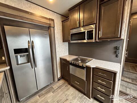 This Mesa Ridge fifth wheel model MF347RES features a rear entertainment layout, triple slides for added interior space, and a king size bed in the master suite!