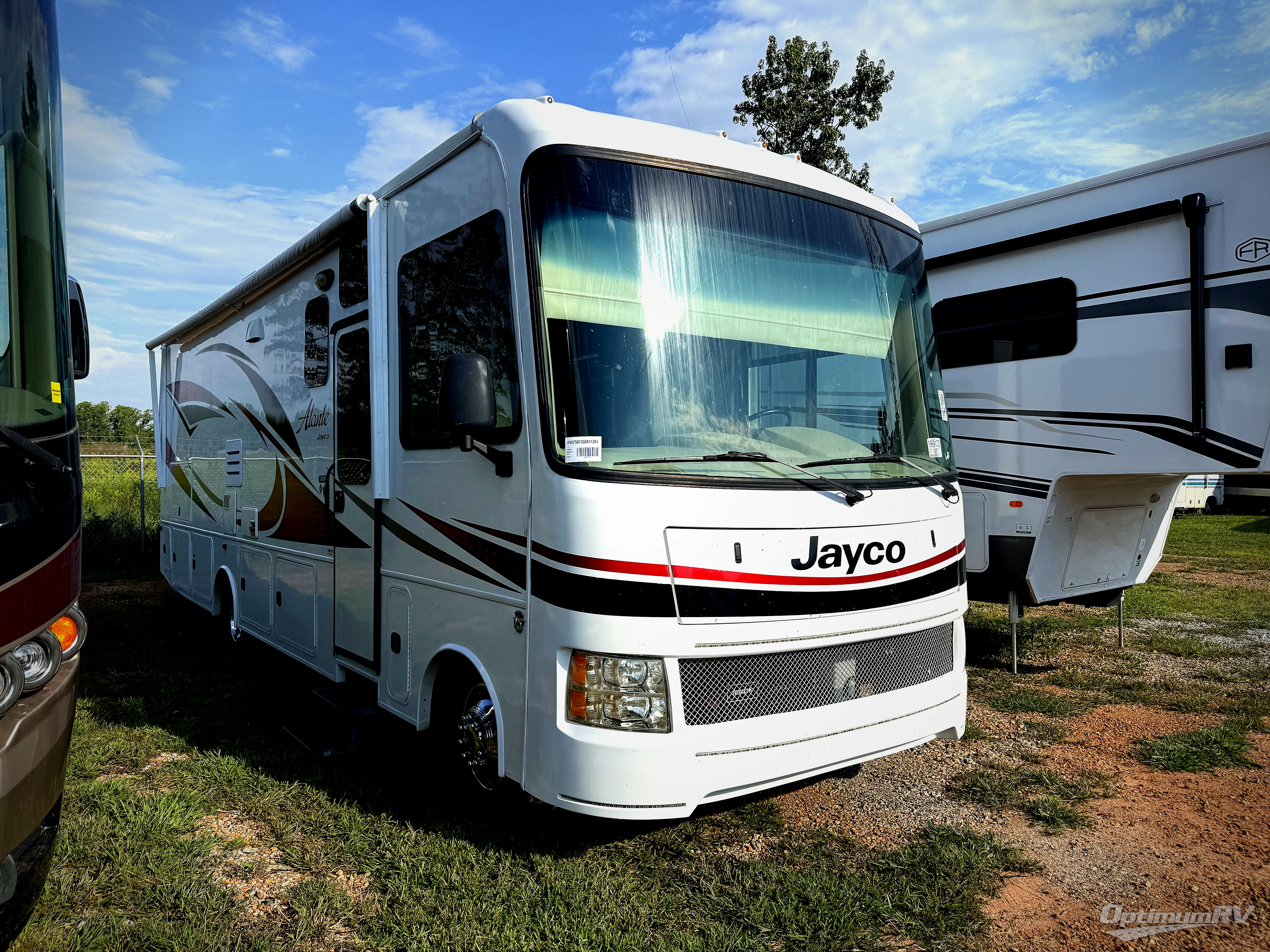 Double slides, complete kitchen and bath amenities, and an outdoor entertainment center make this Jayco Alante class A coach a great choice for your travels.