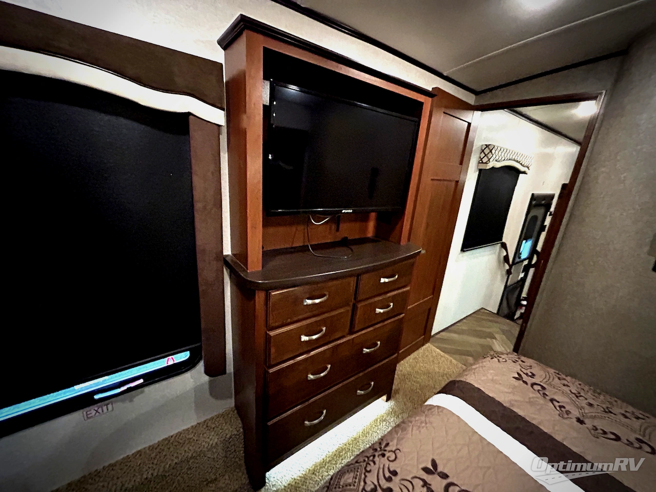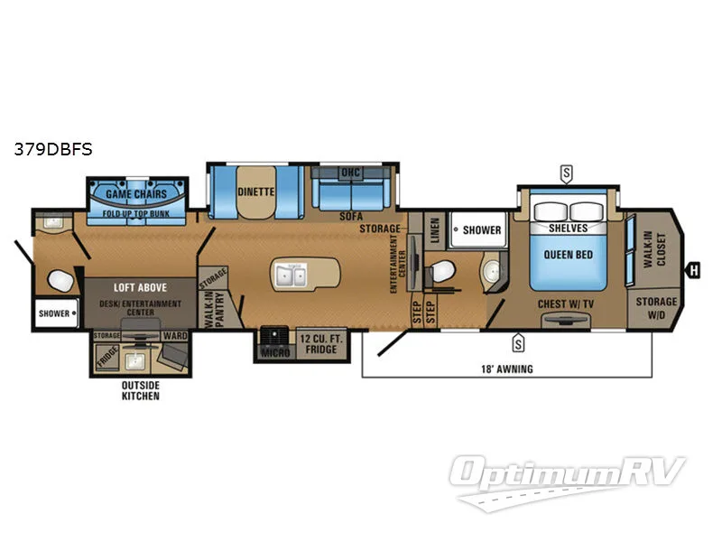 Head to the rear of this unit and check out the private walk-through bunkhouse, and rear full bath with second entry door into the fifth wheel. The bunkhouse provides dual slide outs creating added floor space with a loft above for additional sleeping space. The road side slide features game chairs that the kids will love and a fold up bunk above. You can also choose a hide-a-bed option with flip-up top bunk, the choice is all yours! The curb side slide features a desk and entertainment center with TV and storage, plus a wardrobe. The rear bath offers a shower, toilet, and sink, plus the second entry door from outside mentioned above, now that's convenient!