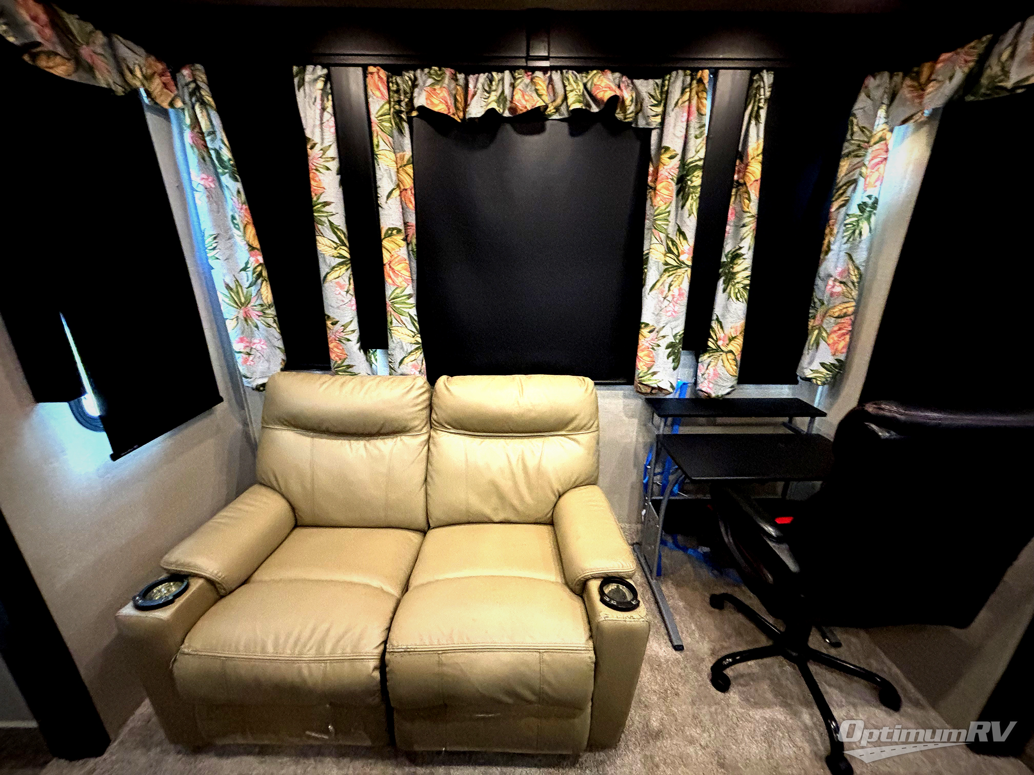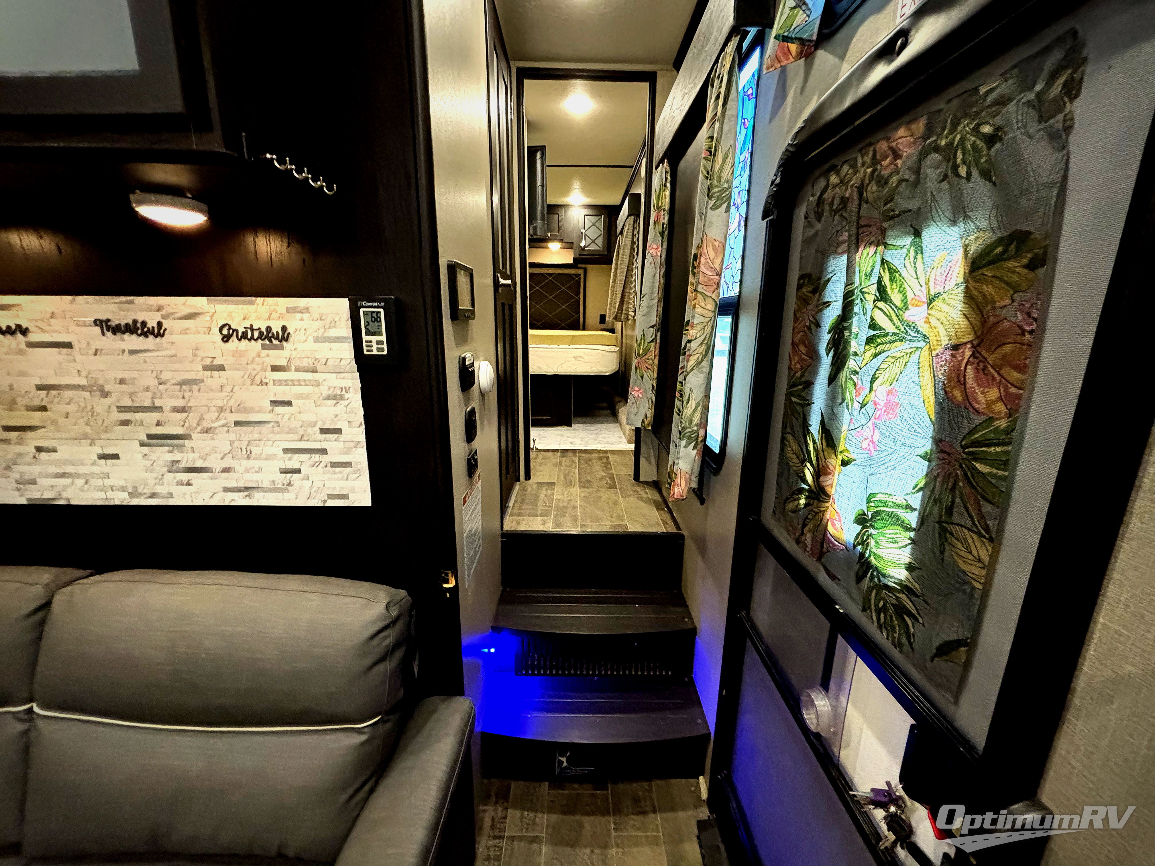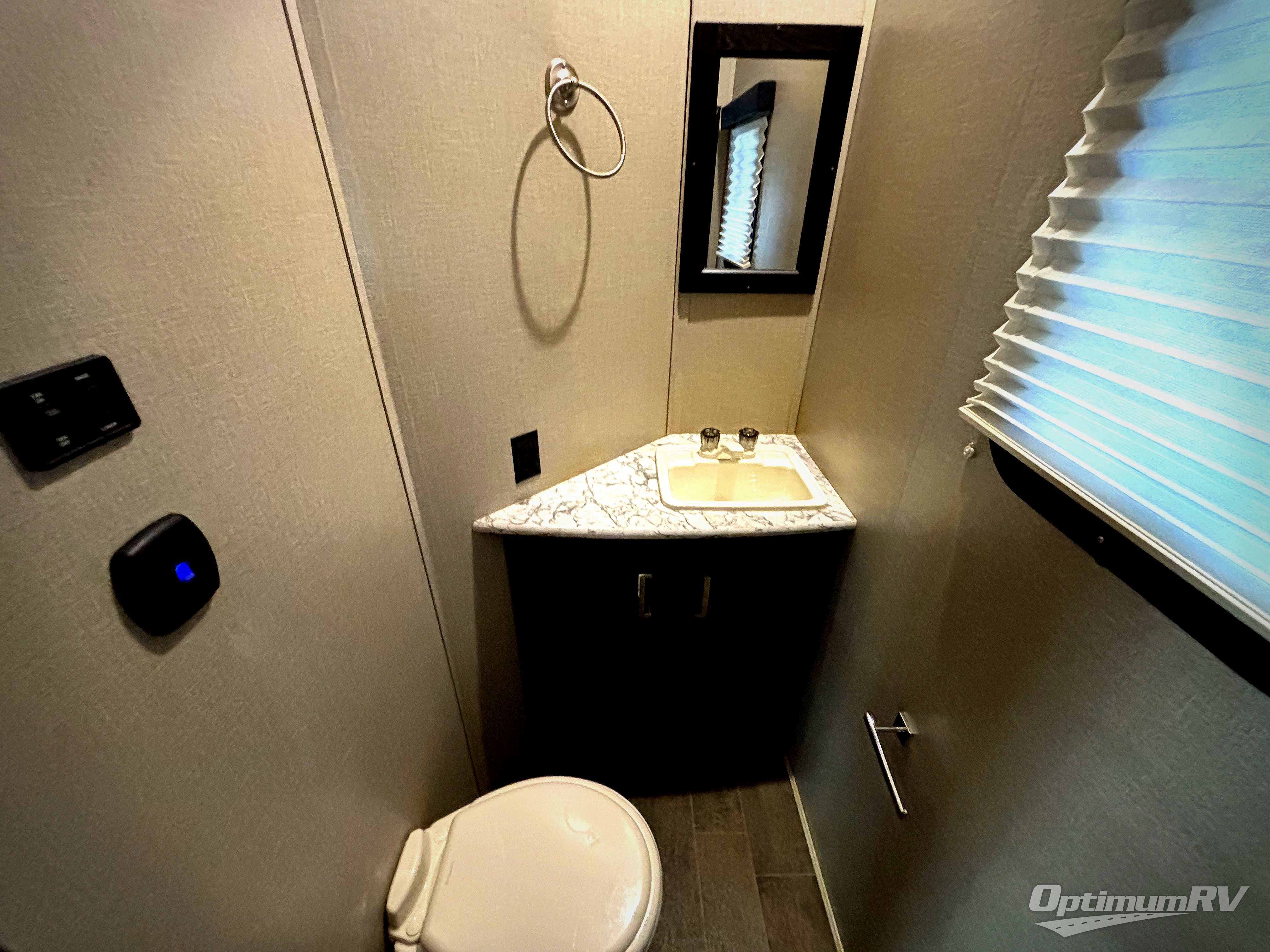 You will love the 8' rear ramp garage door for ease of loading your off-road toys. You will find in this garage area plenty of overhead cabinets for your gear, and a drop down top queen bed with dual opposing sofas in the rear cargo space for added sleeping and seating once things are unloaded at camp. There is also a loft in front, a space prepped for a washer and dryer if you choose to add, and a 40" LED TV. A convenient half bath is an added bonus so you can keep all the dirt and grime out of the main living quarters.