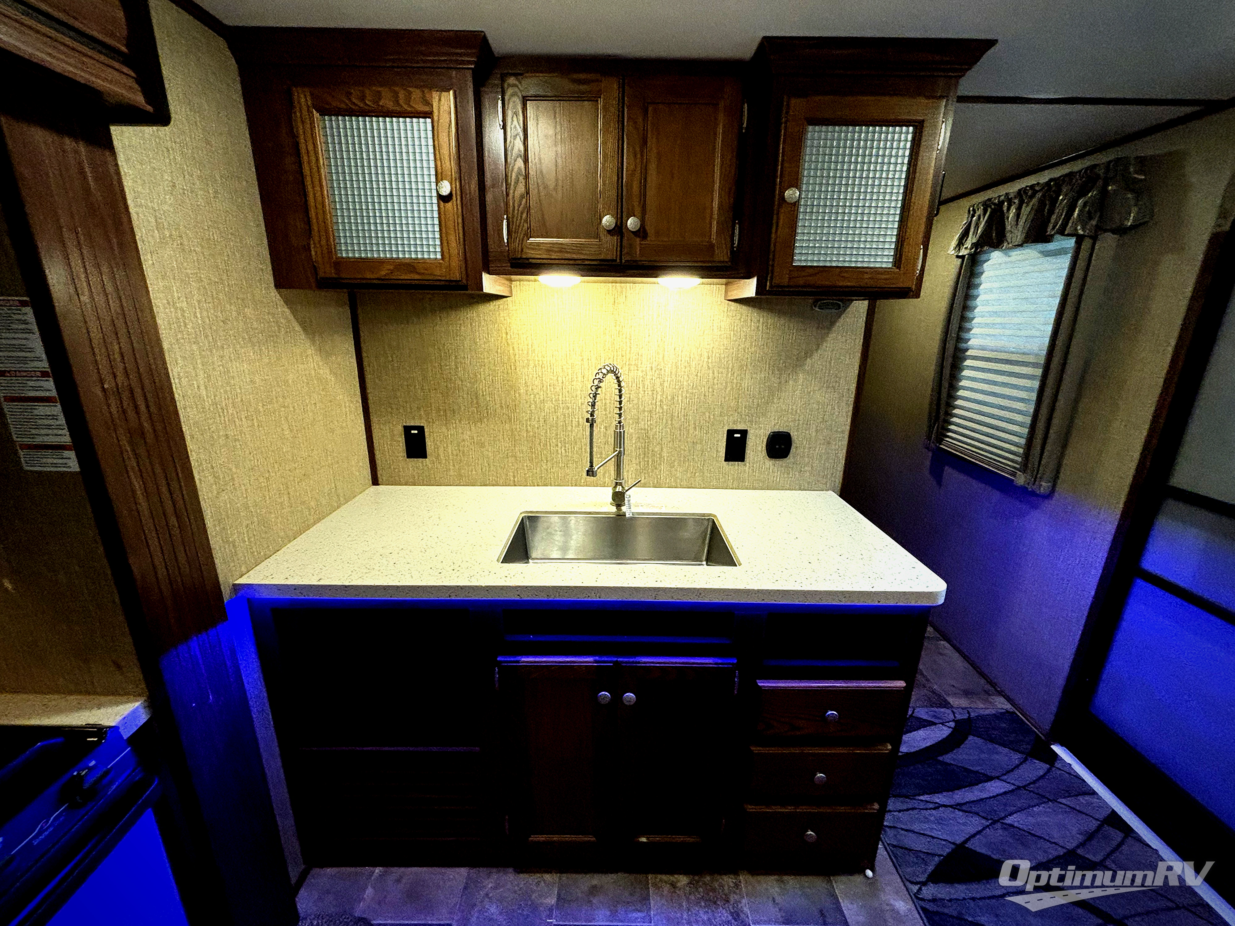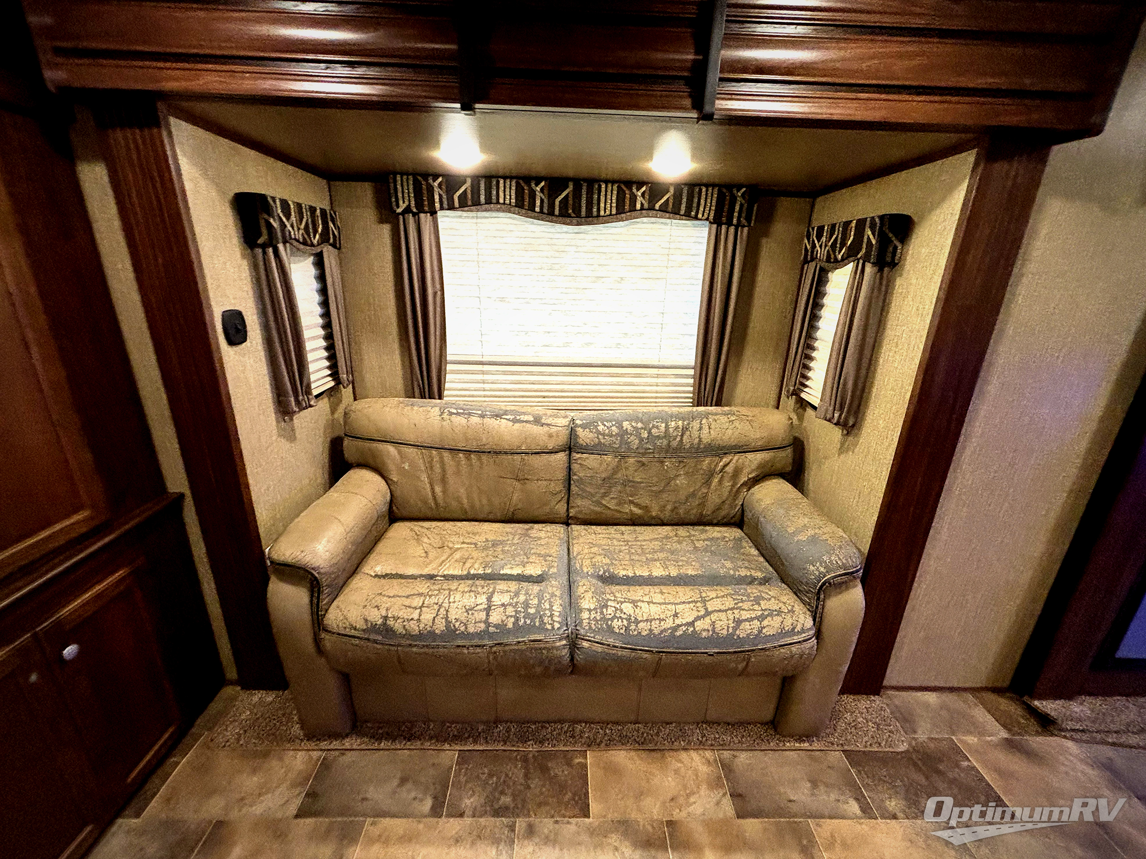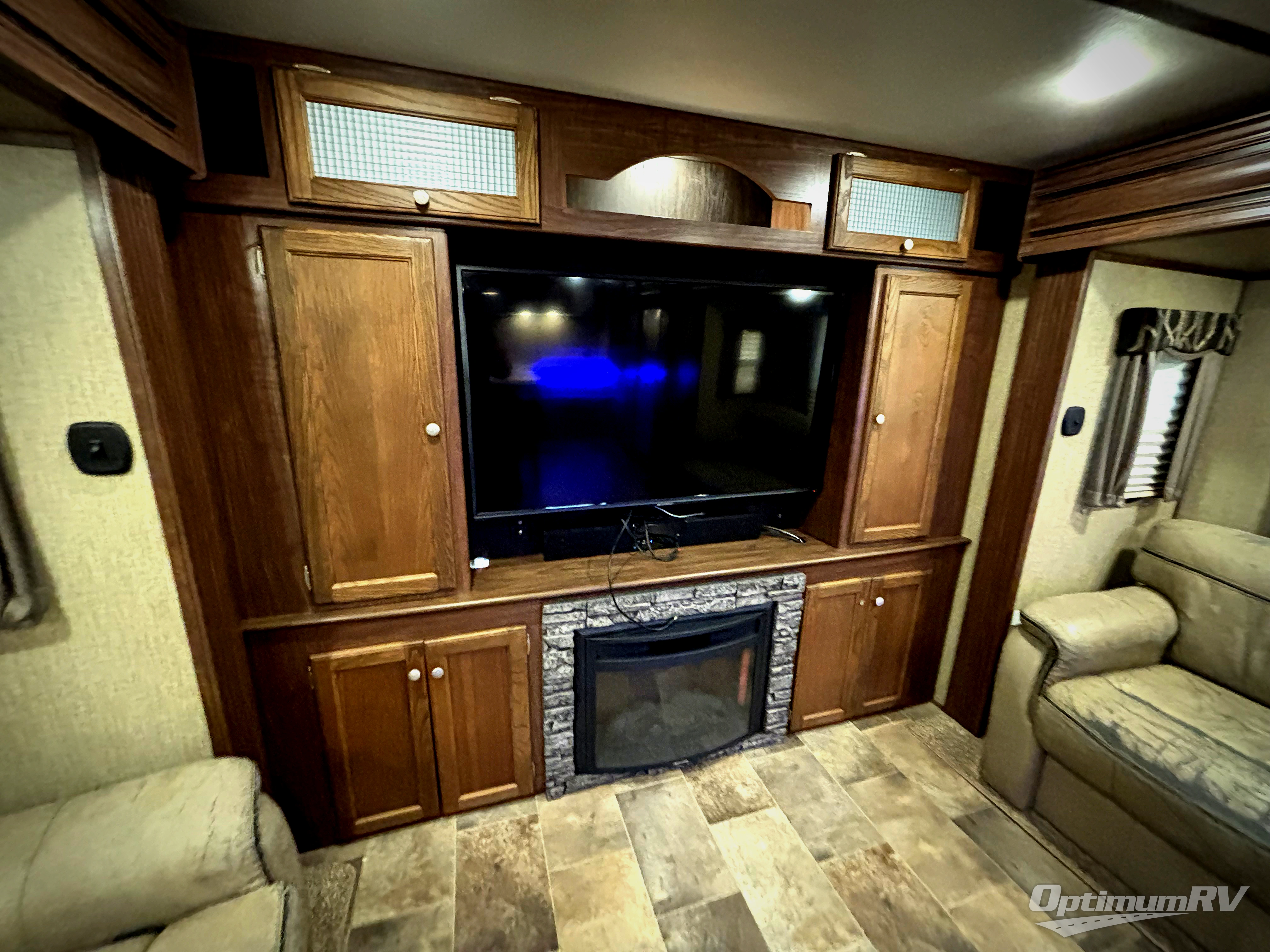 Enjoy the 55" HDTV and fireplace found along the rear living area wall, with dual opposing slides featuring a theatre seat for two along the road side, and a tri-fold sofa sleeper along the curb side. This makes it easy to all gather for conversation, or a maybe a TV show or movie that you enjoy.