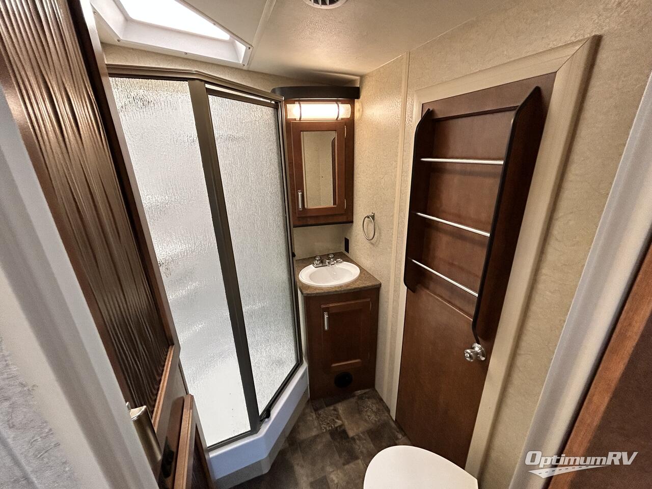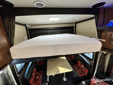 Head to the left at the entry door once inside and find a relaxing space with a jack-knife sofa bed and dinette table for meals. There is also storage above to keep your things tucked away and organized. Opposite the sofa find two swivel chairs with an end table between, and more overhead storage plus an entertainment center too.