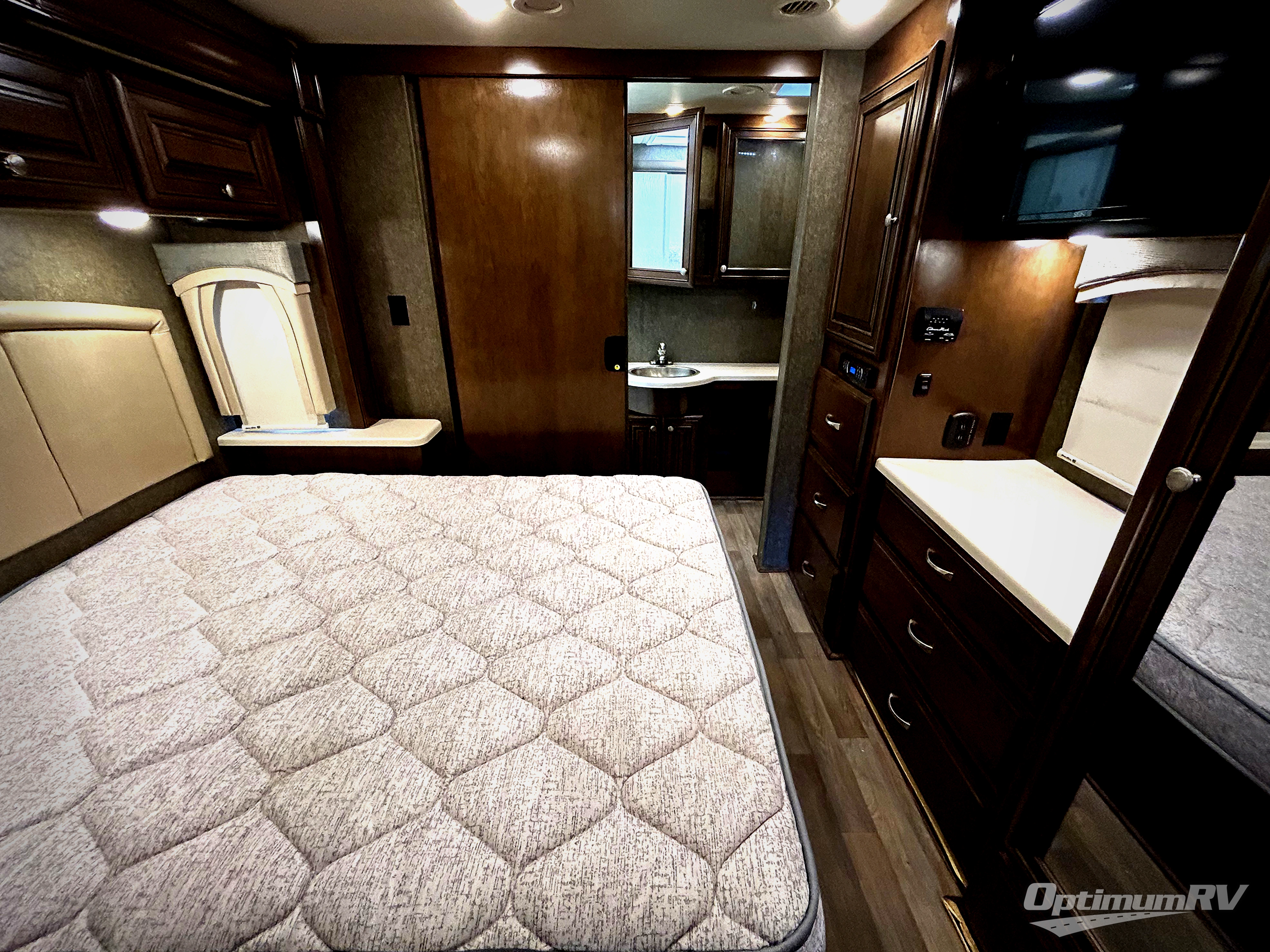 Next, find a queen bed slide with nightstands and dual closets with drawers between and a 32" LED TV.