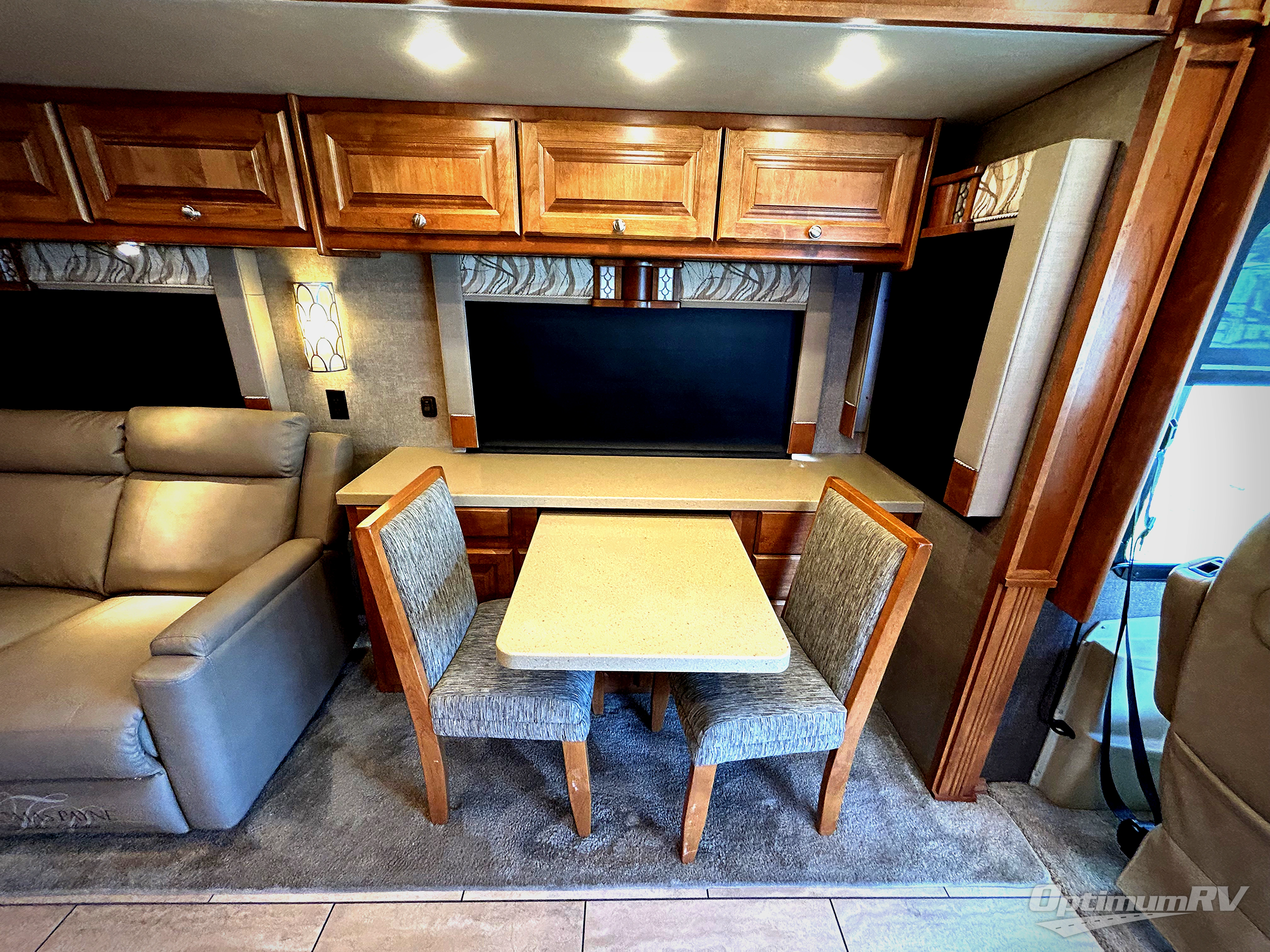 On the right side find a slide out booth dinette and sofa bed with overhead cabinet. You can even choose to have an optional dinette with computer station and a L-shaped chaise sofa bed with coffee table. A standard TV is mounted along the outer bathroom wall for perfect viewing from any seating in the room, also you can add an optional fireplace for those chilly evenings!