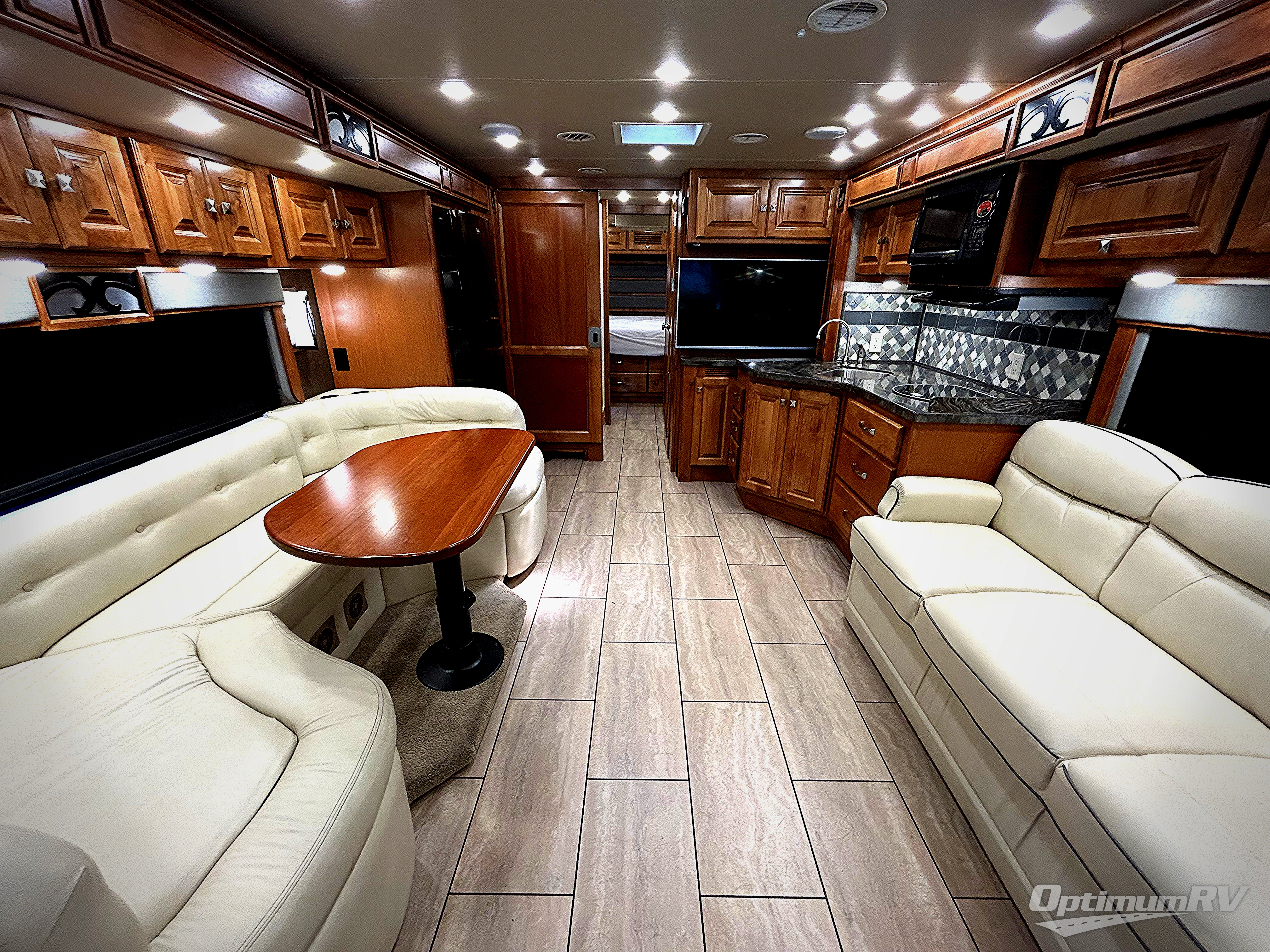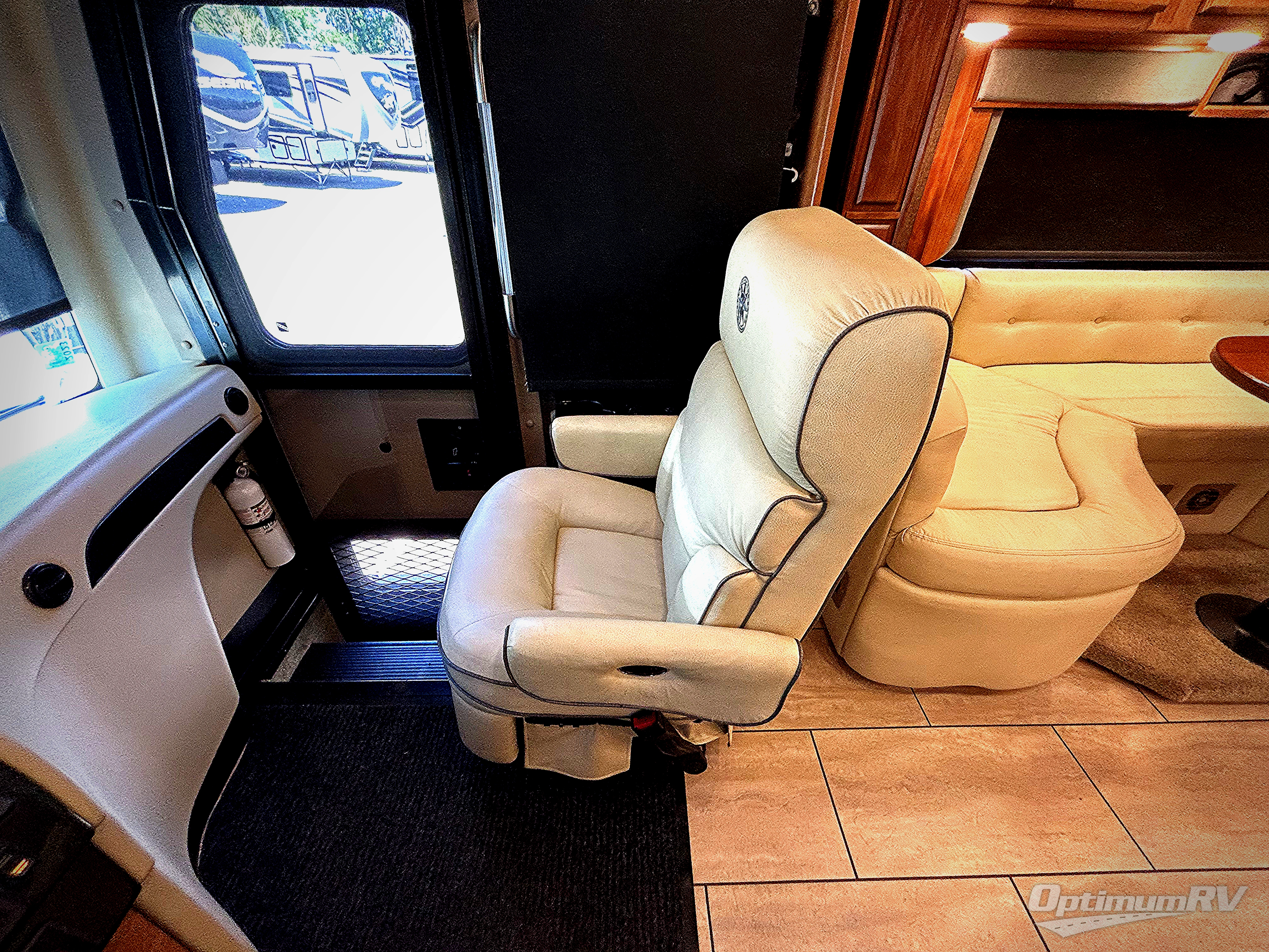 Step into the front entry to find two captain's chairs, overhead cabinets, and an optional TV at the center front.