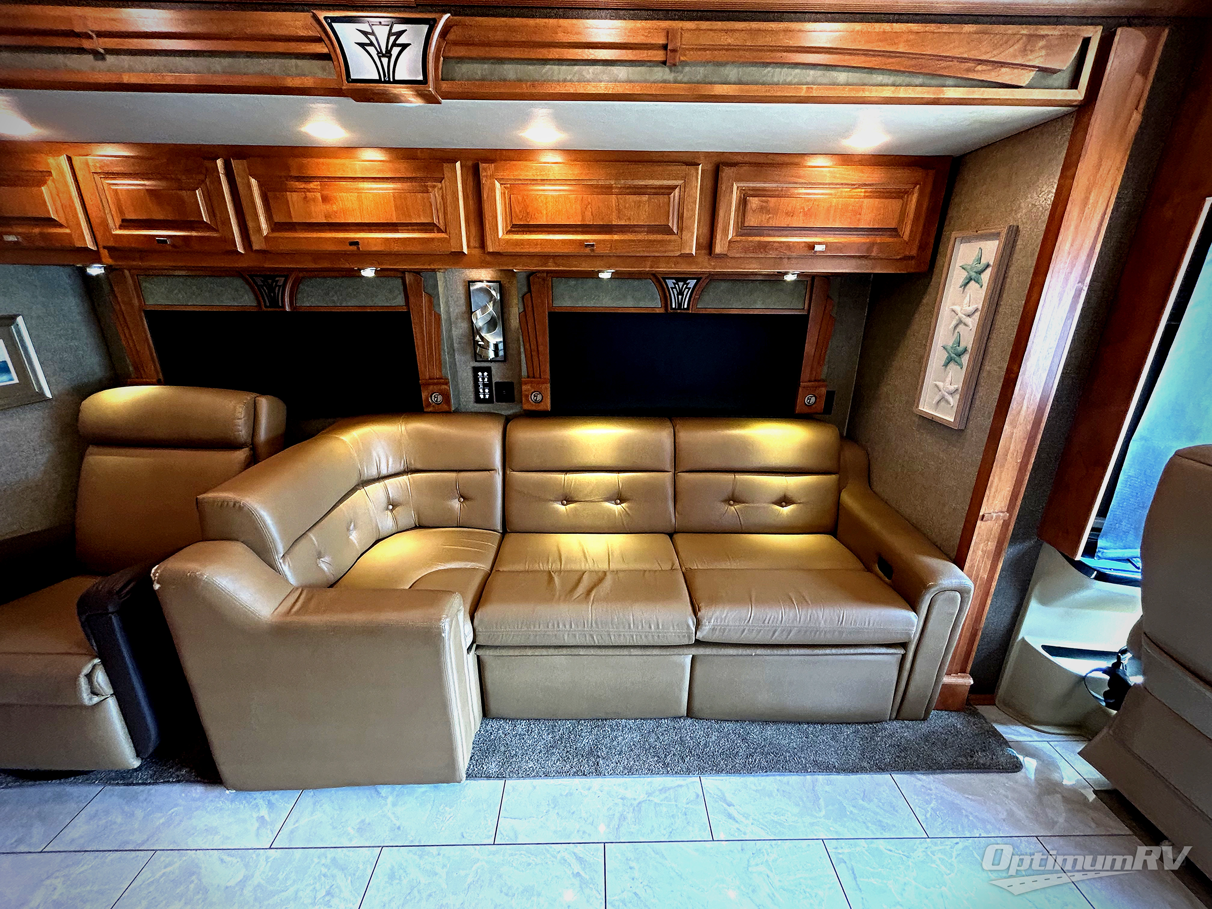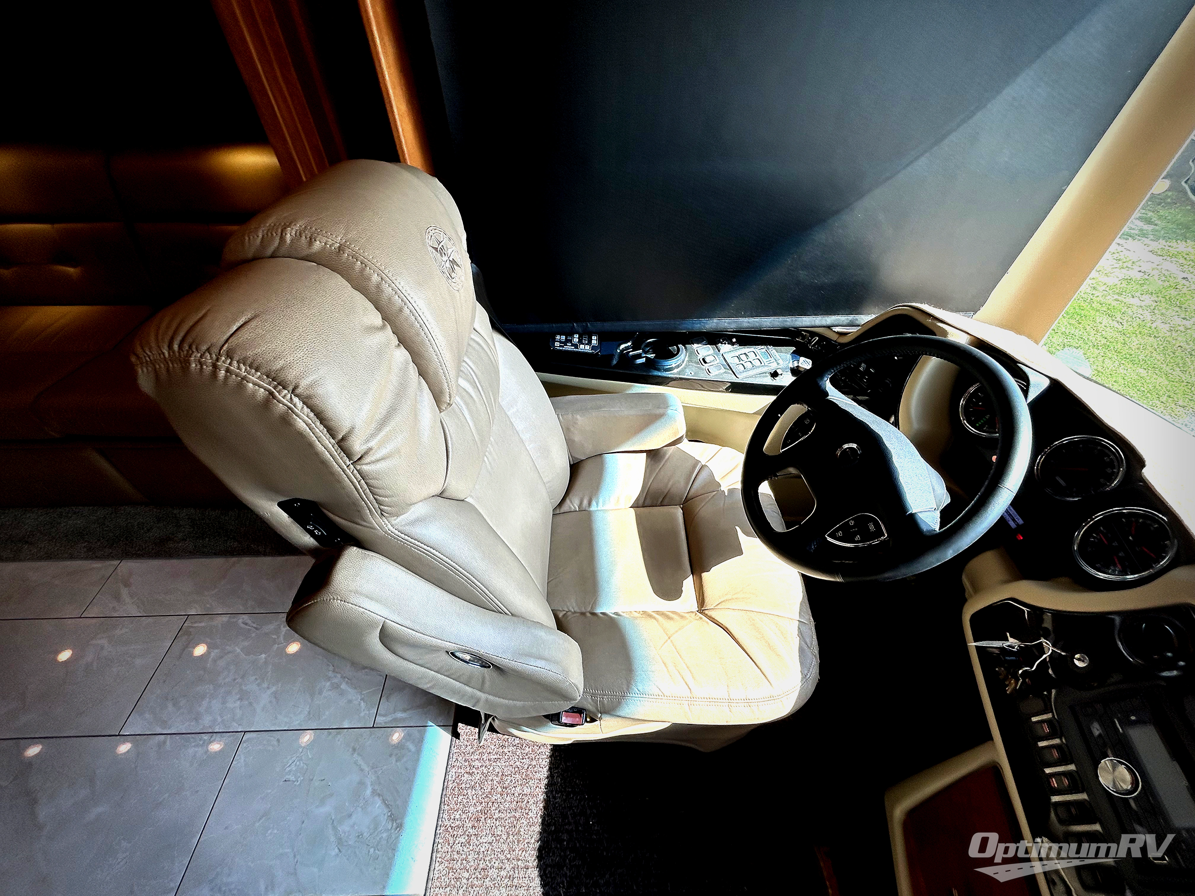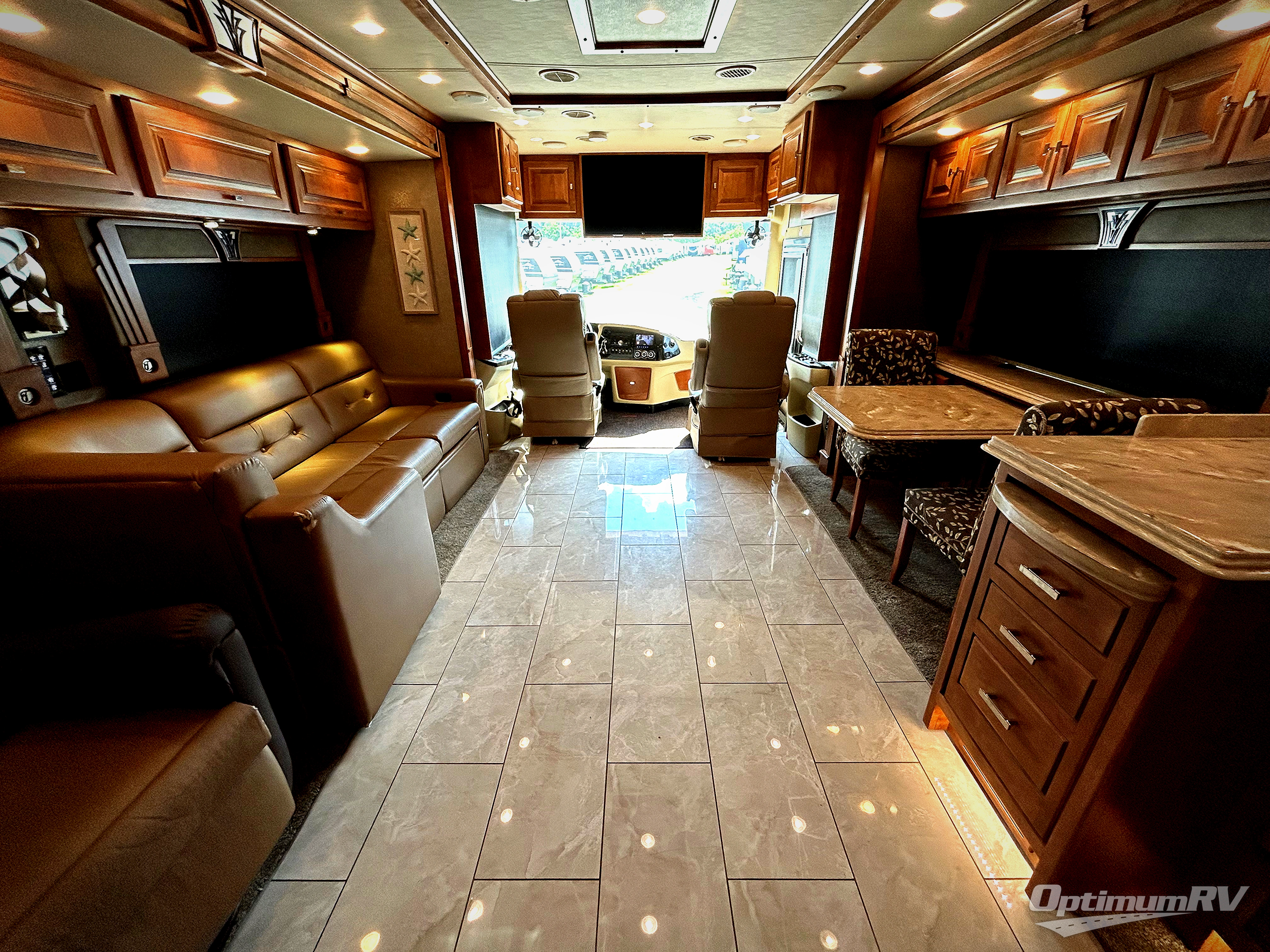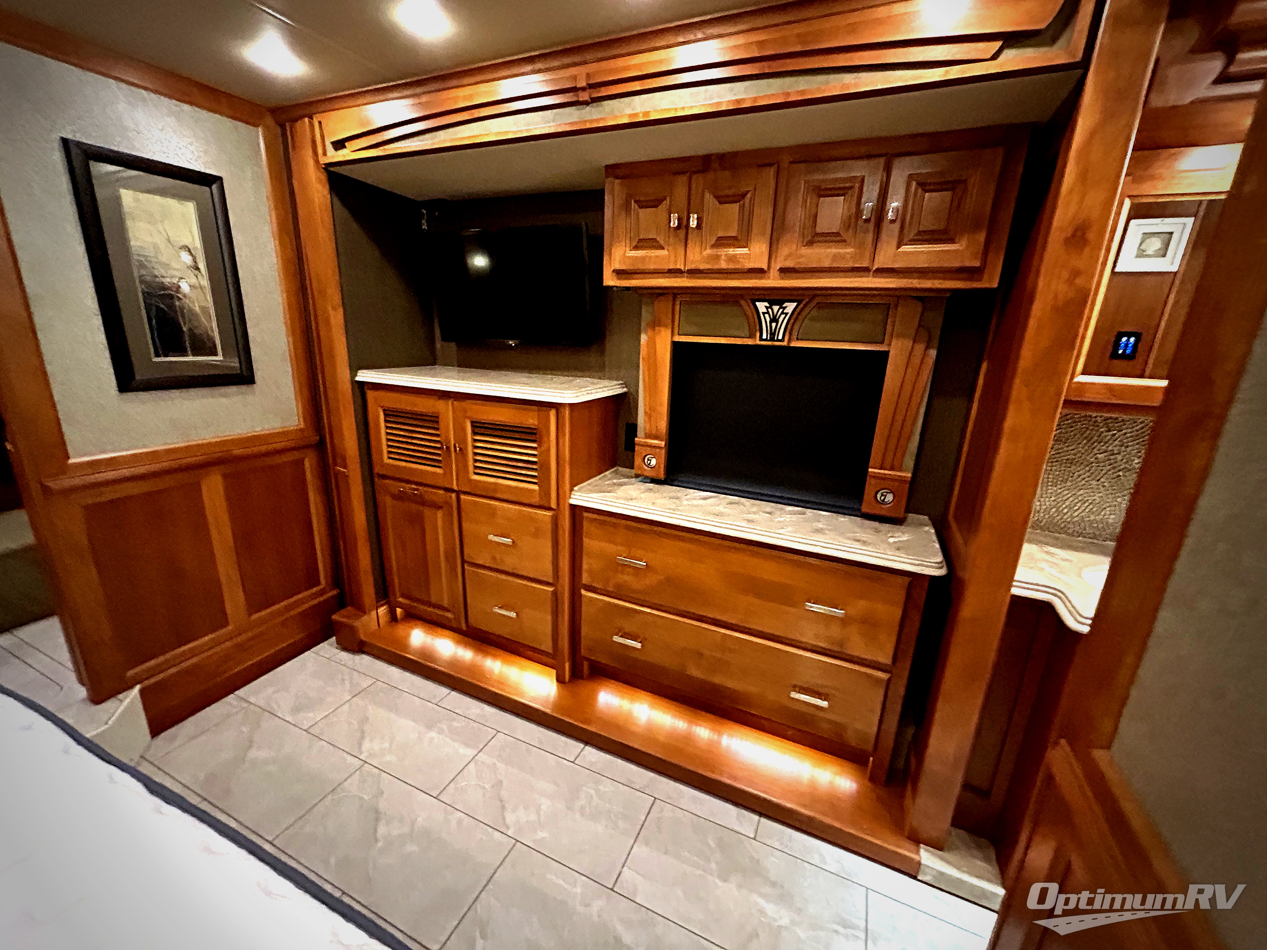 A large road side slide has a chair and sofa bed, or you can choose an optional L-shaped chaise sofa bed. Adjacent to the slide out along the interior wall there is a TV and an optional fireplace.