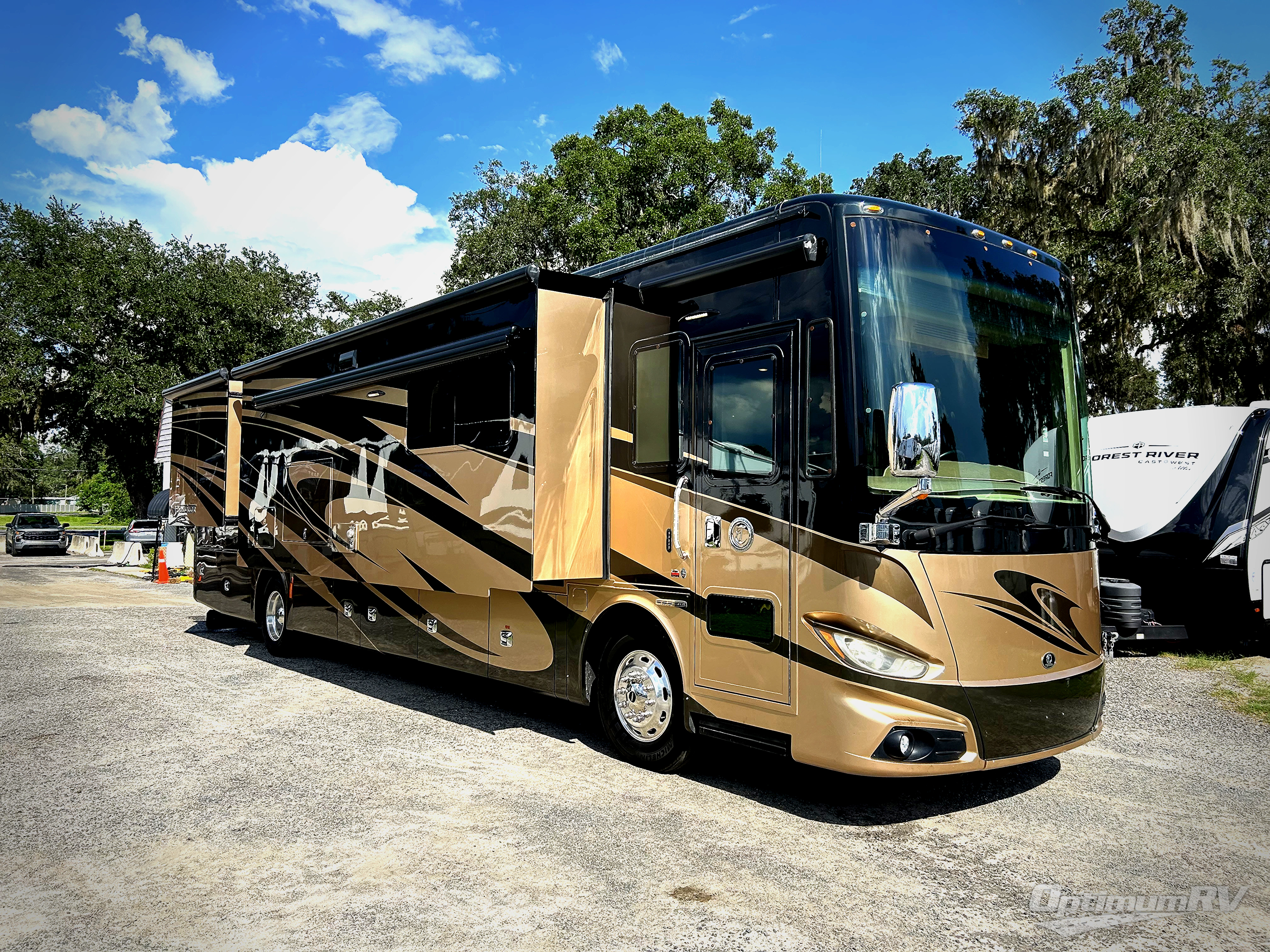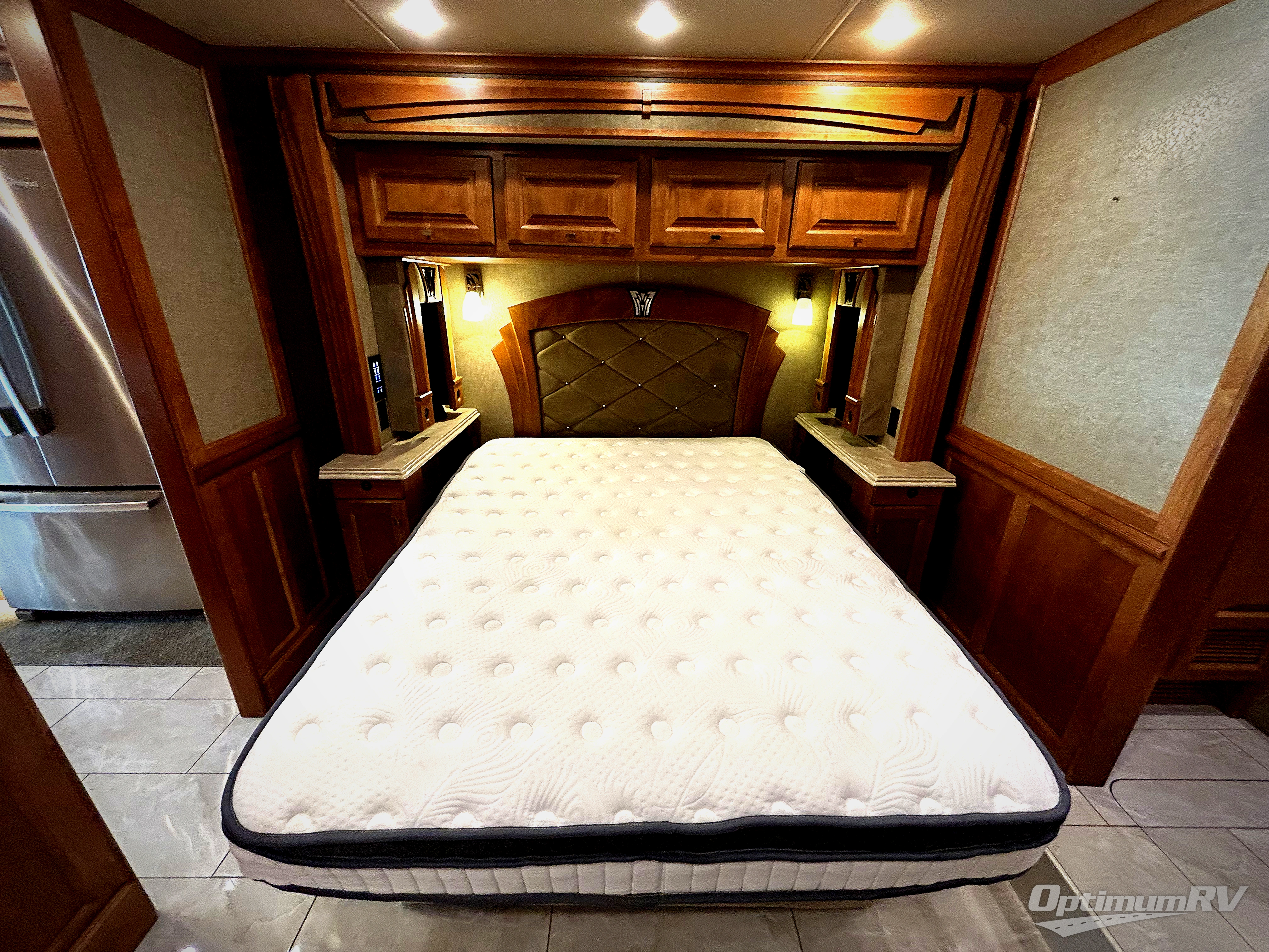 This Phaeton 40 AH from Tiffin Motorhomes offers a huge master suite with a walk in wardrobe area, and his and her sinks in the bath.