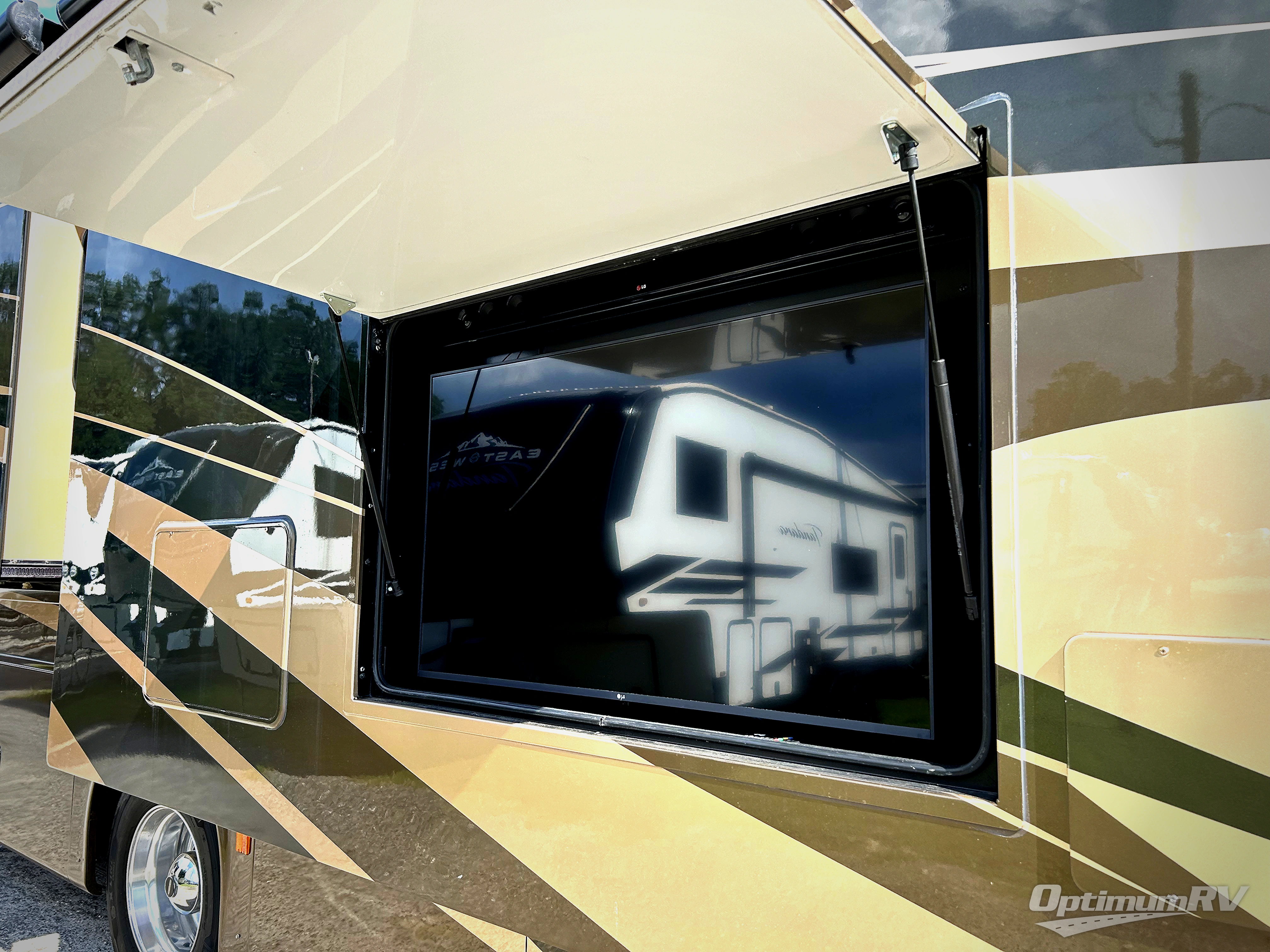 Moving down the curb side, another larger slide out has a booth dinette, overhead cabinets, counters, an optional drawer type dishwasher, a range, overhead convection microwave, double kitchen sink, residential refrigerator and pantry. Enjoy the exterior TV, and you can choose a few options on the interior such as a u-shaped dinette or an optional dinette with computer workstation, and more!