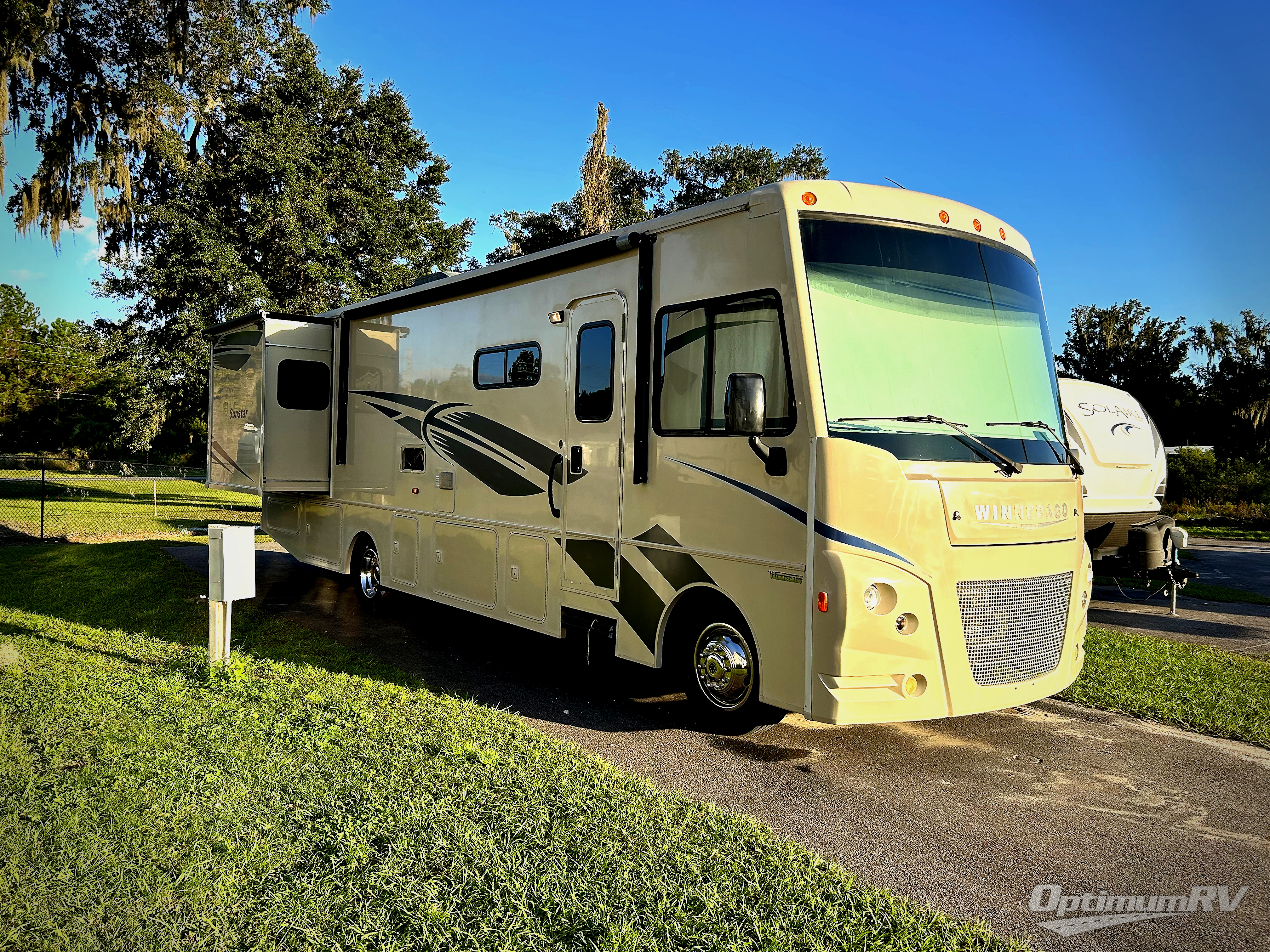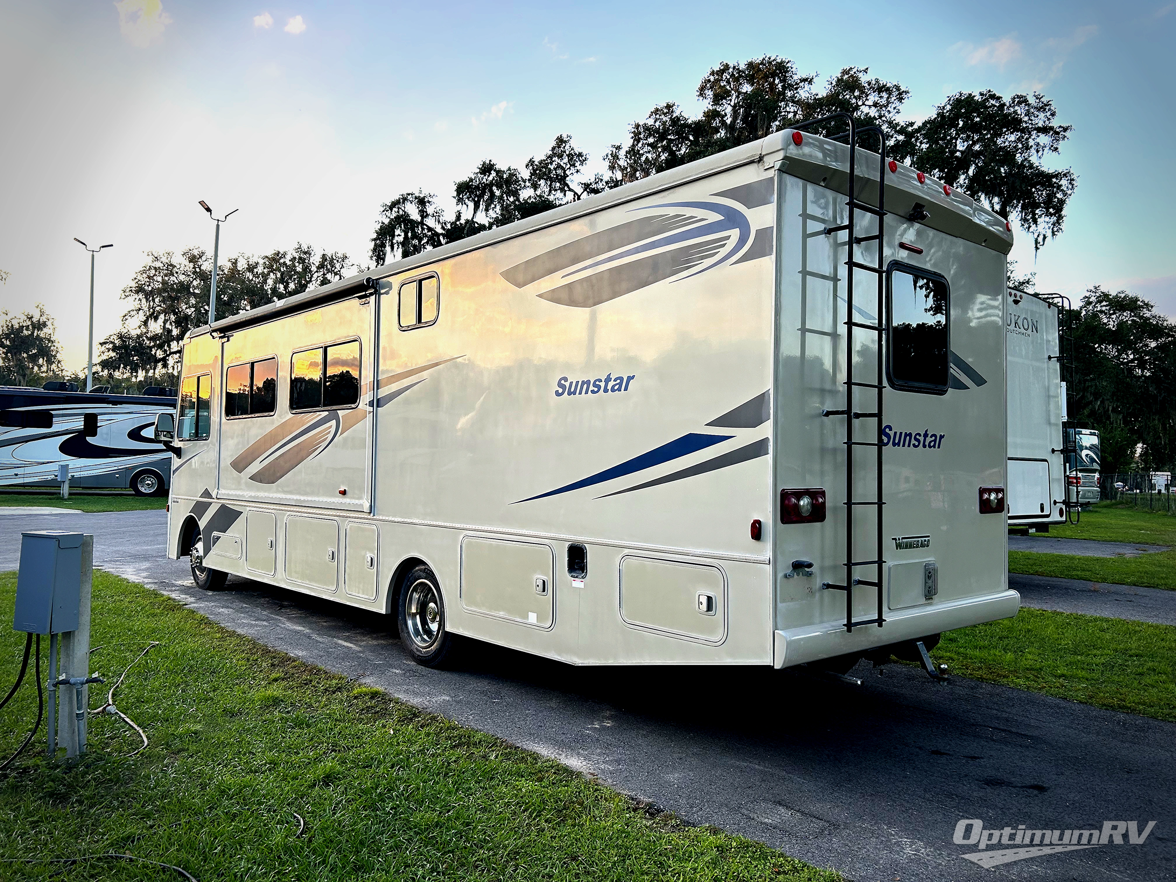 You will love traveling in this Winnebago Sunstar class A gas coach! Model 32YE offers a spacious seating area up front, two nice slides, a private master bedroom, and all of the necessities that make travel time comfortable and convenient!