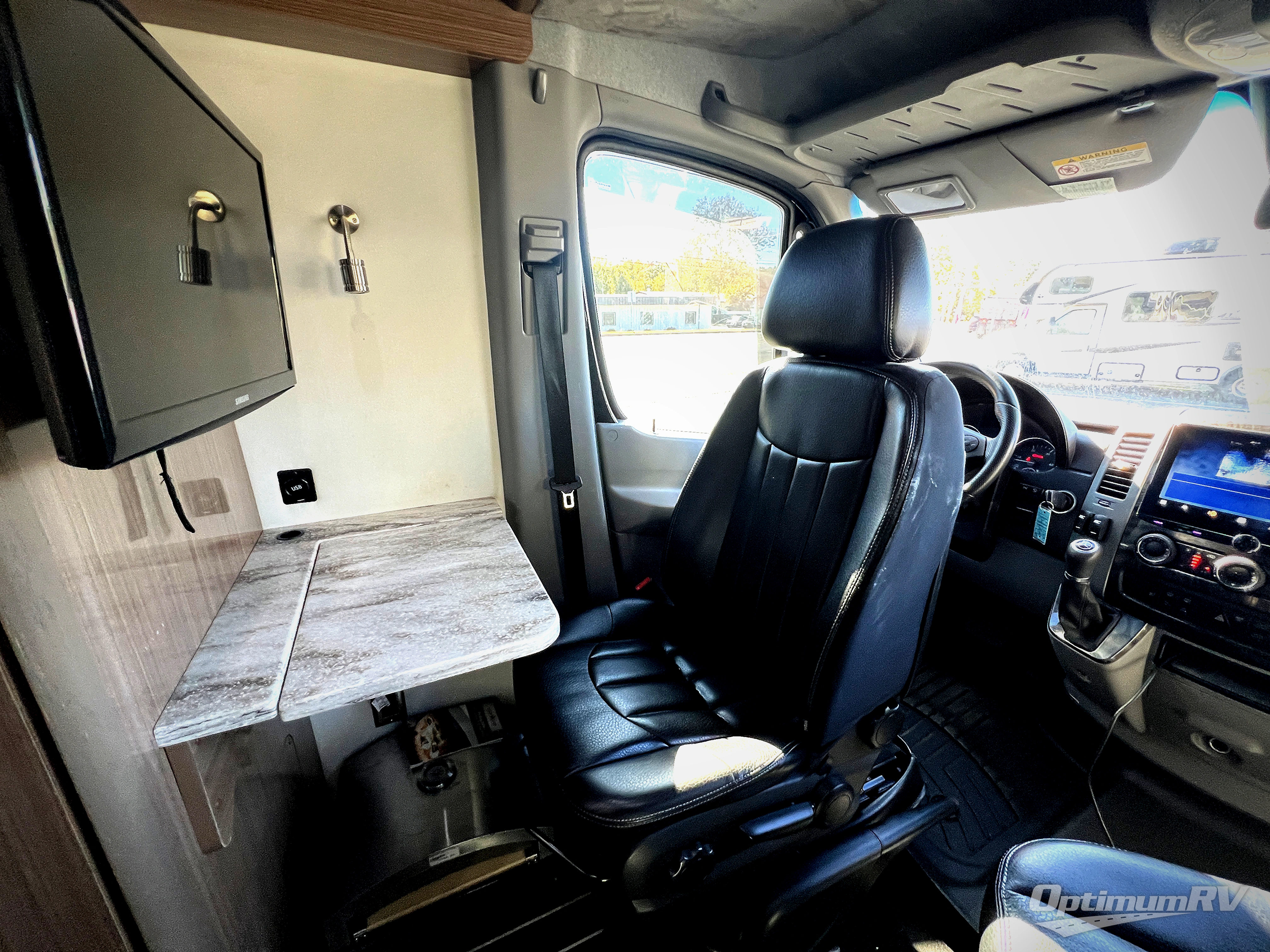 Step inside and find a convenient conversation area with the driver and passenger seats swiveled around. There is a removable table between the driver and passenger seat which allows for ease while eating or easy ability to play a game. Behind the driver's seat there is a work station and an LED TV.