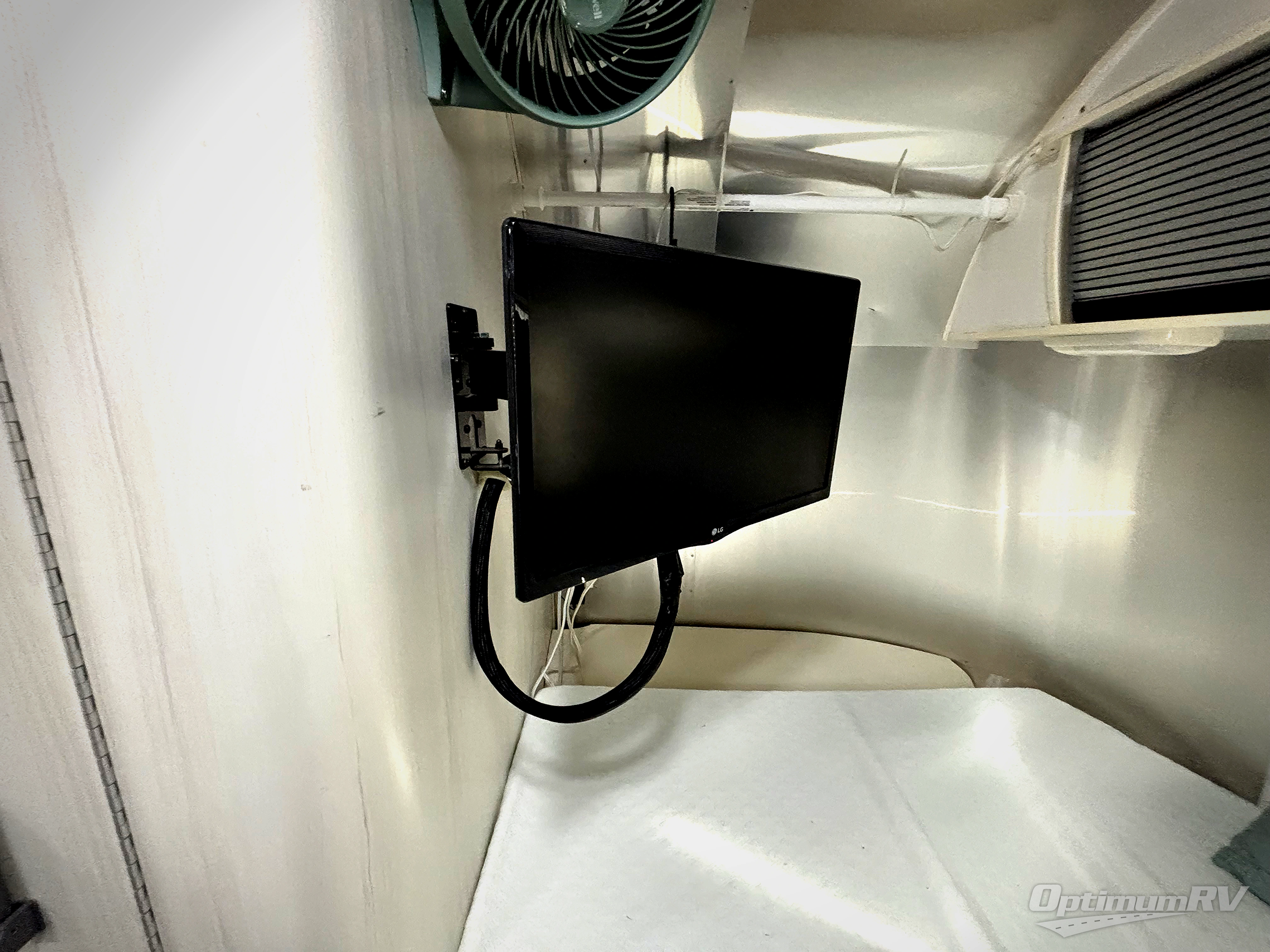 Next to the sink you will find a closet, and in the rear there is a 48" x 78" bed with hampers on either side. Along the outer wall of the wet bath there is a LED TV for your inside enjoyment.