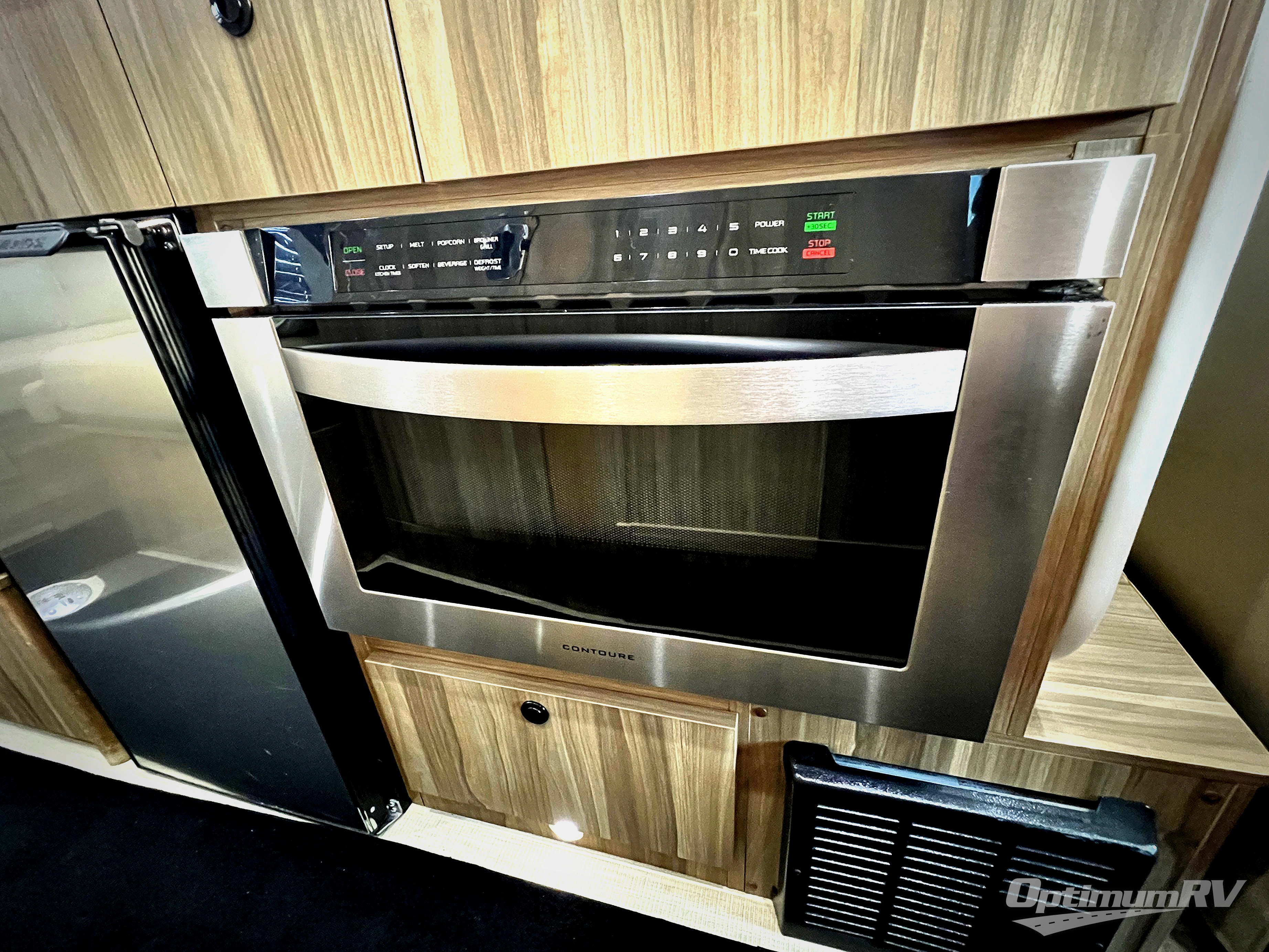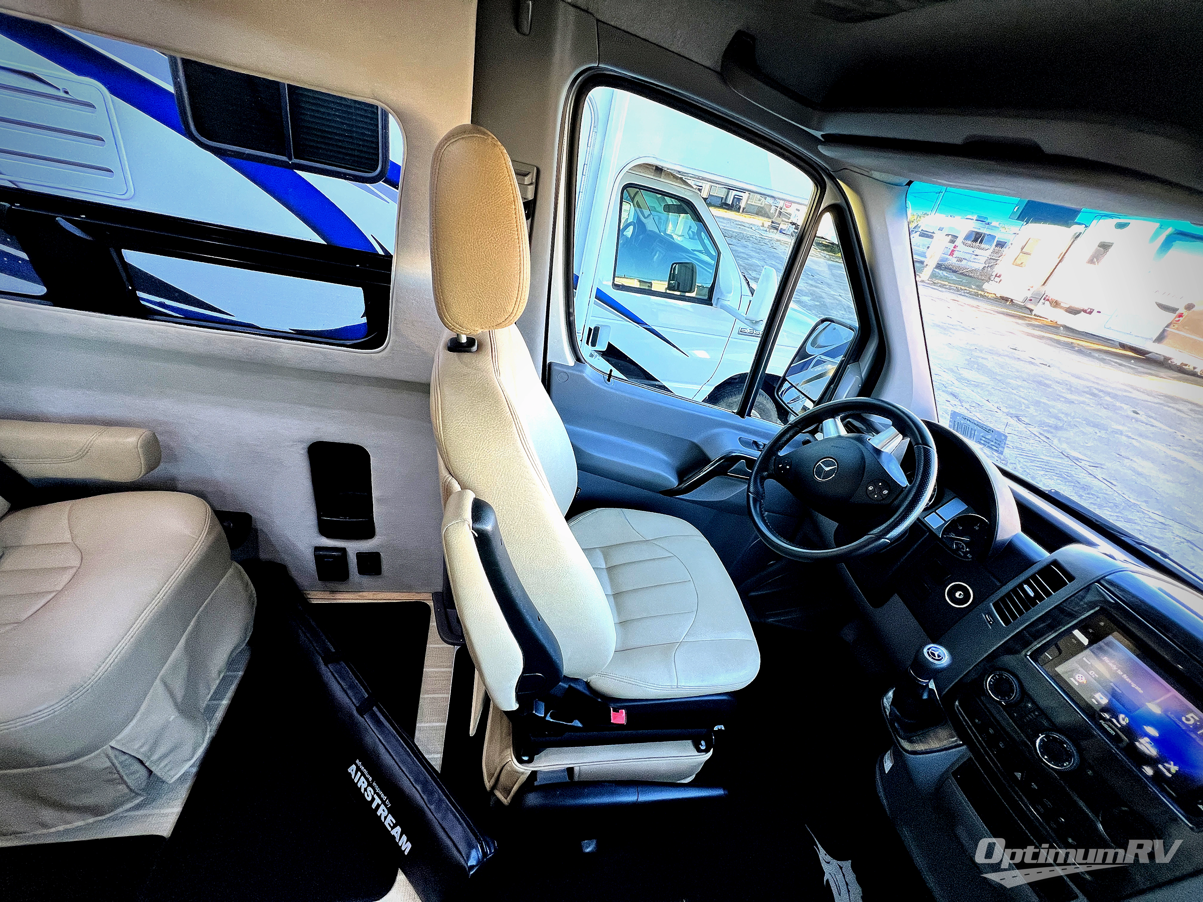 Step inside to find a comfortable space to gather with four captain chairs. The driver and passenger seats swivel around to become part of the living space in back. There is a removable table that can be placed in the center when needed making this a great place to enjoy with family and friends. There is also an LED TV up front as well.