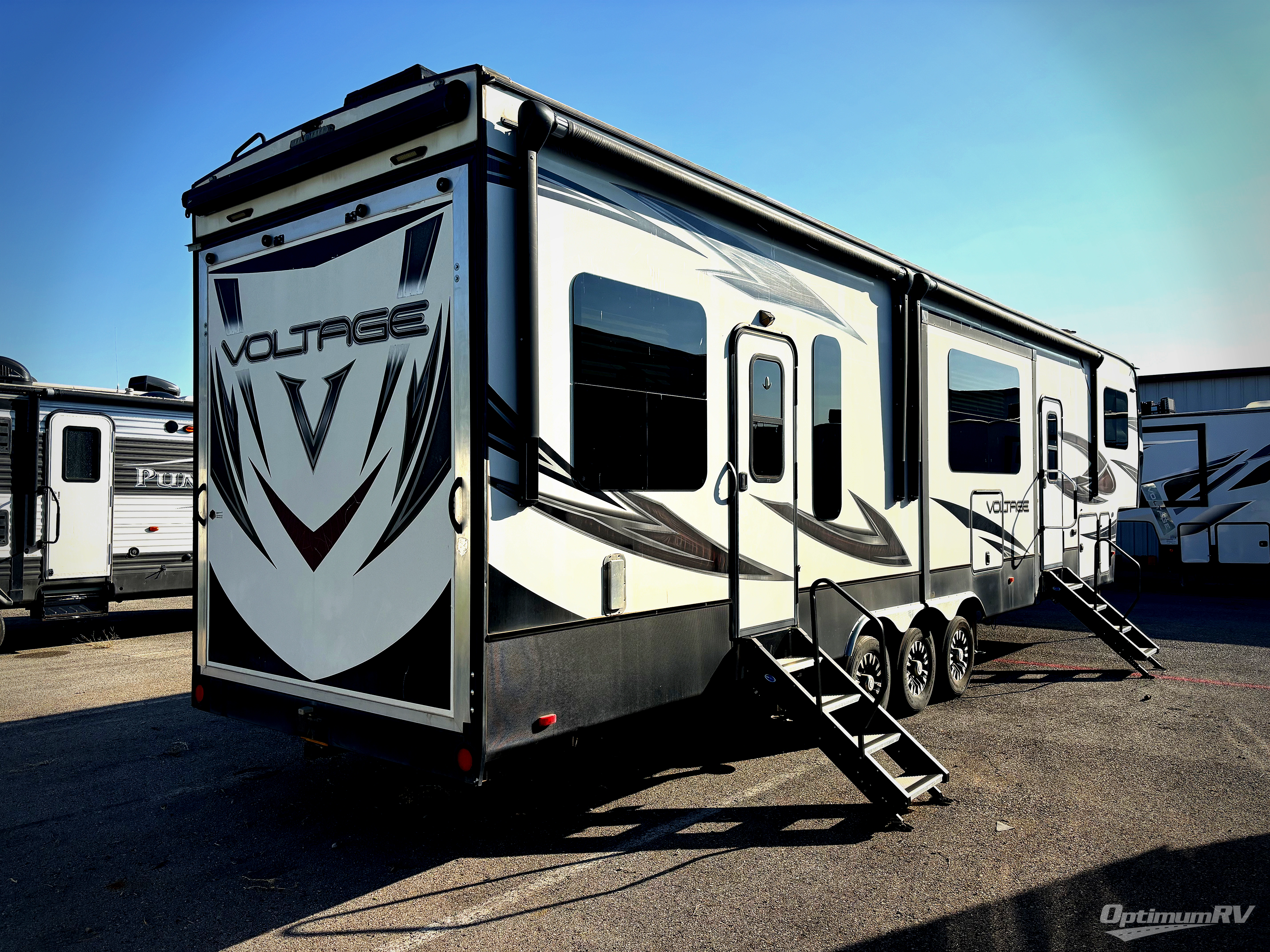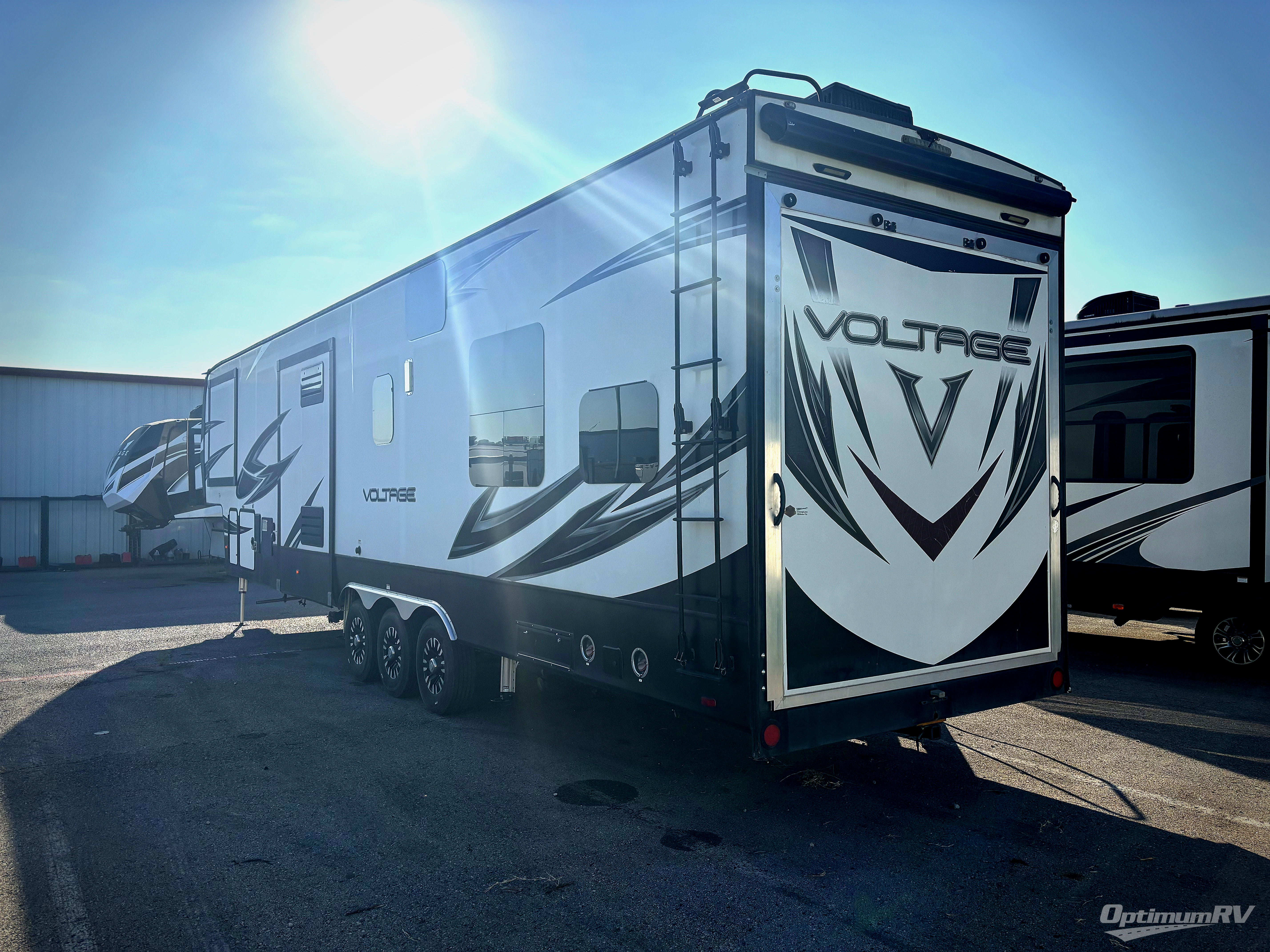 You can easily take along the whole gang when you have this Voltage FW toy hauler by Dutchmen RV hitched up and ready to go. You don't even have to have outdoor toys, just enjoy the extra space for camping gear, and more family members and friends tagging along! The 14' garage area easily sleeps five with the drop down electric lay-flat power Happy-Jack bunks with lower sofas and a loft that the kids will certainly want to draw straws for. There will also be no waiting to use the bathroom with the added half bath in the garage. This is also quite handy when your big and little guests come in all dirty from playing outside so they don't track dirt and grime all through the main living area inside. When it's time to feed your hungry crew you will be happy to do so with a three burner range and microwave oven, plus an 18 cu. ft. refrigerator, ample storage and food prep space, and a double sink for cleaning up. In the evening, when you are done enjoying the outside, curl up with a good book and enjoy the warmth from the electric fireplace in the living area under efficient LED lighting, plus so much more!