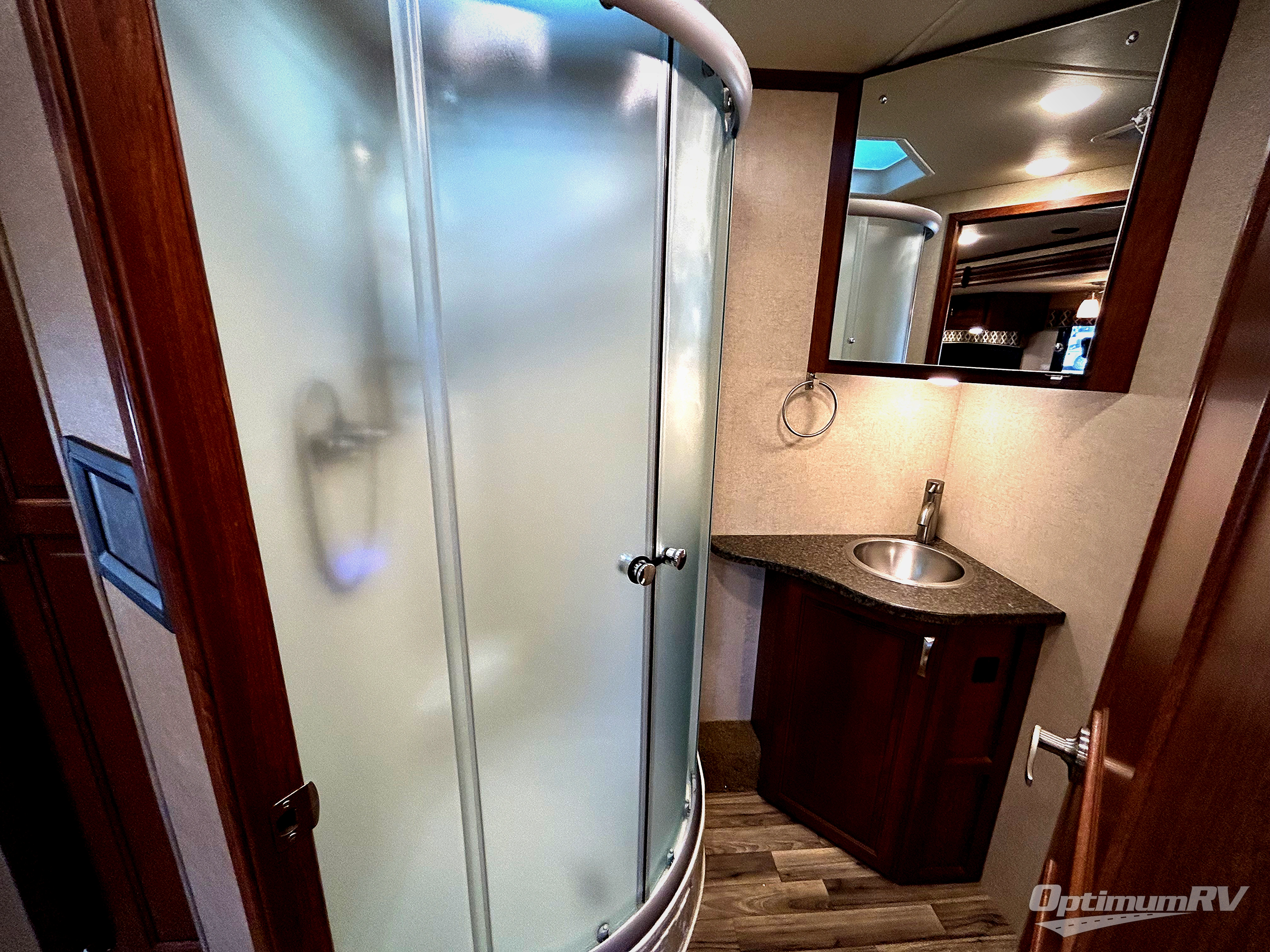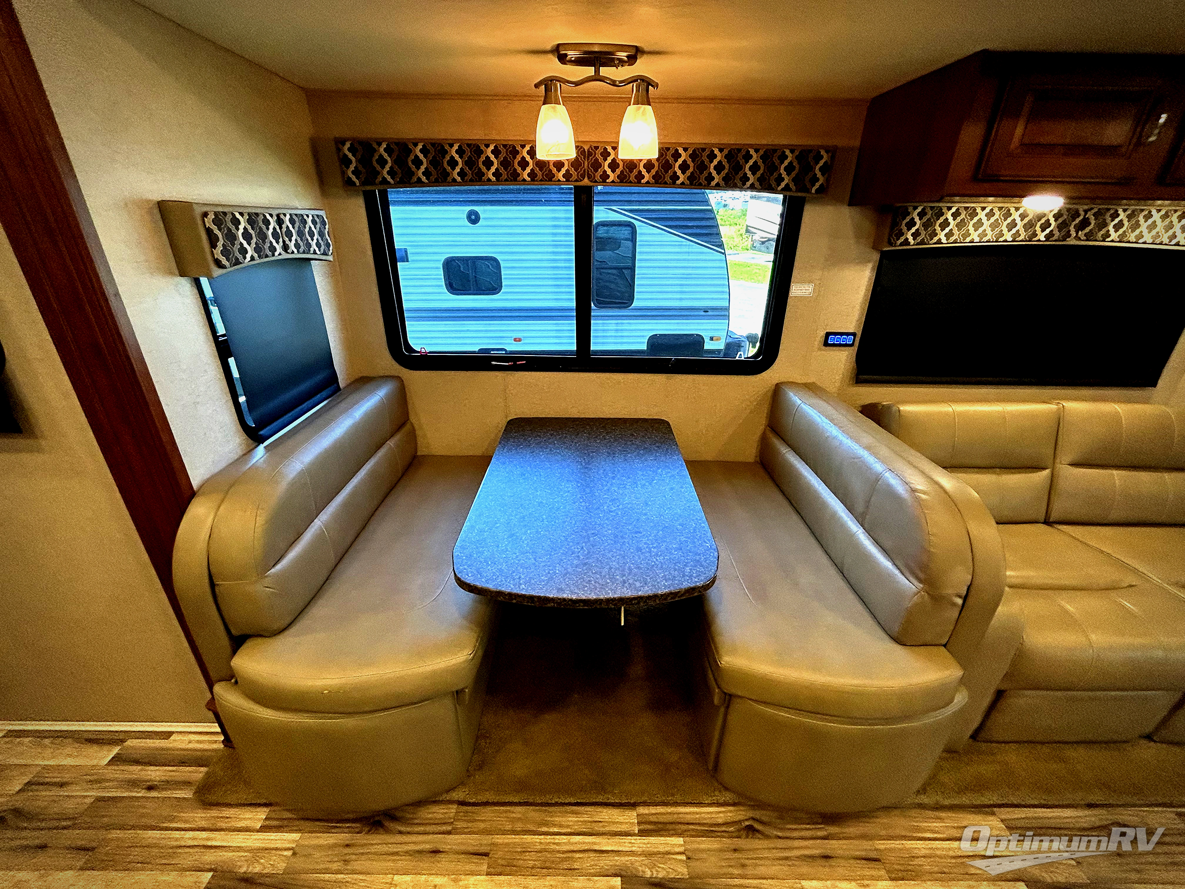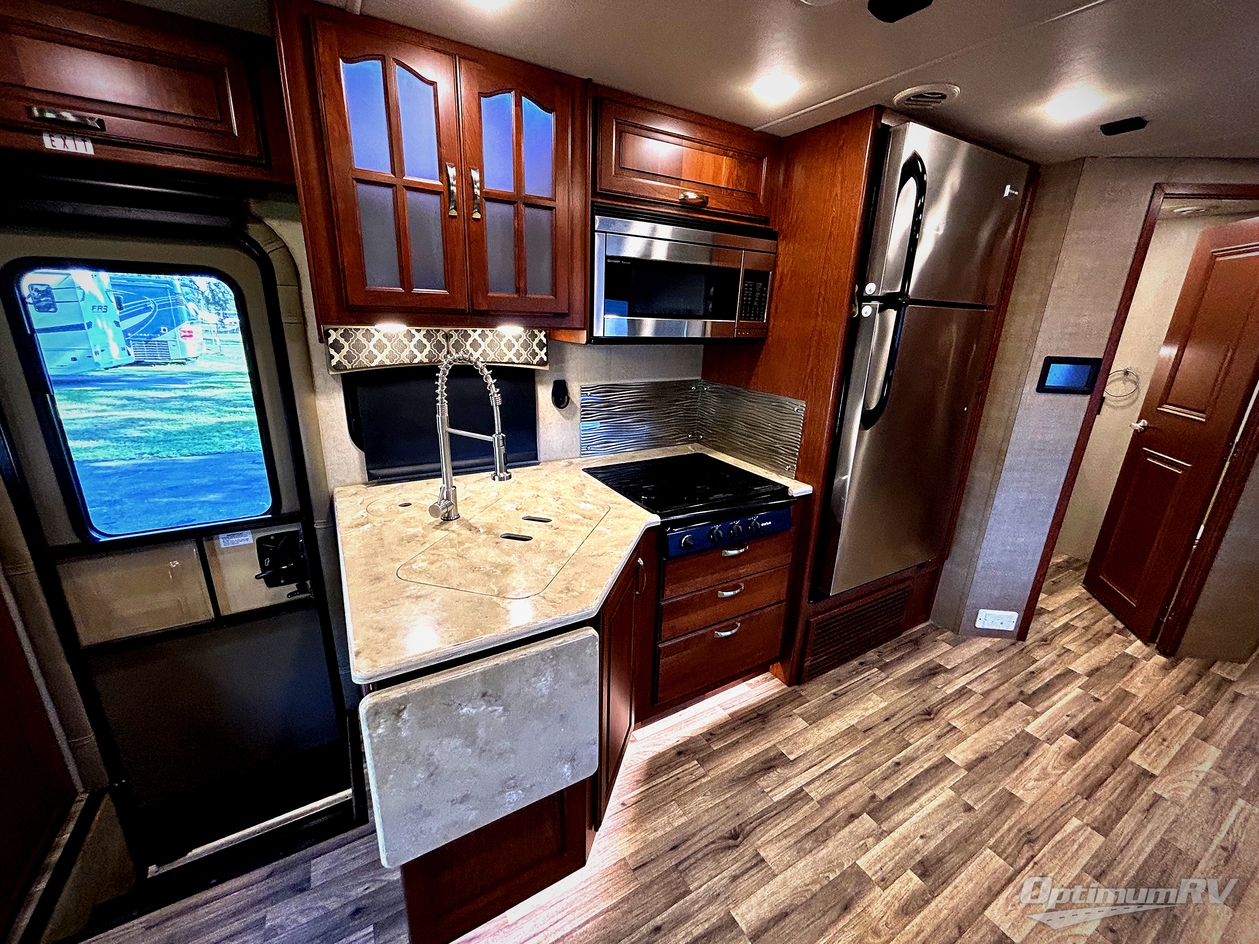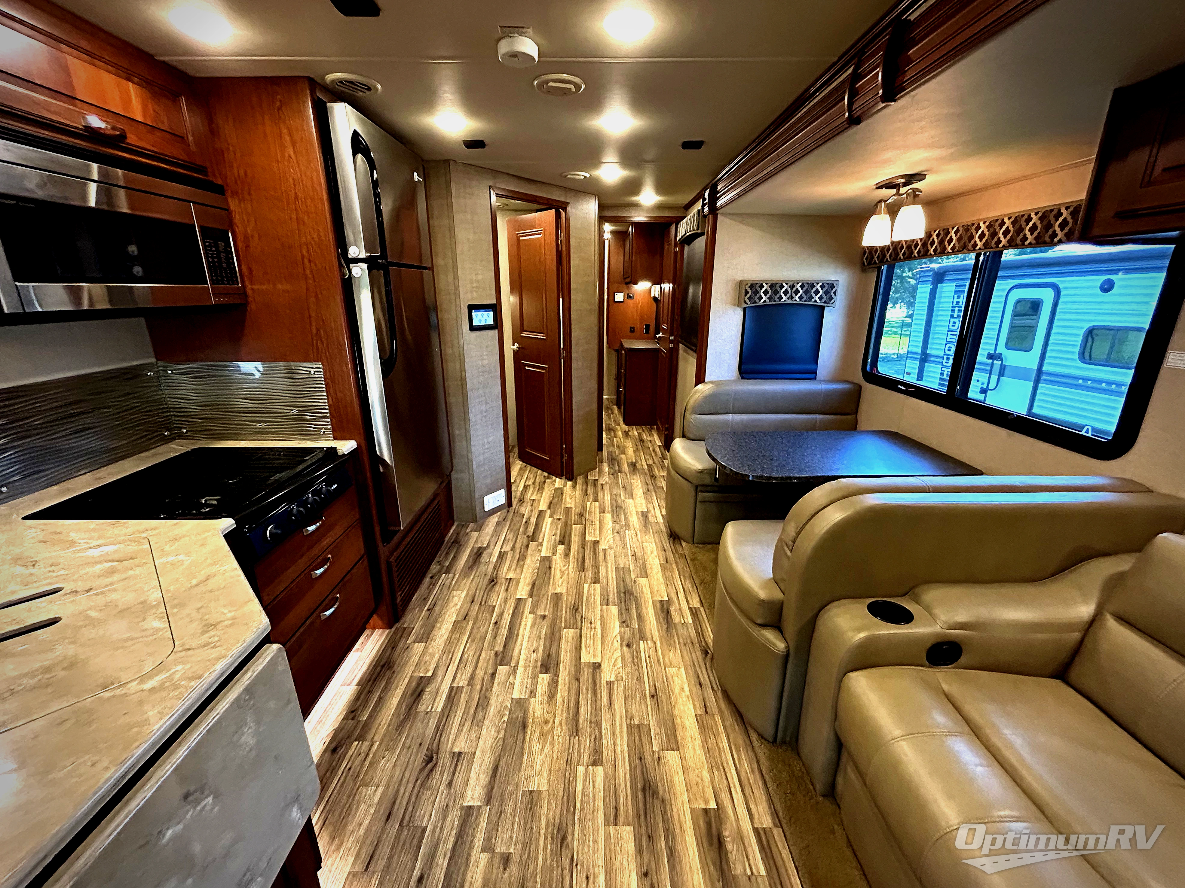 As you enter the motor home prepare to be wowed by the space and beauty! Along the curbside there is a counter extension, double kitchen sink, three burner range, refrigerator, and a pantry. On the opposite side of the motor home find a slide out with a sofa which makes into a bed, a dinette, and an overhead cabinet.