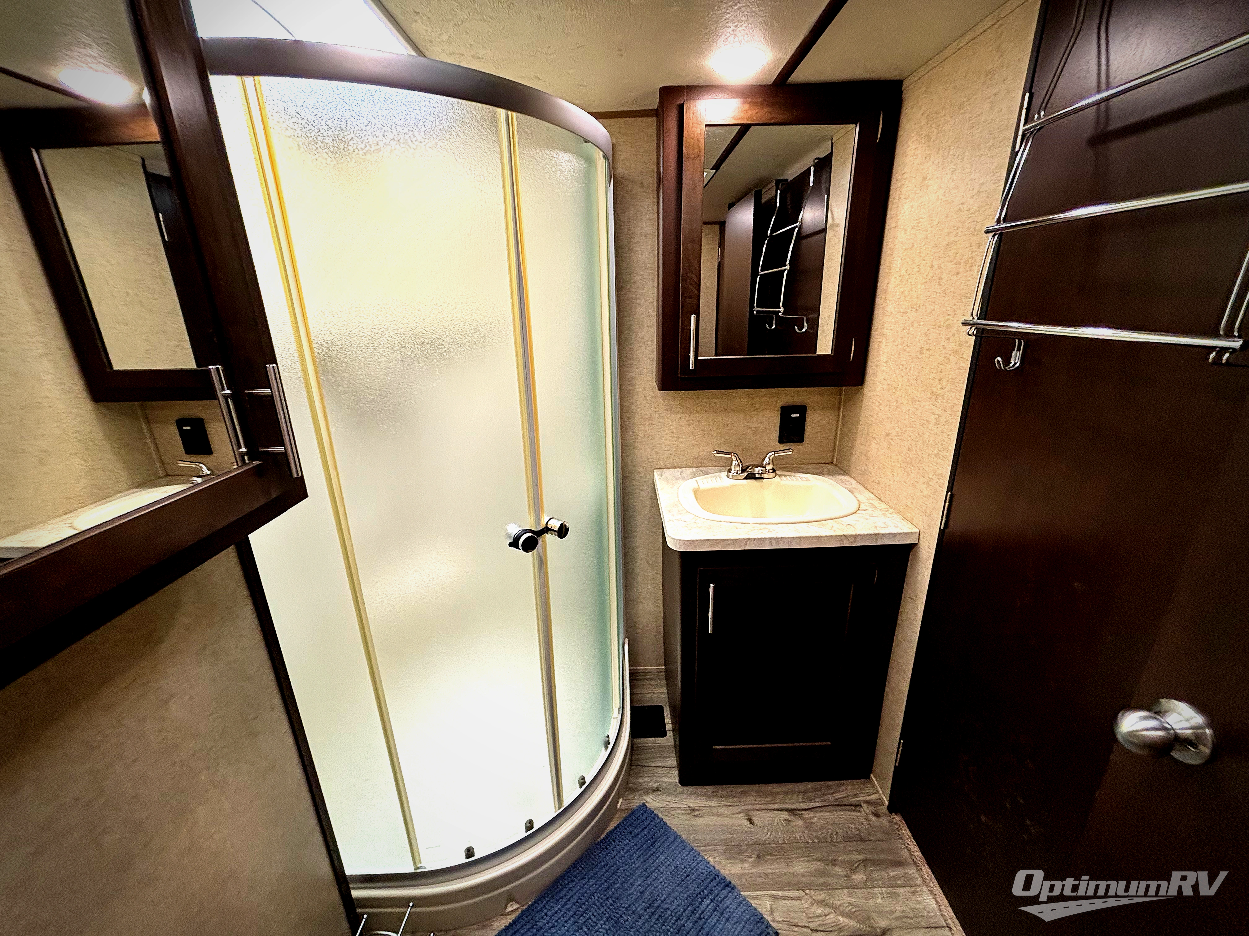 With any Cherokee Wolf Pack toy hauler fifth wheel it is easy to keep the outdoor fun going all weekend long! There is plenty of room for a few dirt bikes, a four wheeler, or an ATV - whatever your favorite riding toy is there is space! You can clean up before coming indoors with the convenient outside shower. Inside you will find conveniences such as tongue and groove plywood floors, real wood doors and drawers, wood blinds, and an 8 cu. ft. refrigerator. The Limited Package includes a few more upgraded items such as a kitchen appliance package, a hypoallergenic Evergreen mattress, USB charging stations, a drop in cooktop with glass cover and so much more!