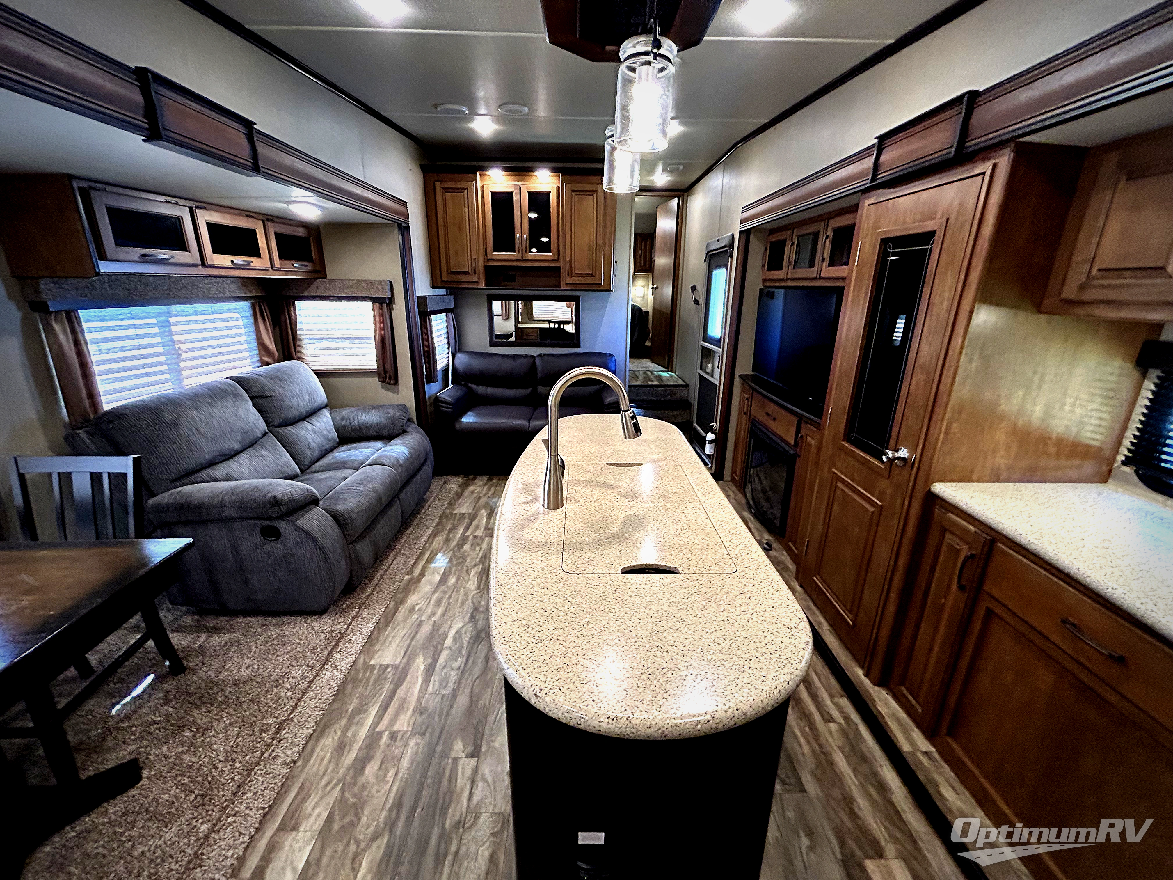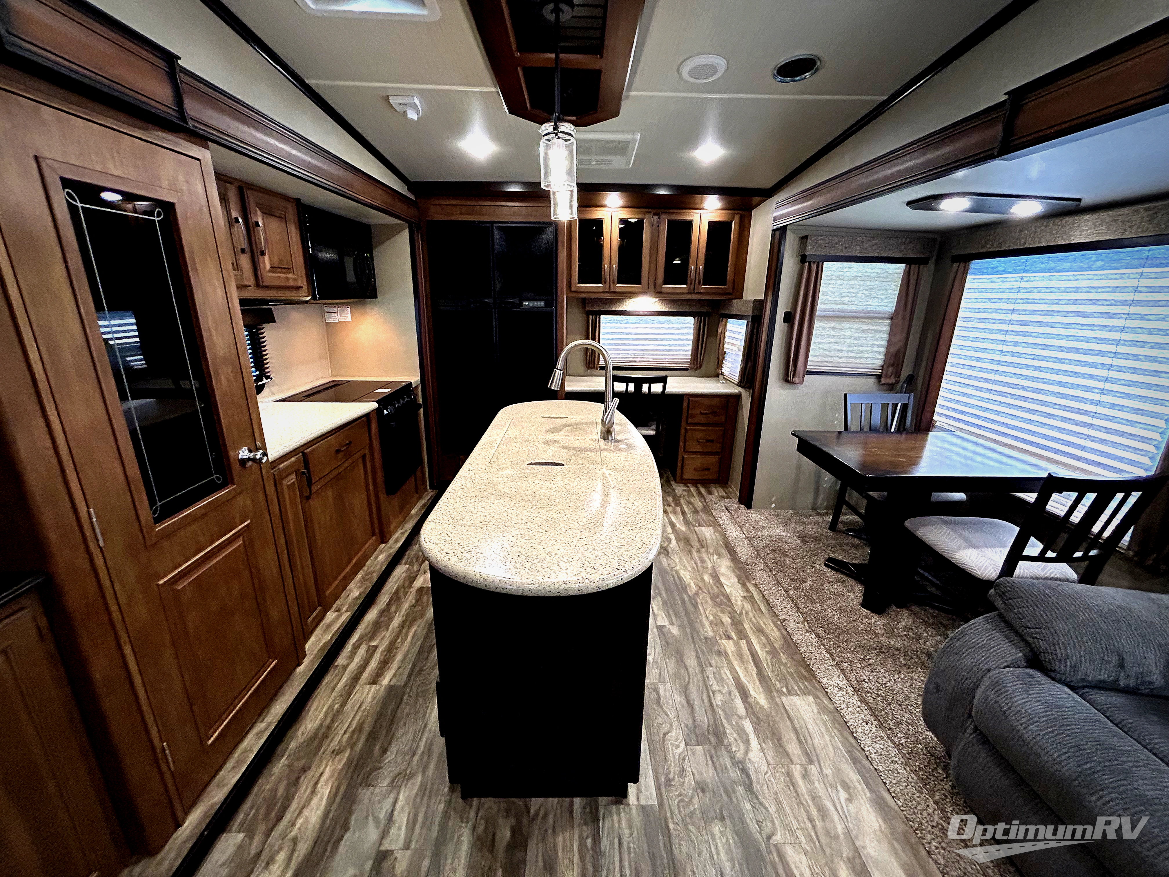 Once you step inside you will immediately be impressed with the spaciousness of the living room and kitchen area to your left. There are two opposing slide outs providing an open concept family area.
