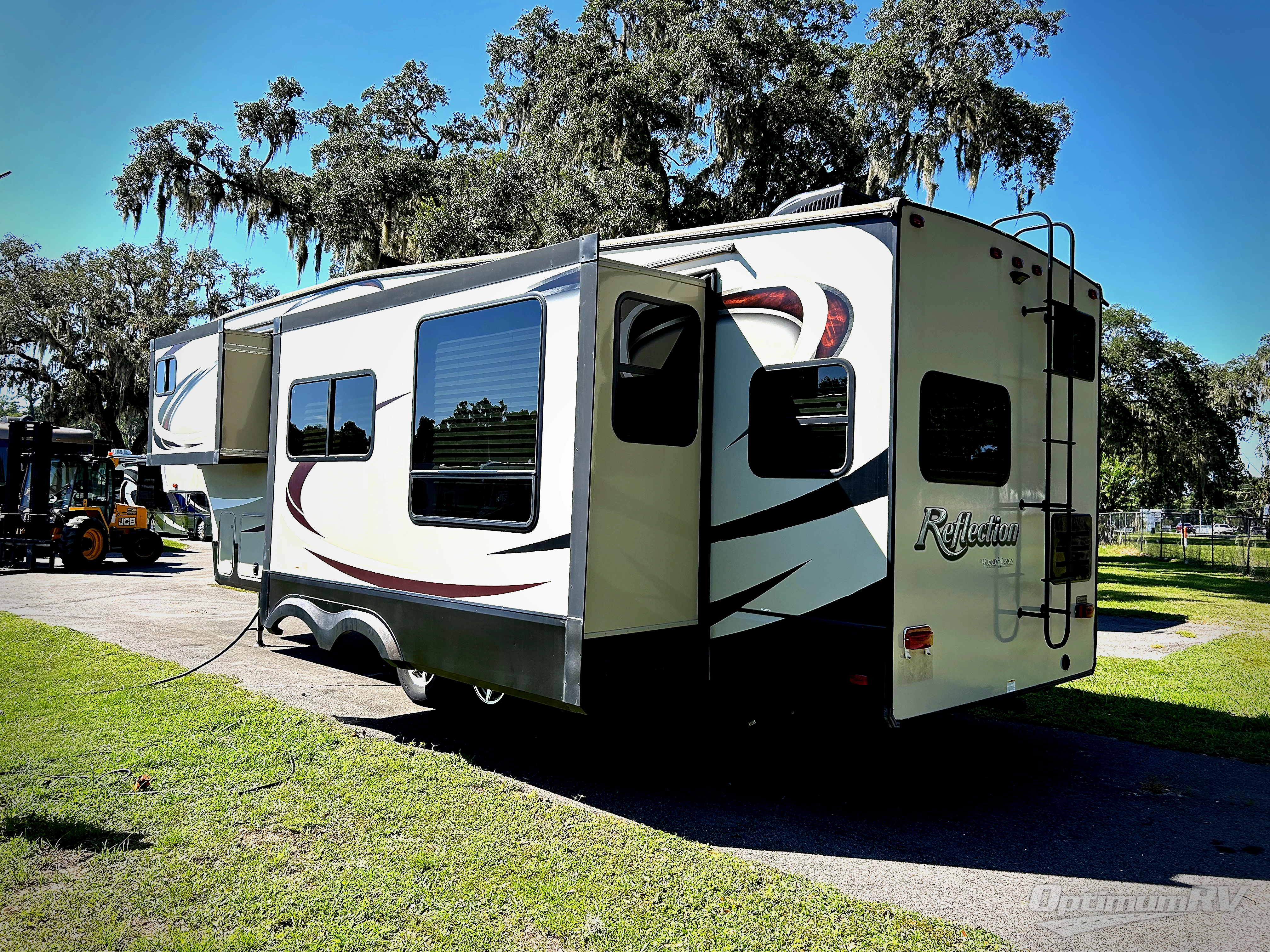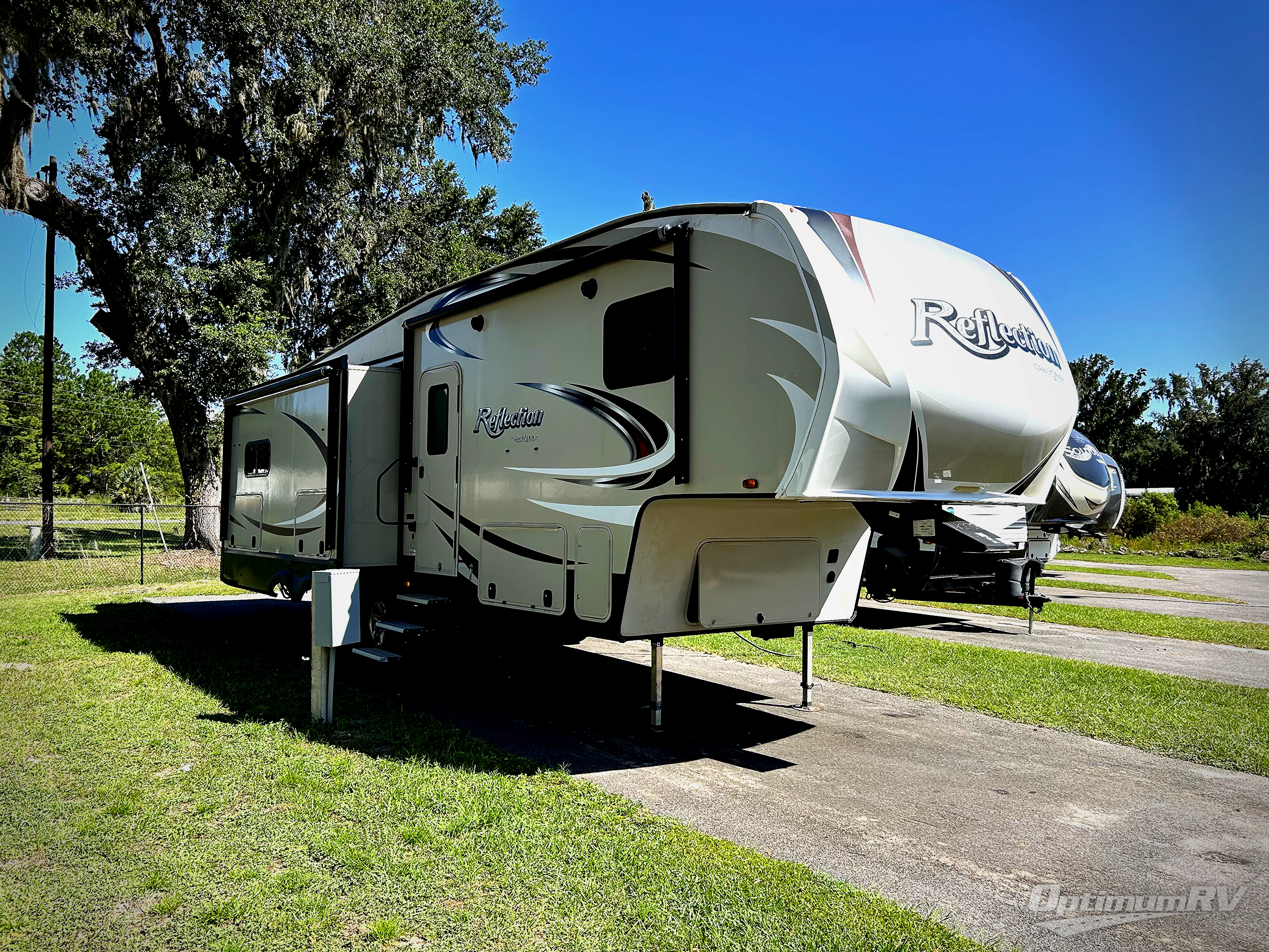 If you have been searching for a fifth wheel with triple slide outs, a rear desk, a kitchen island, and an outside kitchen and TV then take a look at this Grand Design Reflection mid-sized fifth wheel 307MKS.