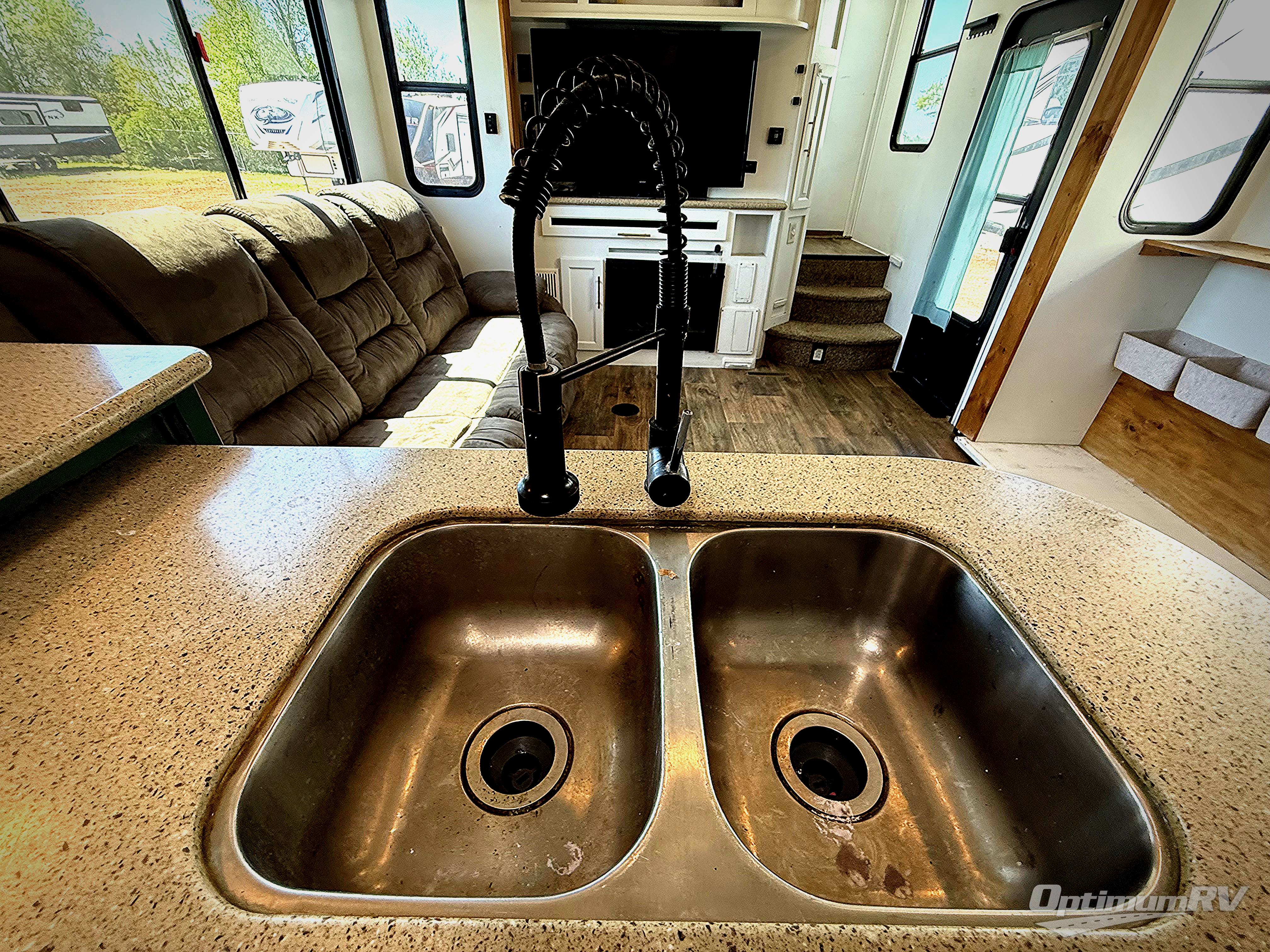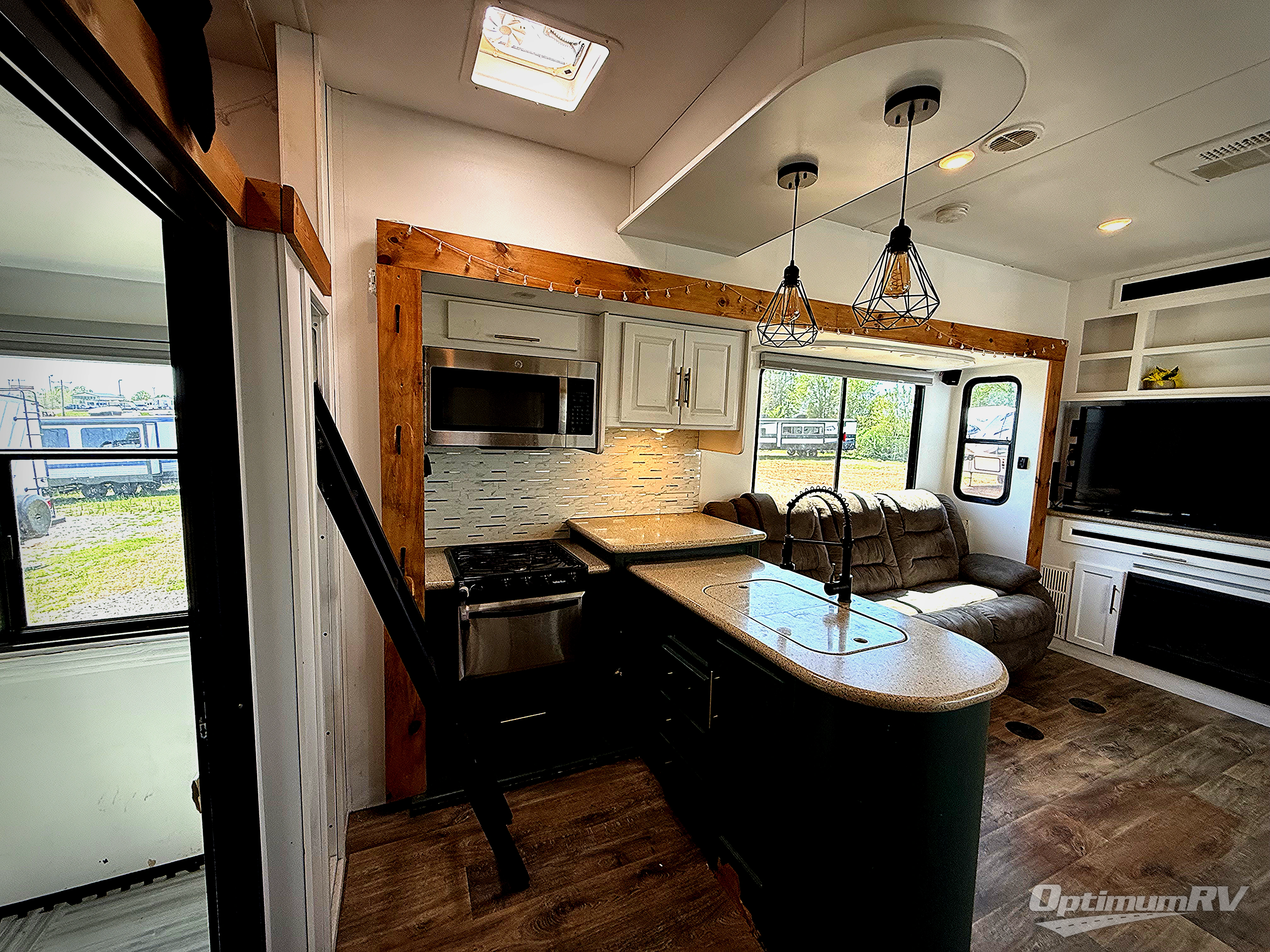 The Cyclone toy hauler fifth wheels by Heartland RV are not your ordinary toy hauler. These models have beautiful cabinets and plenty of comforts throughout such as high quality residential furniture, a 55” LCD HDTV flat screen TV, cable TV and satellite hook-ups, plus a separate DVD/CD/MP3 Bluetooth stereo for the garage and exterior. Along the exterior there are stunning graphics and you will enjoy the view out of the large bedroom picture windows. The two side awnings with LED lights provide plenty of shade during the day, and at night you can grab a snack, your camp chair, and enjoy visiting outdoors just a bit longer. The ultra-light ramp door allows you to easily load your off road toys. In the garage you will also find an electric rear screen, decorative chair rail, plus built-in overhead cabinets with an entertainment center and more! You may even want to add the S5 Package which includes a 2nd fuel cell, 40" garage TV, solid surface counter top in the bedroom, central vacuum, 32" bedroom TV, and upgraded furniture with USB ports and built-in tables.