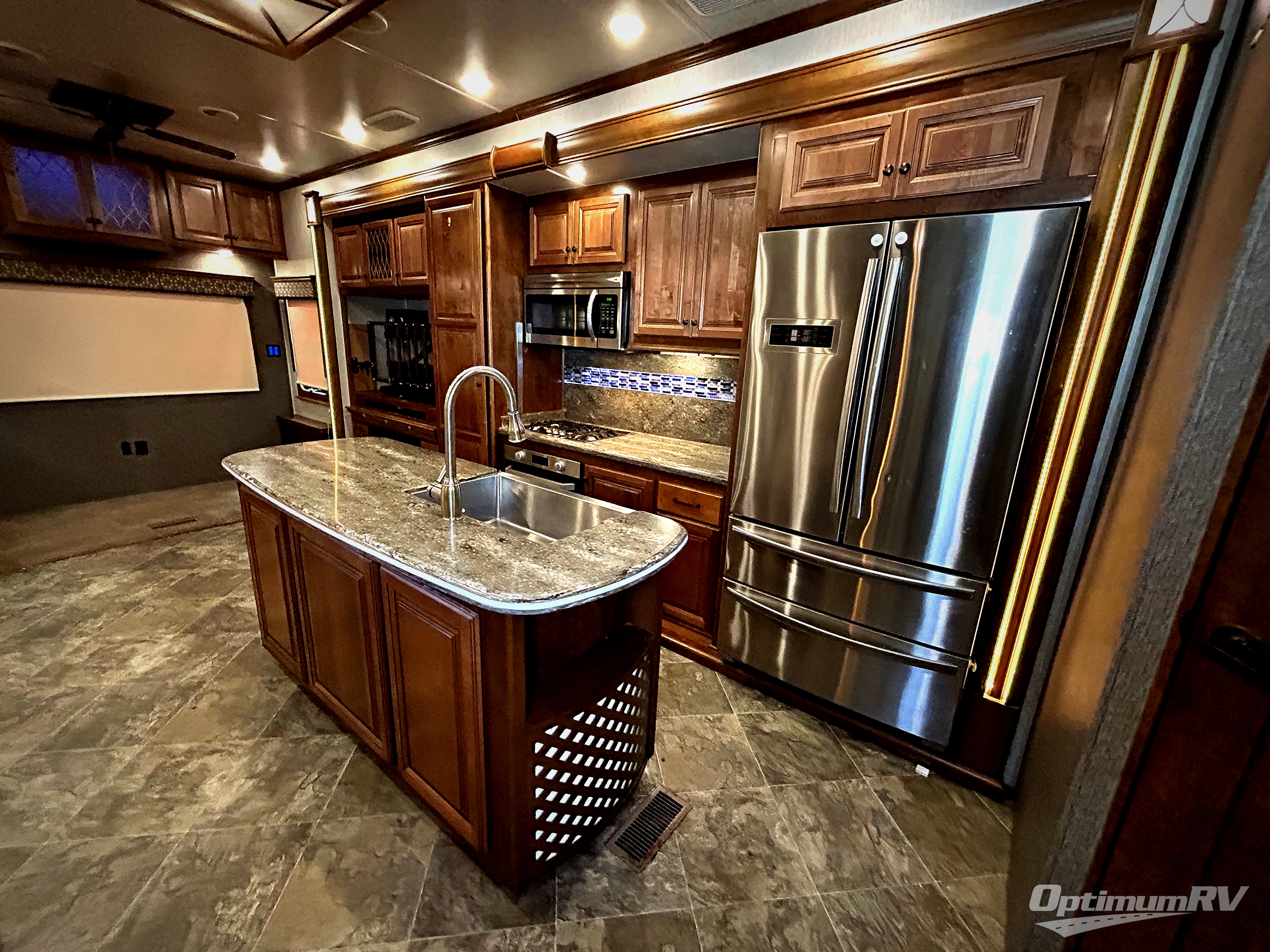 Come experience true luxury when you camp with the Landmark 365 by Heartland RV. These fifth wheels boast of comfort and convenience throughout. The sofa tables offer USB ports, so you can easily charge your electronic devices. In the living room, choose the optional Away Package and enjoy power theater seating with heat and massage - now that's luxury! The bedrooms offer adjustable reading lights, a power tilt bed, plus a TV. A few key features that you would find at home include a backlit tile backsplash, a residential refrigerator, and a farmhouse stainless single basin kitchen sink with a cutting board. There are also beautiful Maple hardwood cabinets throughout plus so much more!