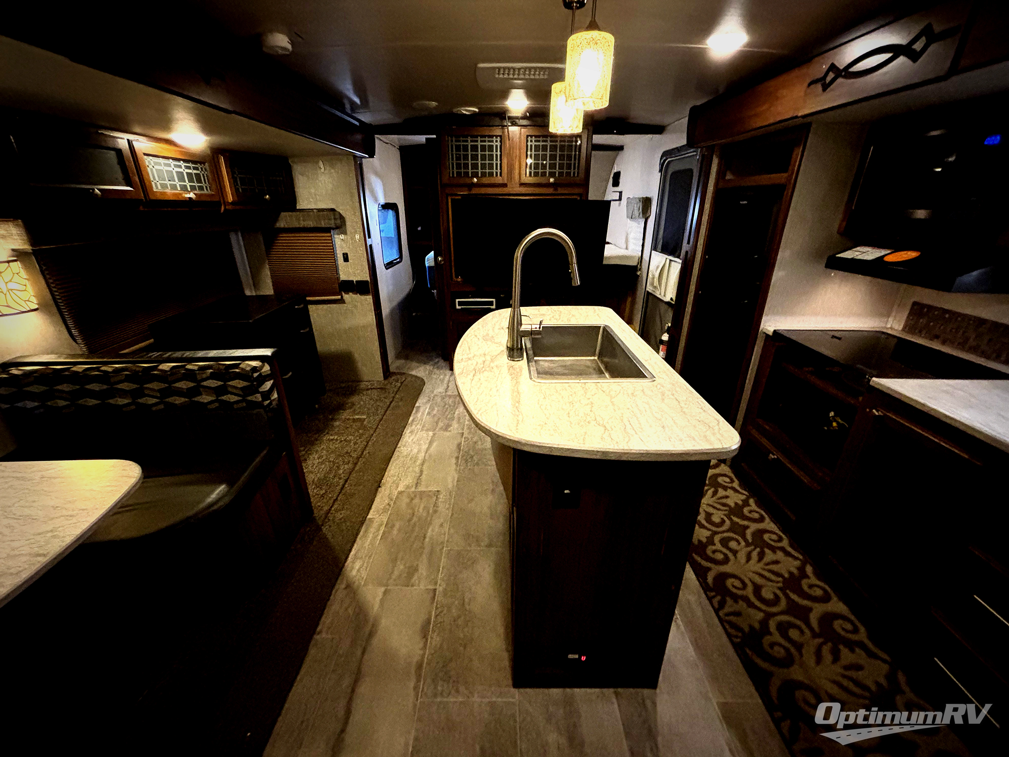 You won't ever be disappointed when you take your family vacations in this Mallard Ultra Lite travel trailer. The interior is kept open and spacious with two opposing slides in the main living area, and the kitchen island gives you extra countertop space as you prepare dinner and clean up afterwards. For added privacy as you get ready each morning, the large bathroom has been positioned in the back of the trailer, and the private bedroom, with its queen-size bed, has been conveniently secluded in the front.