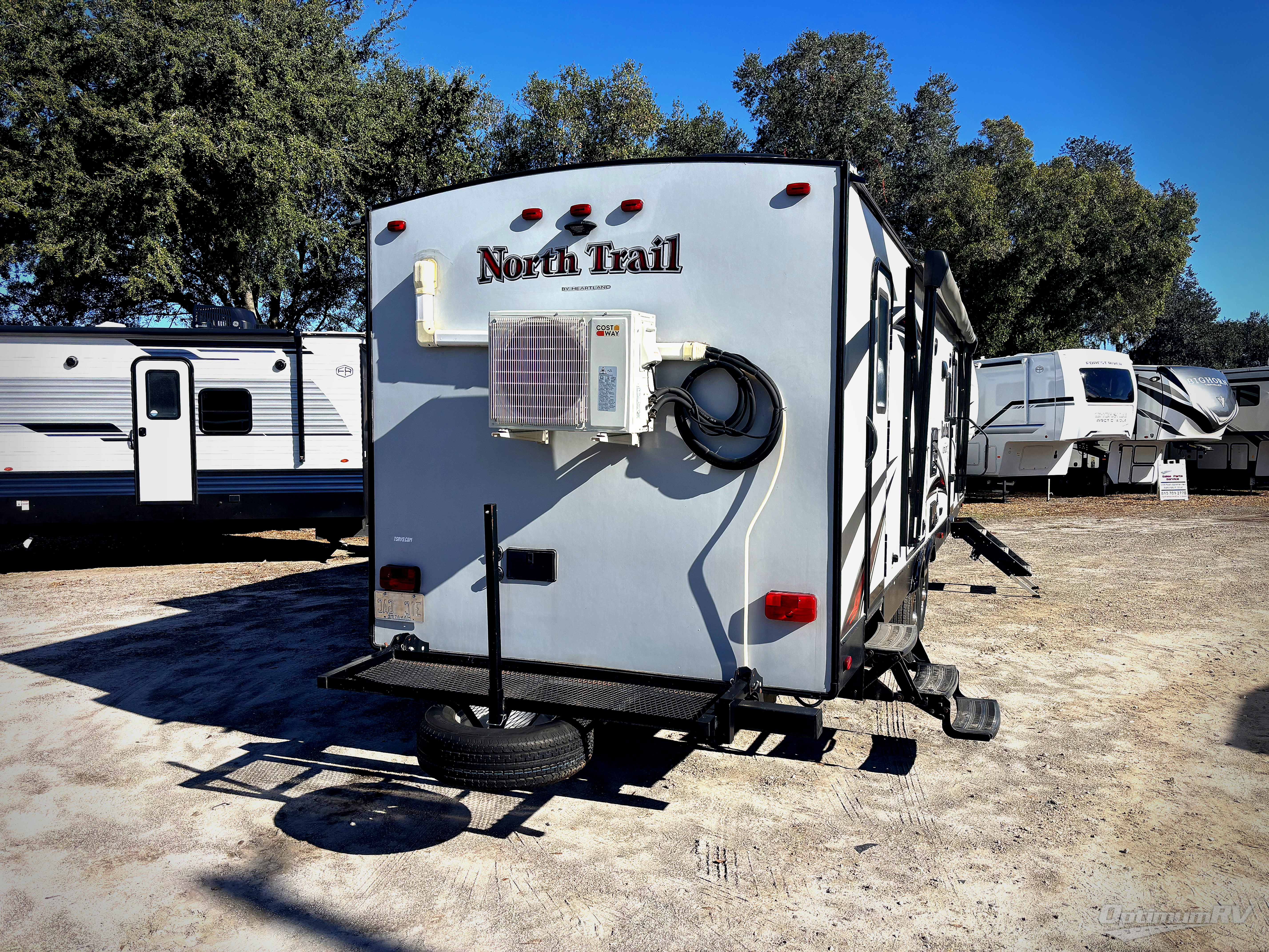 For a lightweight travel trailer that is not lacking on features you will want a North Trail by Heartland. Along the exterior there is a heated and enclosed underbelly which allows you to camp in all types of weather! You will also find a one piece rubber roof plus nitro filled radial tires. Inside enjoy the extra space with the curvilinear roof, LED lights, and the Beauflor flooring. The NT Kitchen Package includes upgraded brushed nickel hardware, a large kitchen window, a pull out spray faucet and more. The Lightweight Strength Package has block foam brick insulation, HD leaf spring suspension, and a Weather Guard thermal protection, plus more!