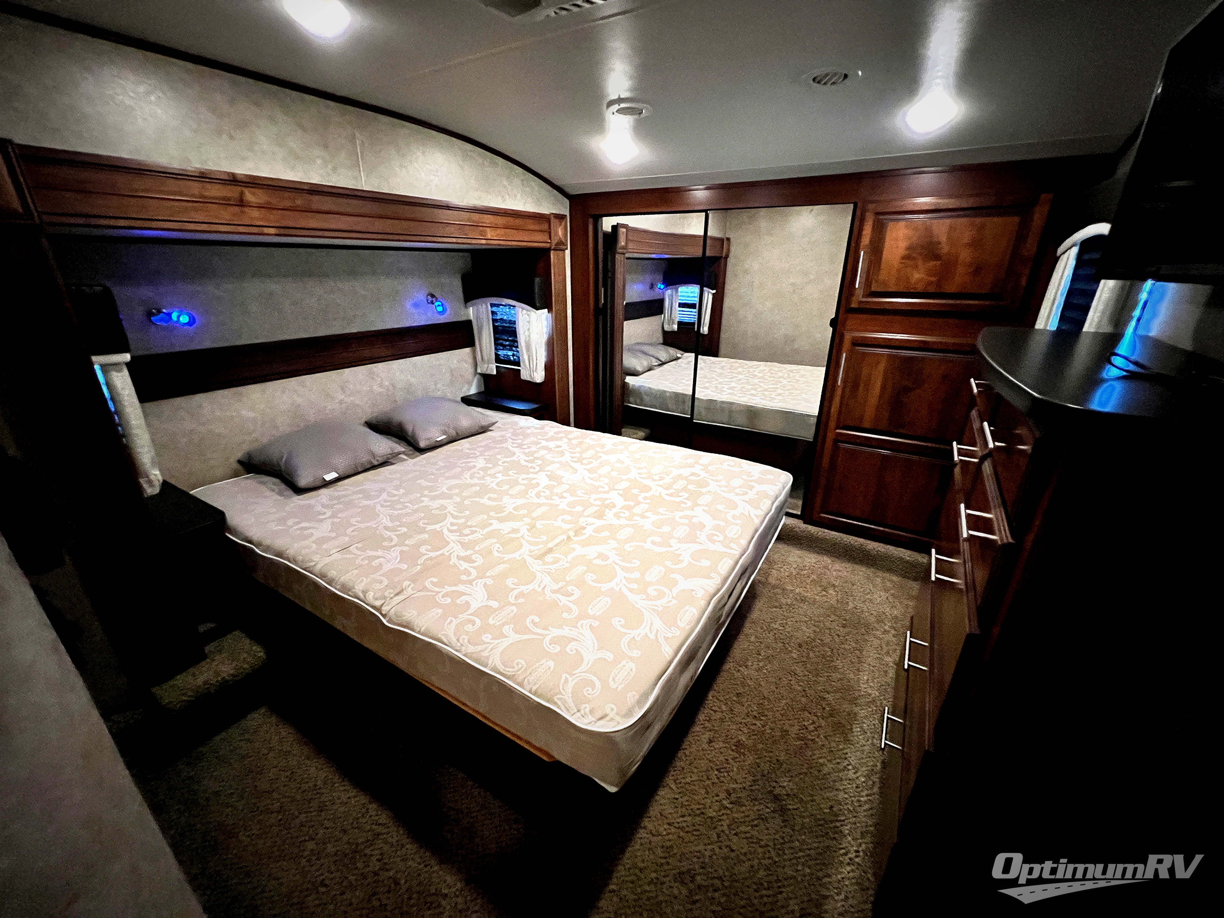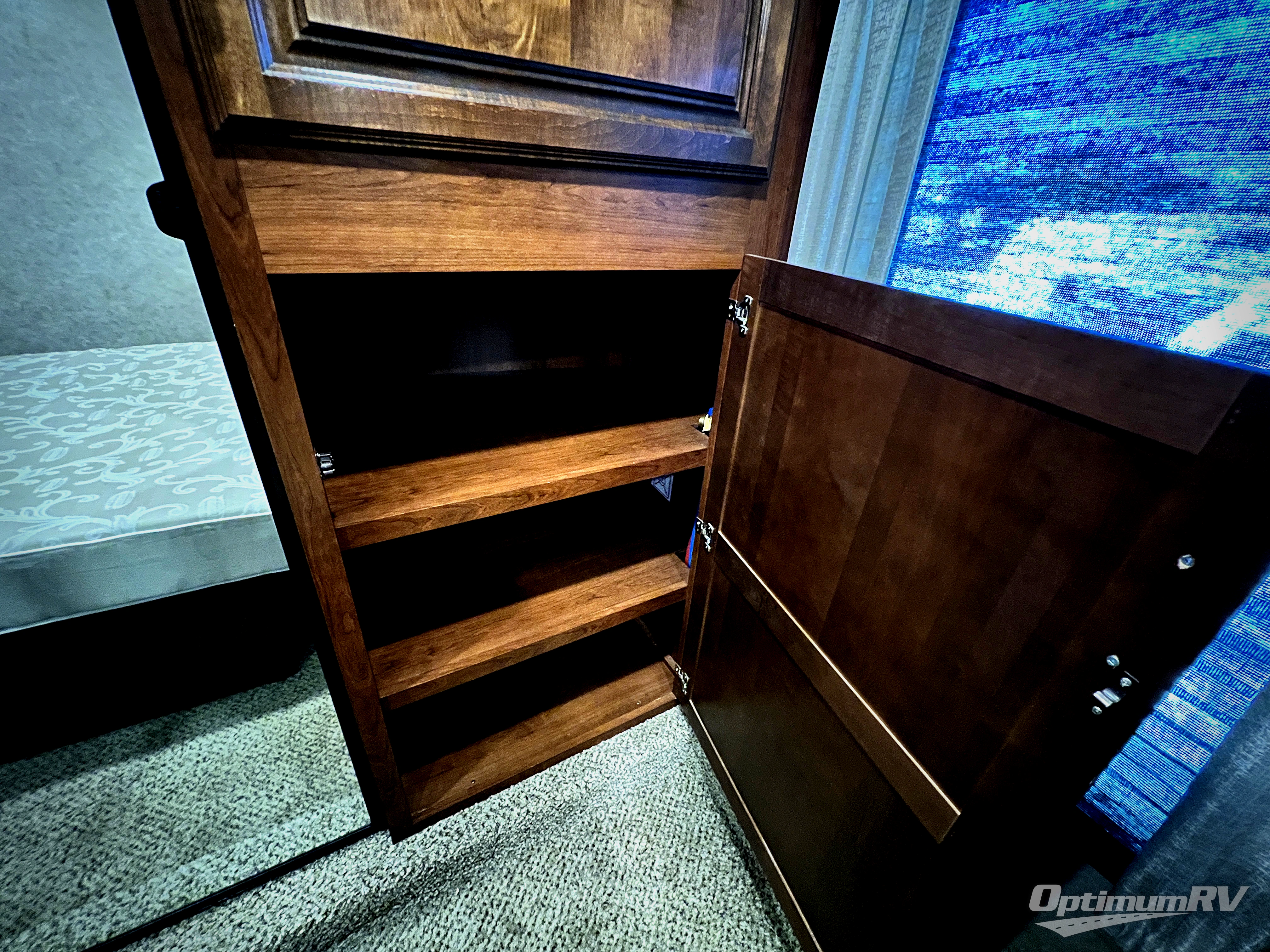 If you only like to travel in luxury, take a step inside this Eagle fifth wheel to find what you have been looking for. Model 321RSTS offers the owner a master bedroom with plenty of storage and a closet prepped for a washer/dryer. The dual slide outs in the main living and kitchen area provide enough room to walk around the much desired kitchen island to get to the residential-style walk-in pantry, or near the LED fireplace to relax on the tri-fold sofa. You will even find a ceiling fan for those hotter months, and recliners. You will find more features and options around every corner, take a look today!