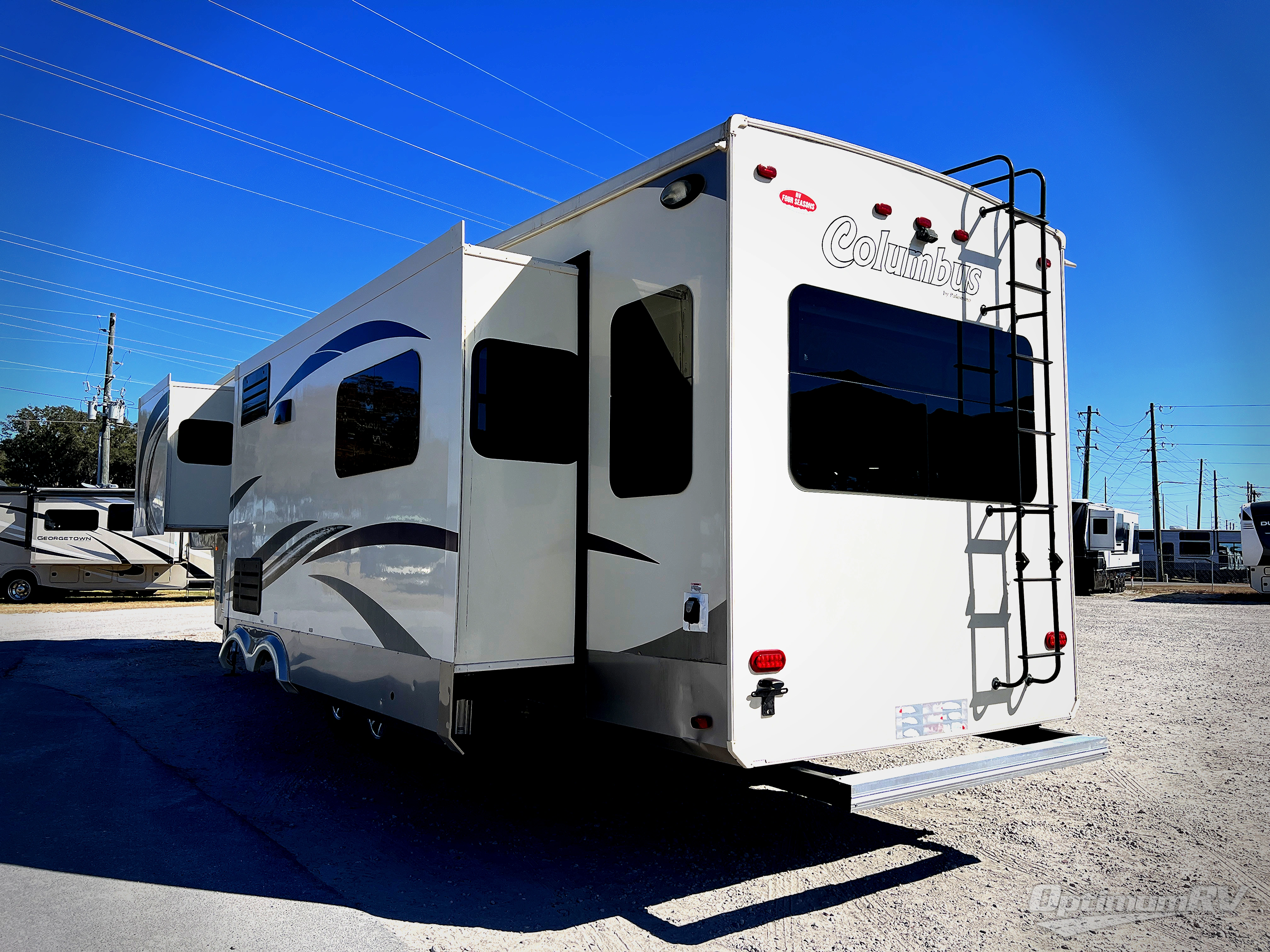 With any Columbus fifth wheel by Palomino you can enjoy the finer things while exploring the countryside. Comfortable towing is provided by the E-Z Flex Dexter axles and E-Z Lube axles with Nev-R-Adjust brakes. You will appreciate the cell phone/iPad charging station to keep the electronics charged the whole trip, the residential convection oven microwave for baking and reheating leftovers, and the many upgraded features you will find in each model. Come see why owning a Columbus fifth wheel is the correct choice for you!