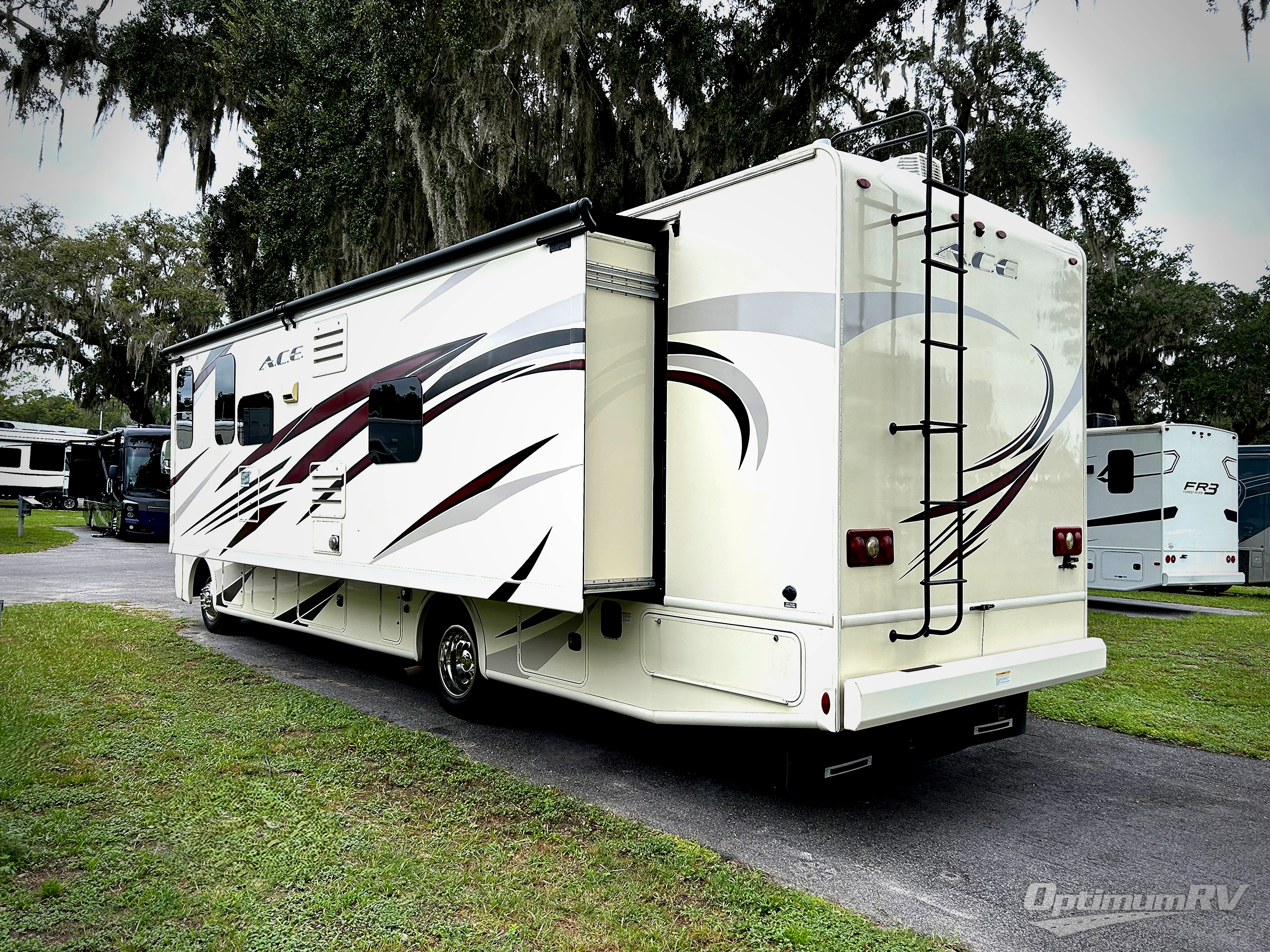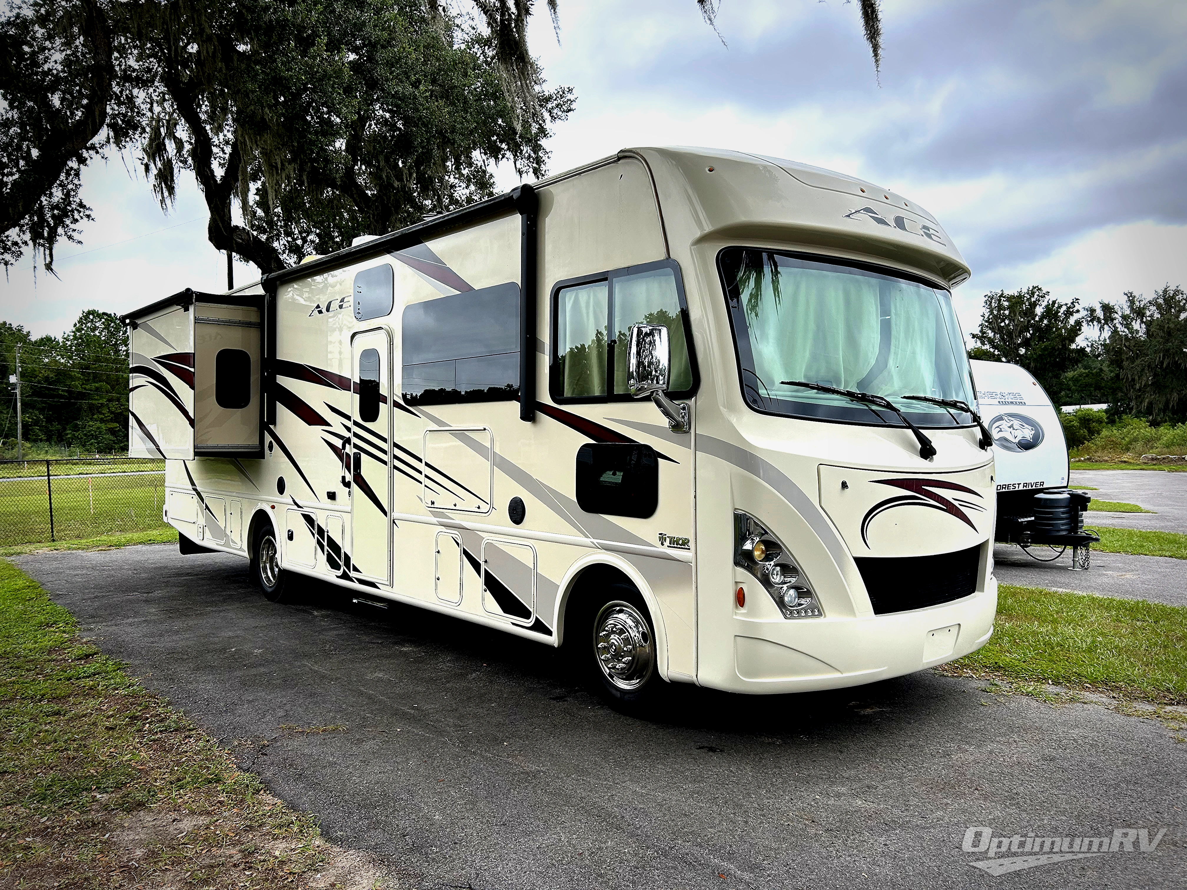 Are you ready to travel in style and comfort? Then come take a peek at this ACE 32.1 class A motor home by Thor Motor Coach. From the two full bathrooms to the full wall slide out, there are plenty of standard features to go around.