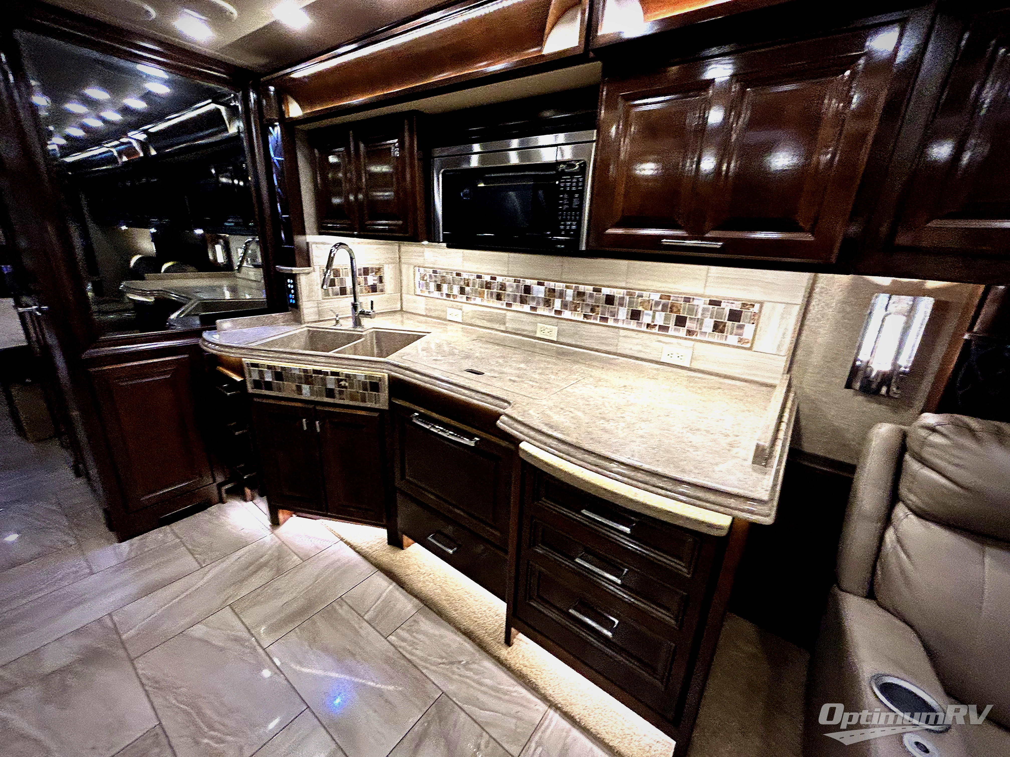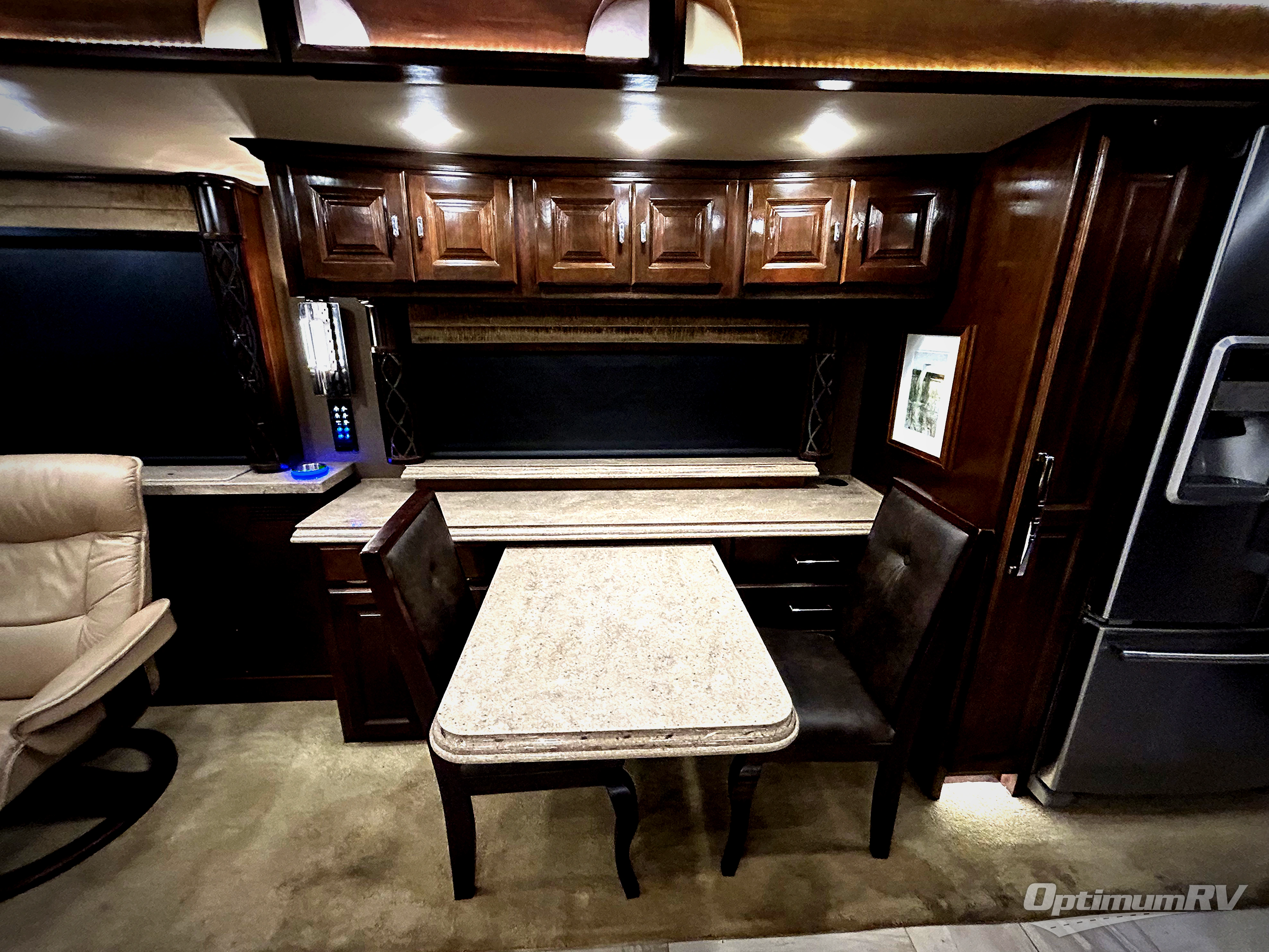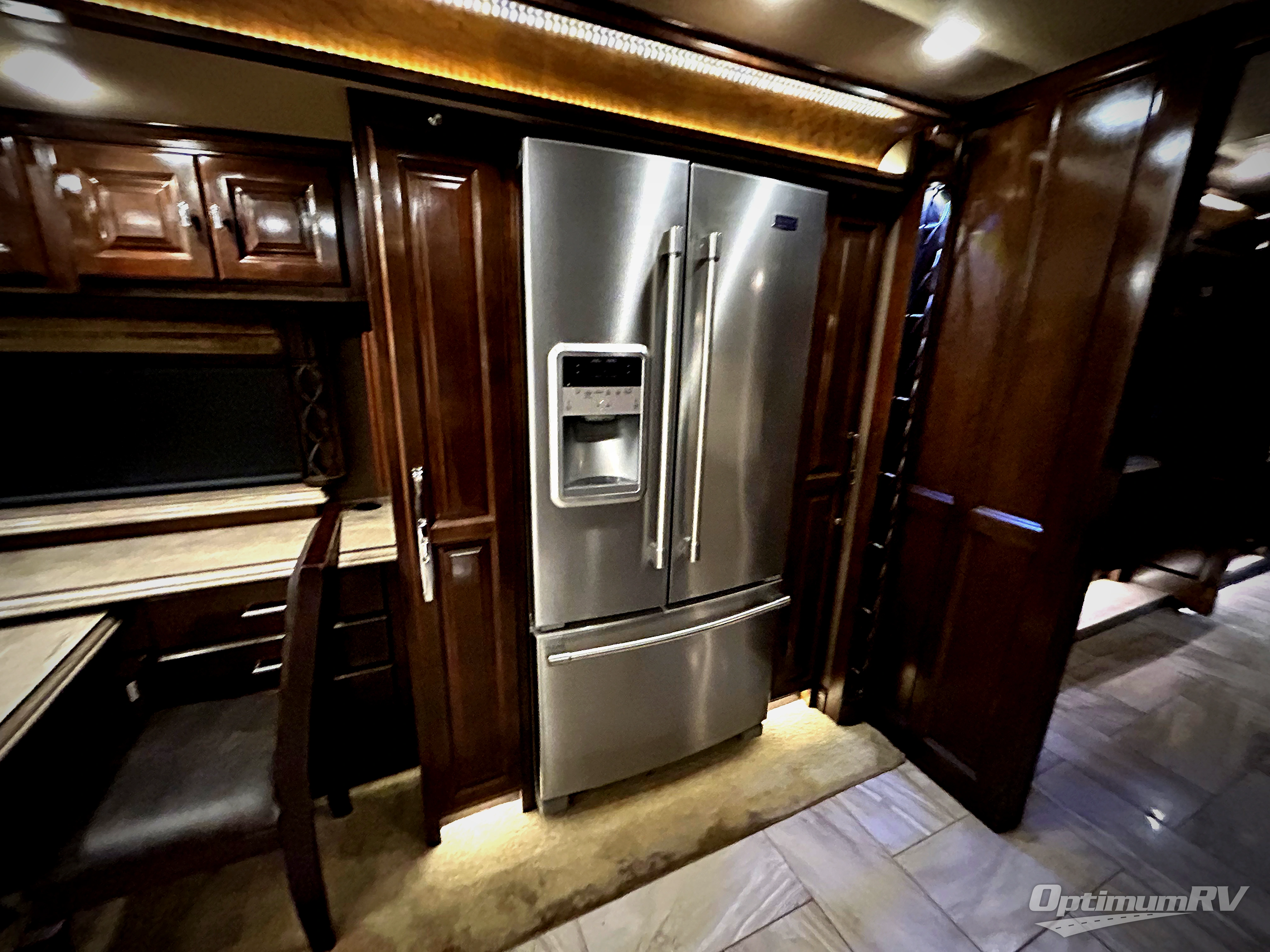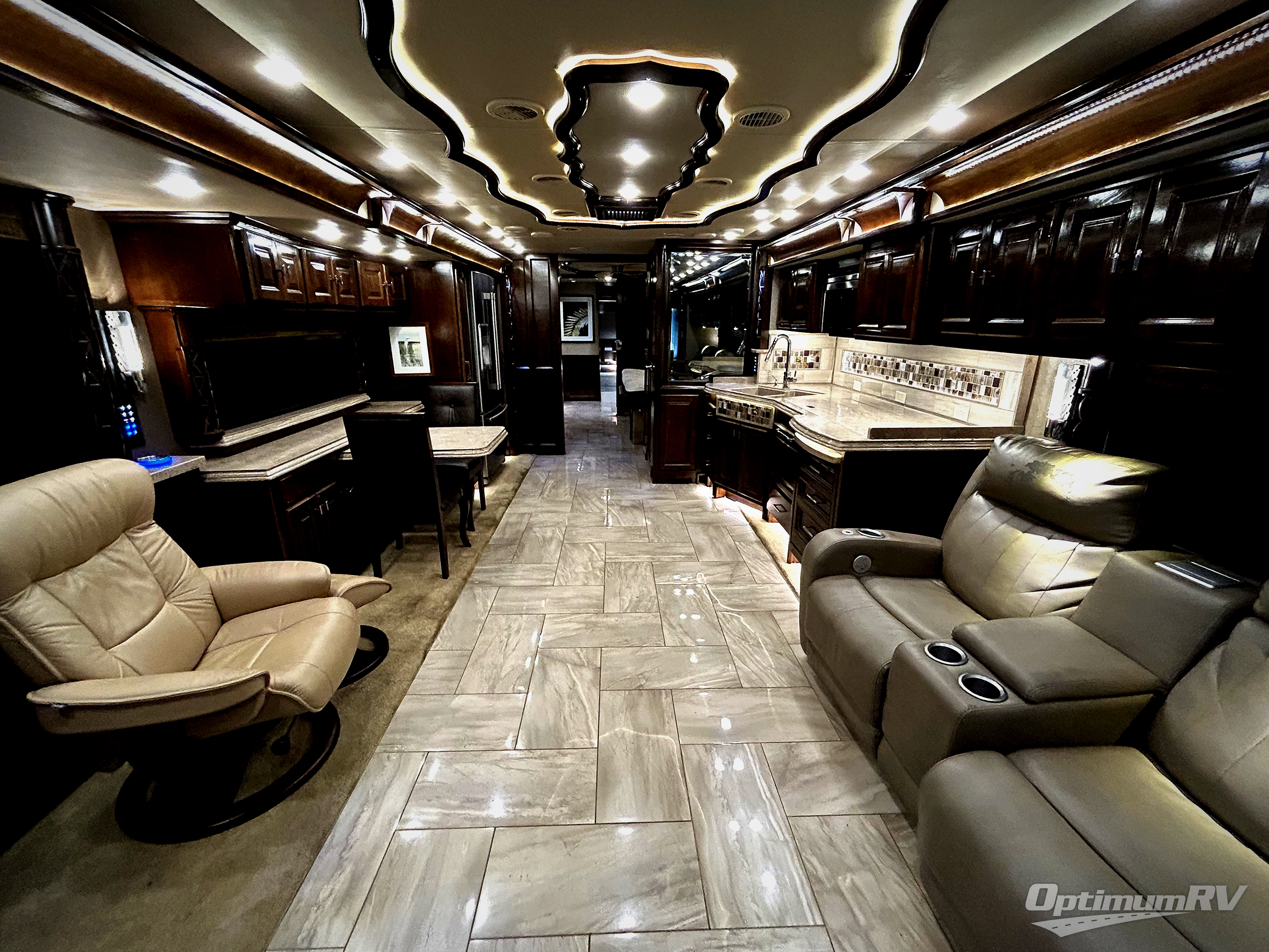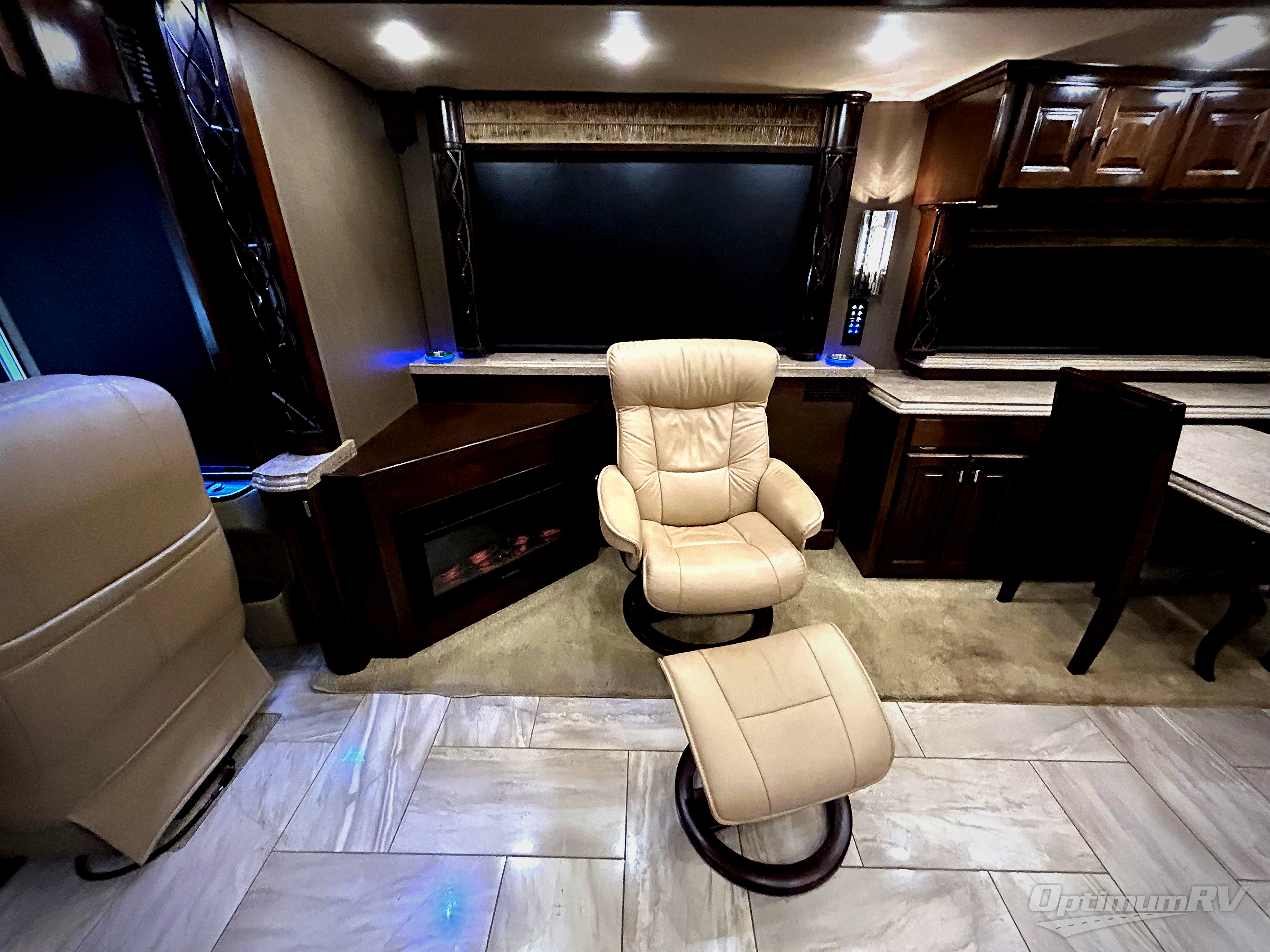 This Tiffin Allegro Bus class A diesel coach model 45 OP allows you to enjoy your life away from home with the comforts of home. Starting with the 3 interior TVs, the Ultra Leather air coil sofa, and the Ultra Leather DE Sofa with TV cabinet and fireplace you can relax, watch the big game, or visit with family and friends just like at home. However, if you need to get some work done the dinette is also a work station with two chairs. The stainless steel residential refrigerator allows you enough space to take plenty of cold items with you to make your favorite meals on the polished solid surface countertops. You also have a large full bath with dualsinks including a closet for your wardrobe needs, and a half bath. There is even a wall safe in the bedroom as an added security measure, an exterior TV, plus more! This model is also available with a Freightliner chassis.